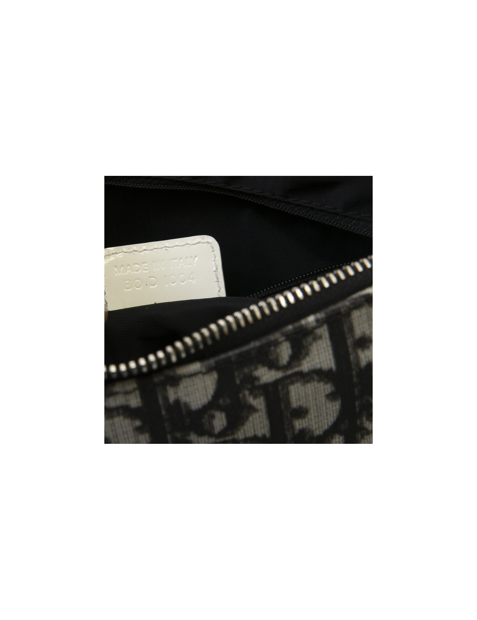 Cette besace vintage Christian Dior est en toile monogrammé bleu. L'accastillage est argenté. Ce sac a une fermeture zippée. Il se porte en crossover. L'intérieur est en toile noire avec une poche zippée. Il est en bon état. Usure des bordures en cuir verni blanc ainsi que la bandoulière qui est effilochée.