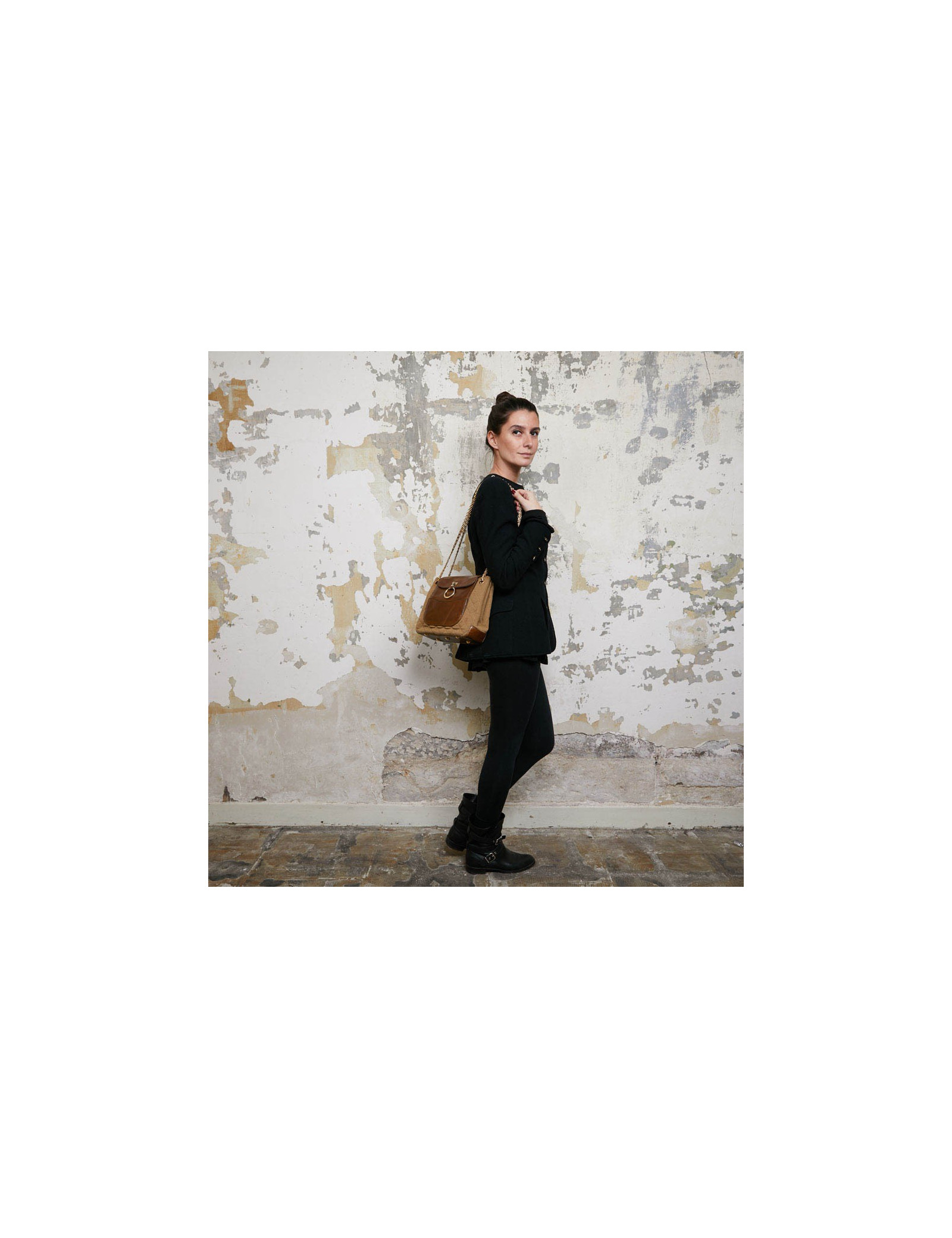 La chaîne peut se porter épaule ou croisée. Au plus court elle mesure 80 cm et au plus long 140 cm.