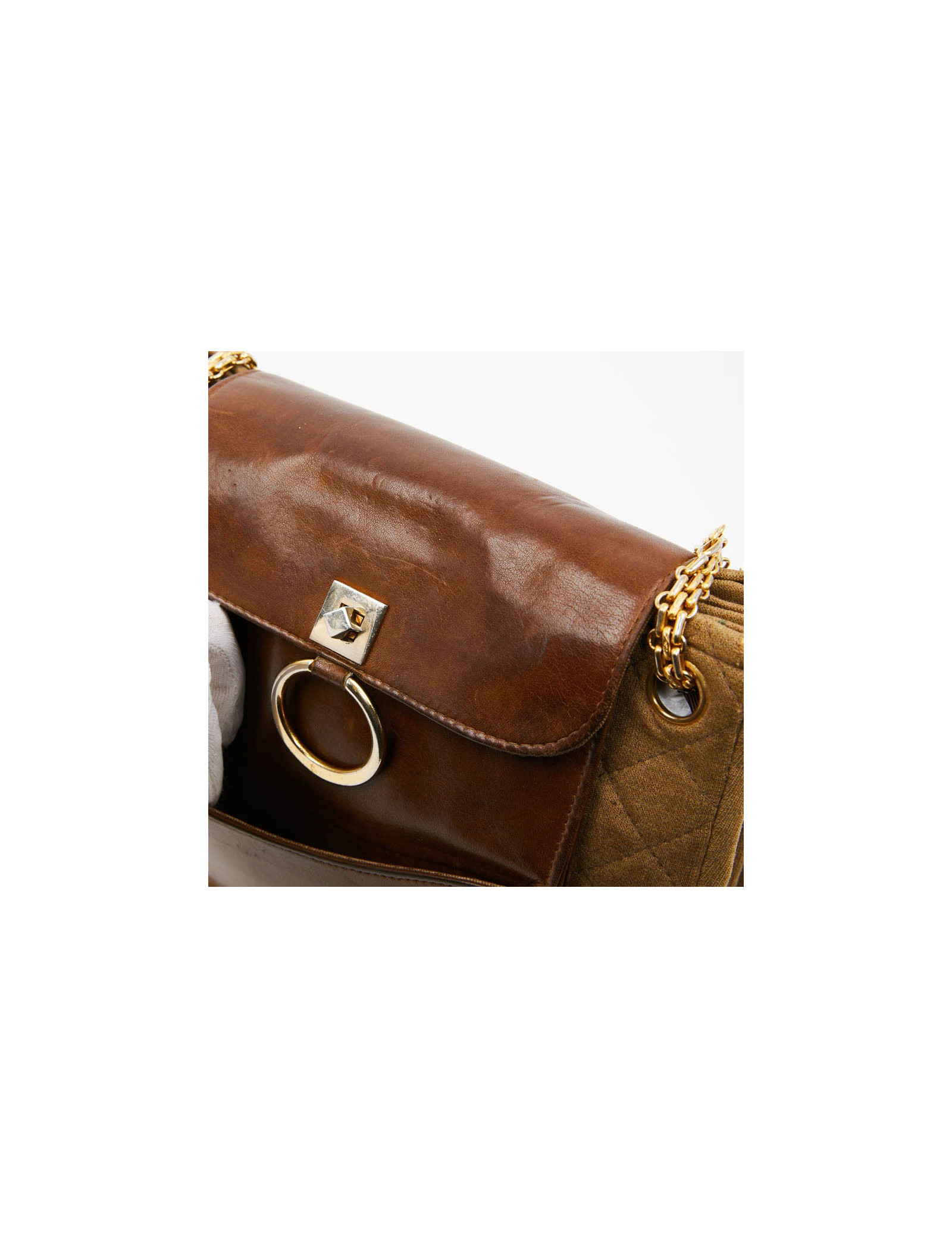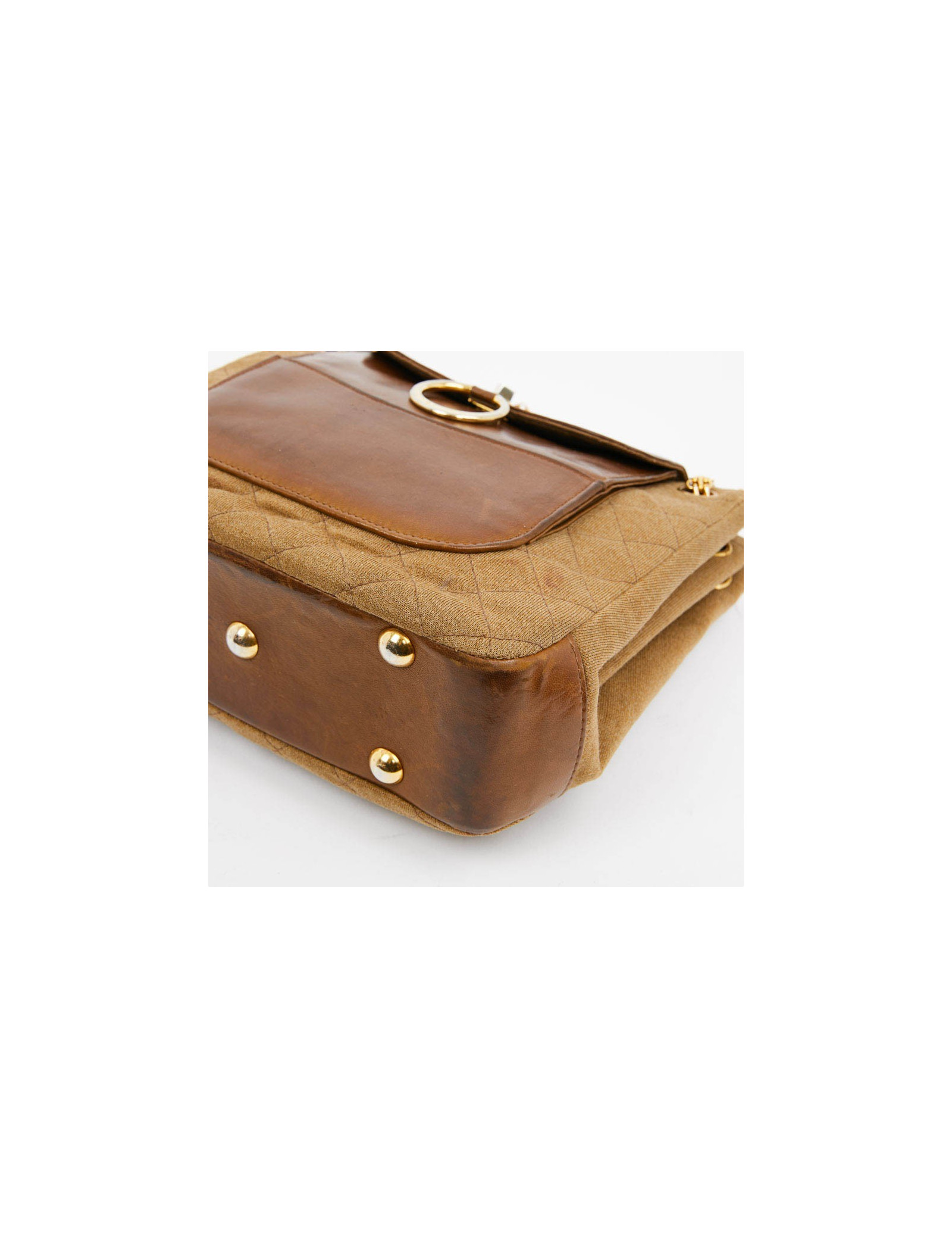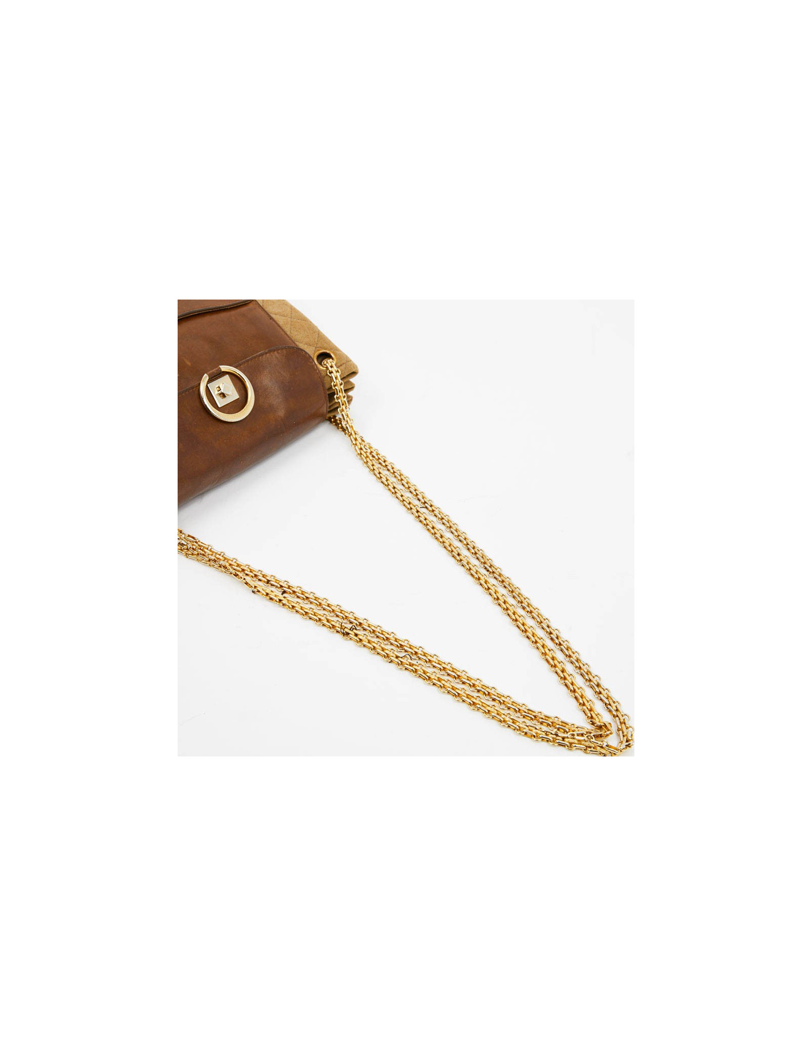 Sac CHANEL Vintage marron, bijouterie couleur or - détails