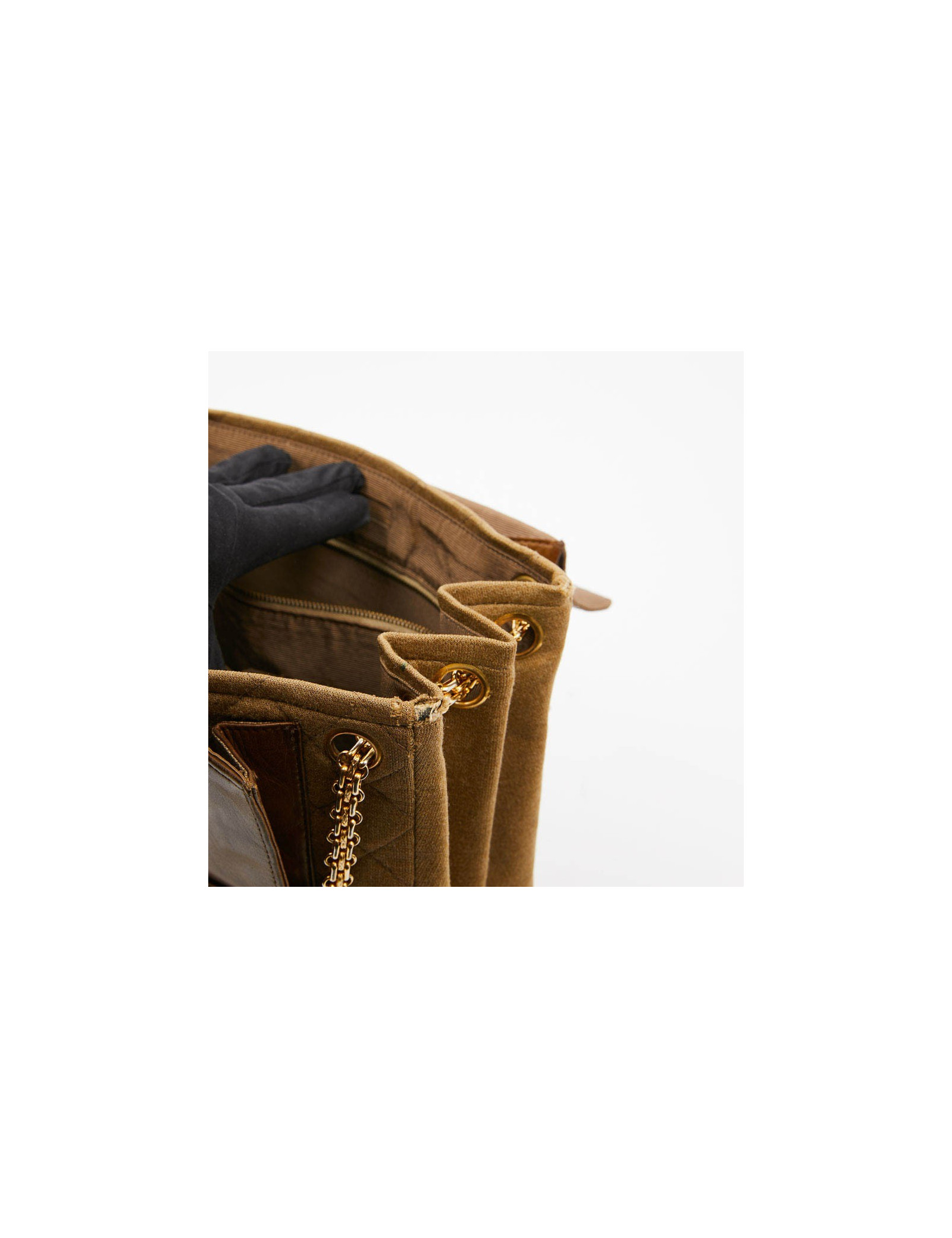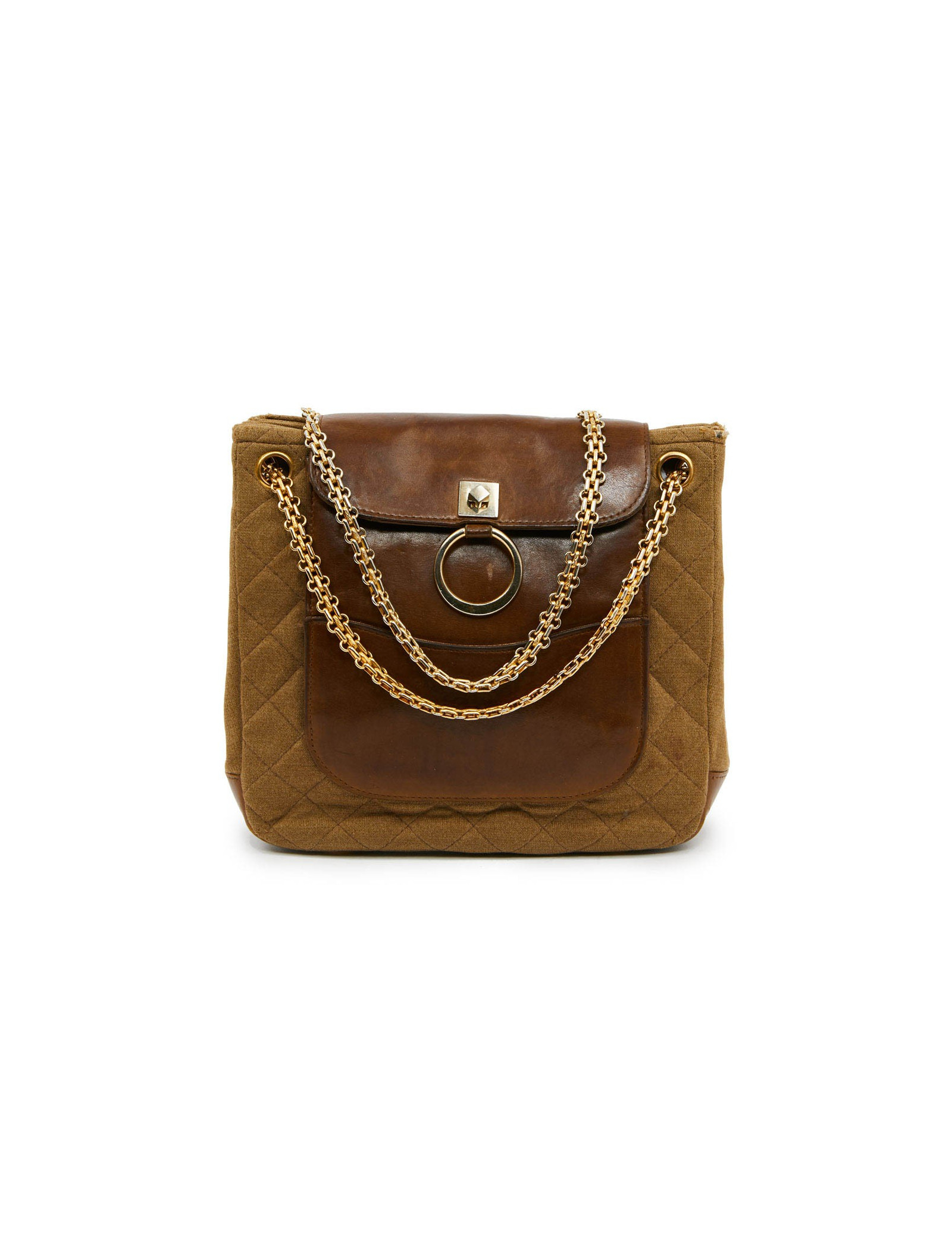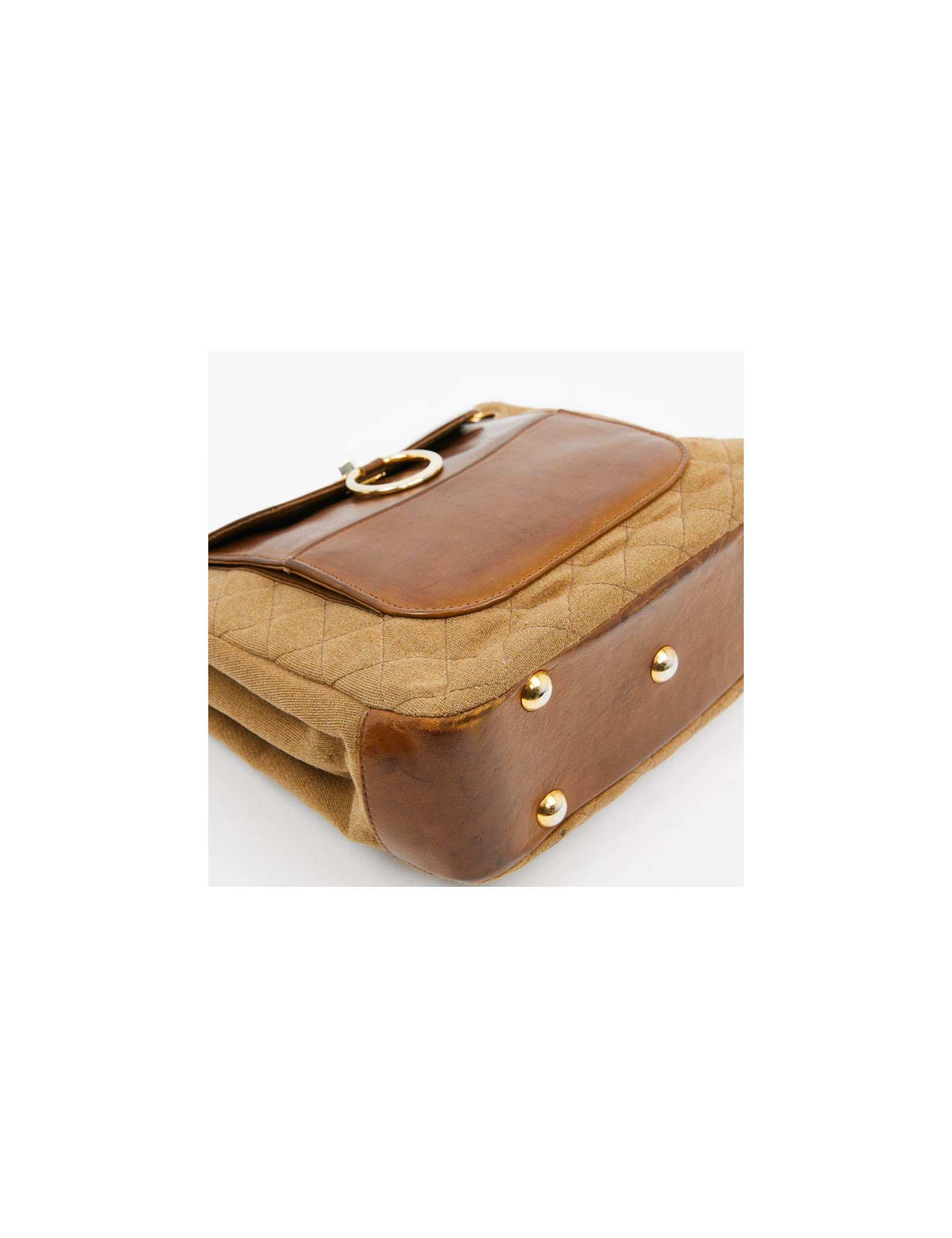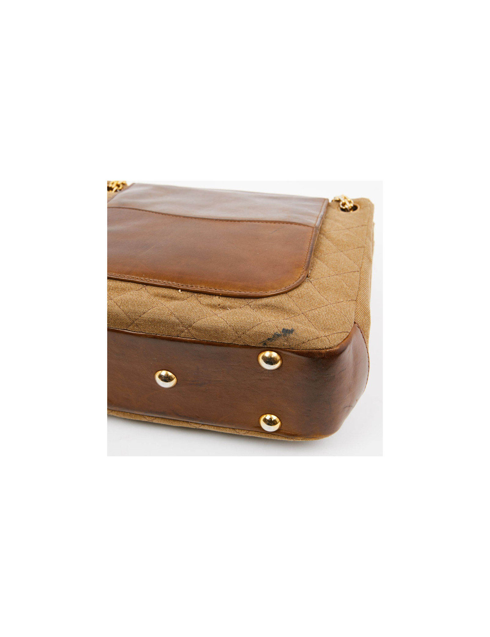 Sac CHANEL Vintage marron, bijouterie couleur or - détails