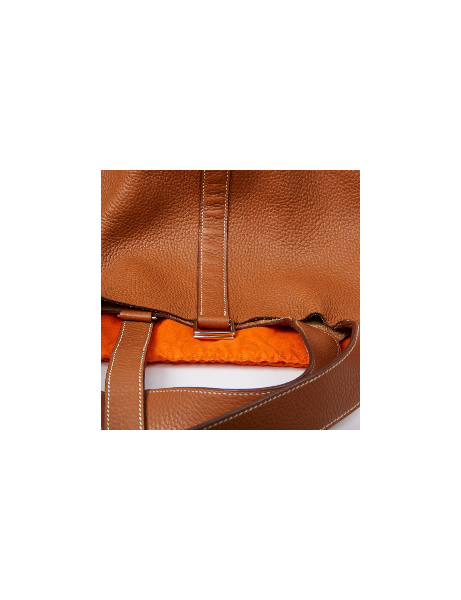 Discret mais très pratique ce grand sac XL en cuir souple Hermes est de fabrication française. Il date de 2006. Les dimensions sont : longueur 32 cm x hauteur 32 cm x profondeur 24 cm. Les poignées mesurent 48 cm. Il est en très bon état d'usage.