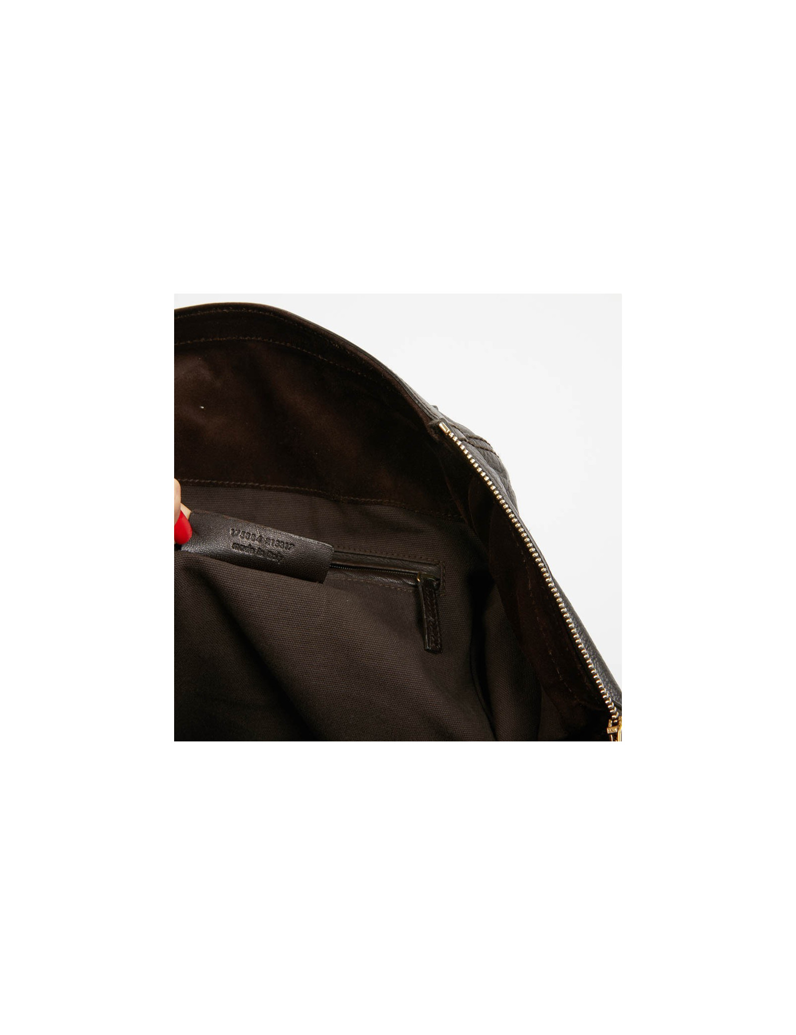 L'intérieur est en tissu marron et une bordure en velours avec une grande poche zippée.