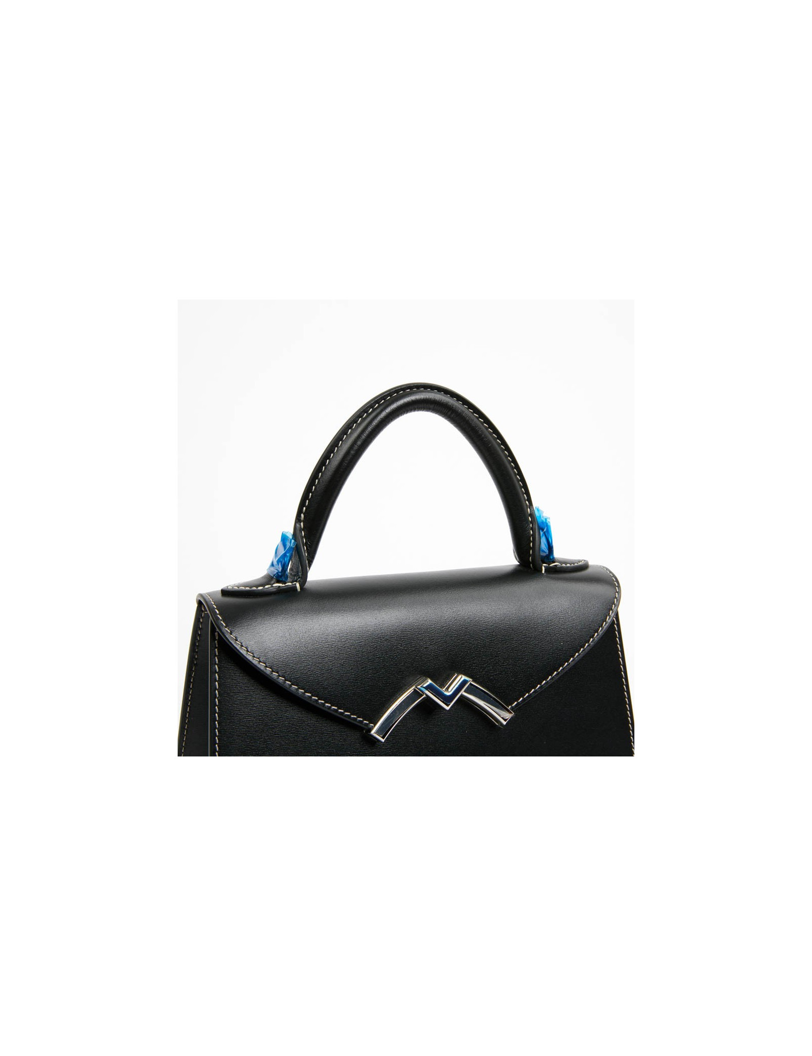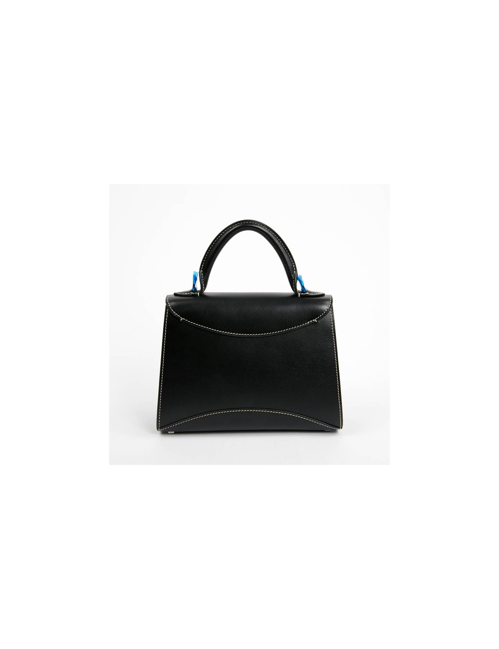 Sac Gabrielle MOYNAT cuir lisse noir surpiqué blanc