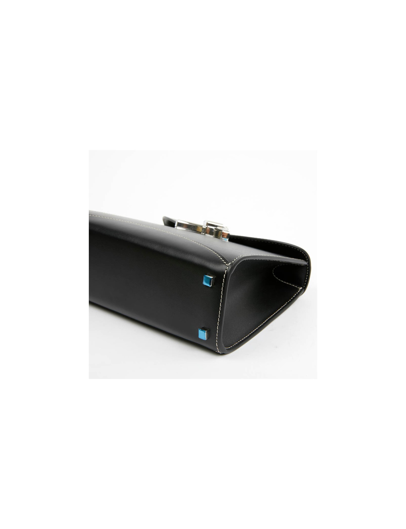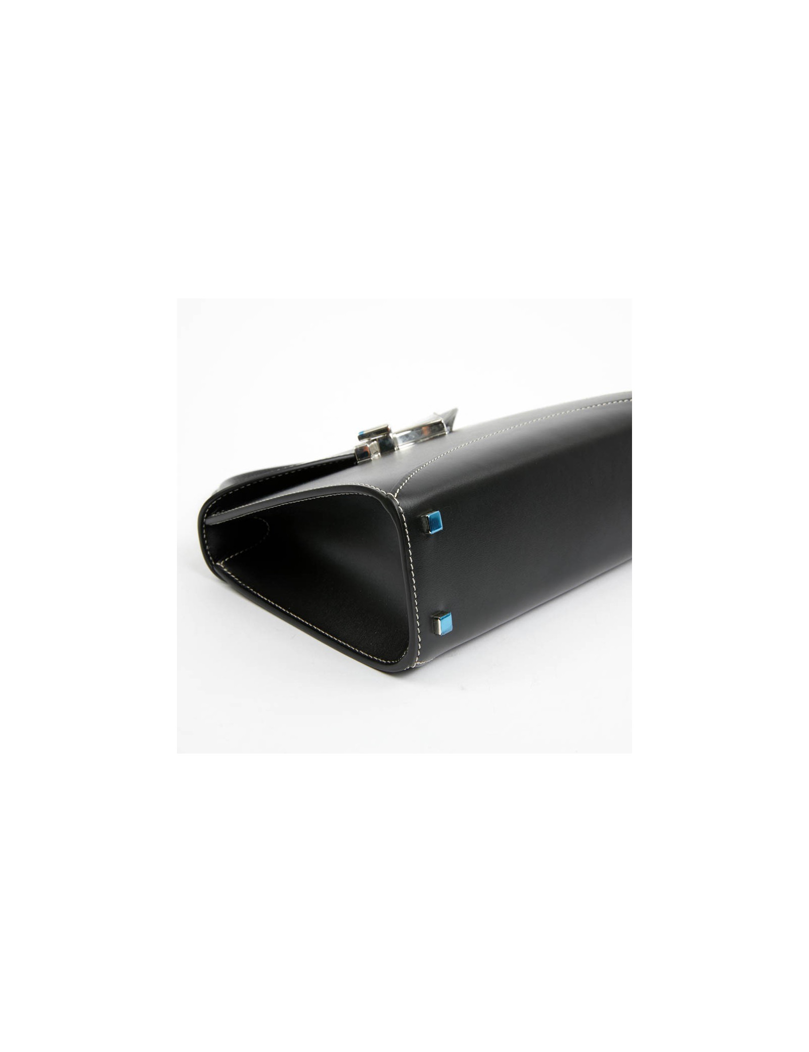 Il est de fabrication française. Les dimensions du sac sont les suivantes : longueur 20 cm x hauteur 15 cm x profondeur 8 cm. La poignée mesure 22 cm et celle de la bandoulière amovible : 108 cm. Le sac est en parfaite condition, il n'a jamais été porté. Prix Public 3800 E.