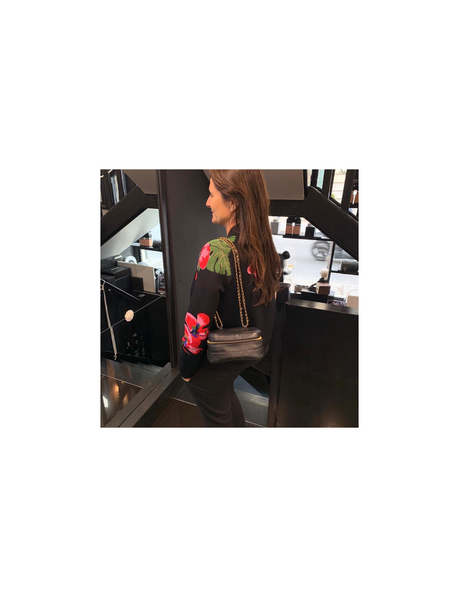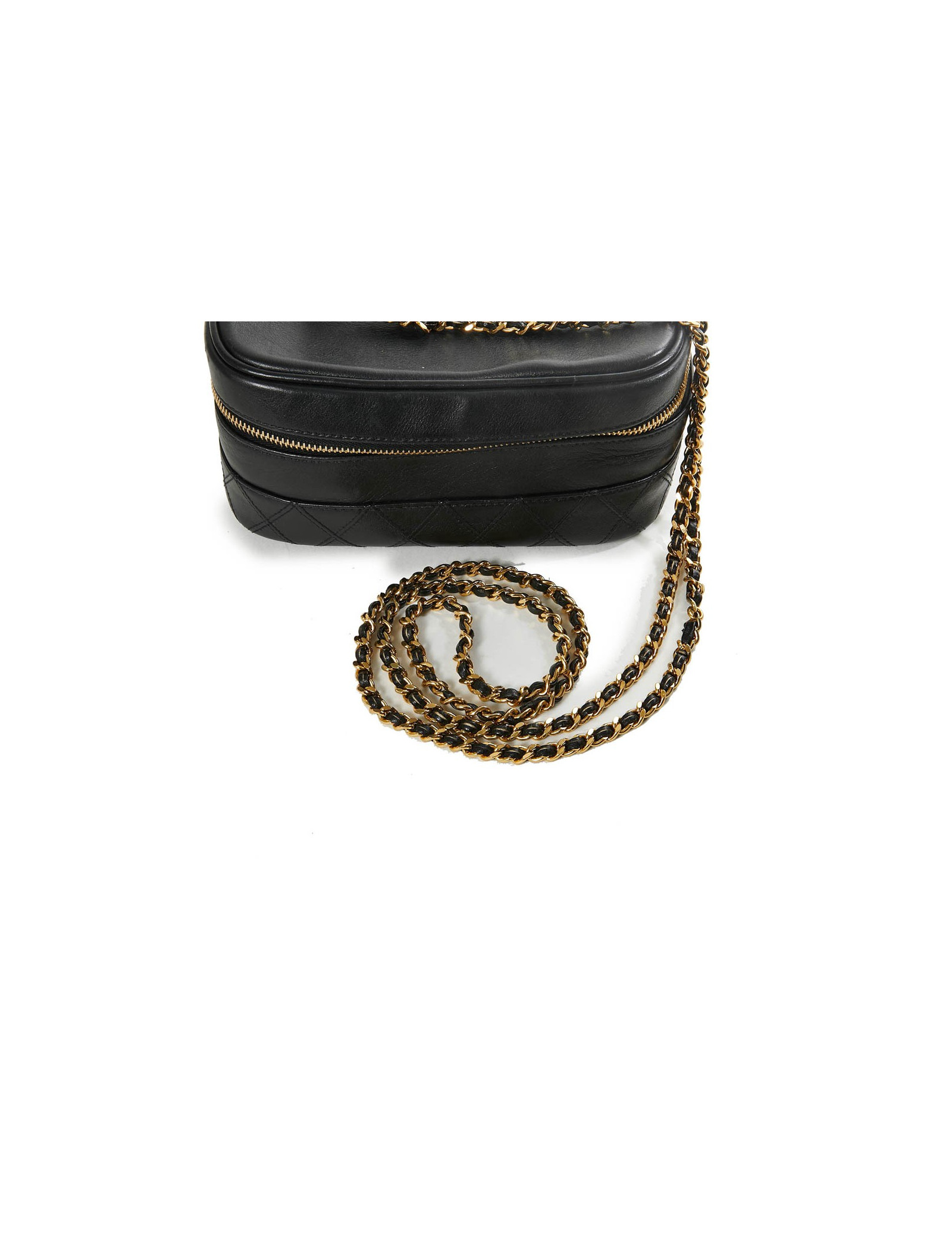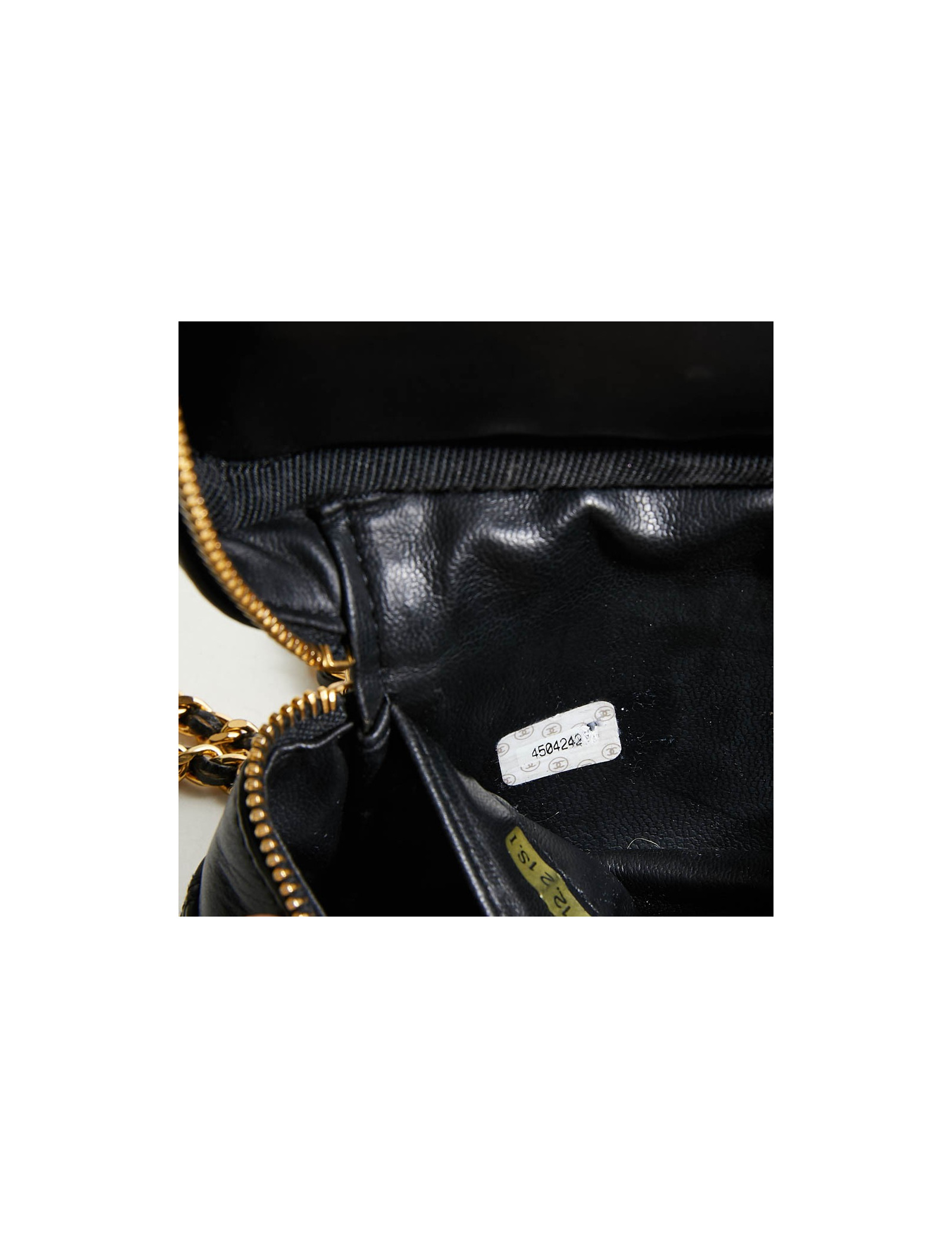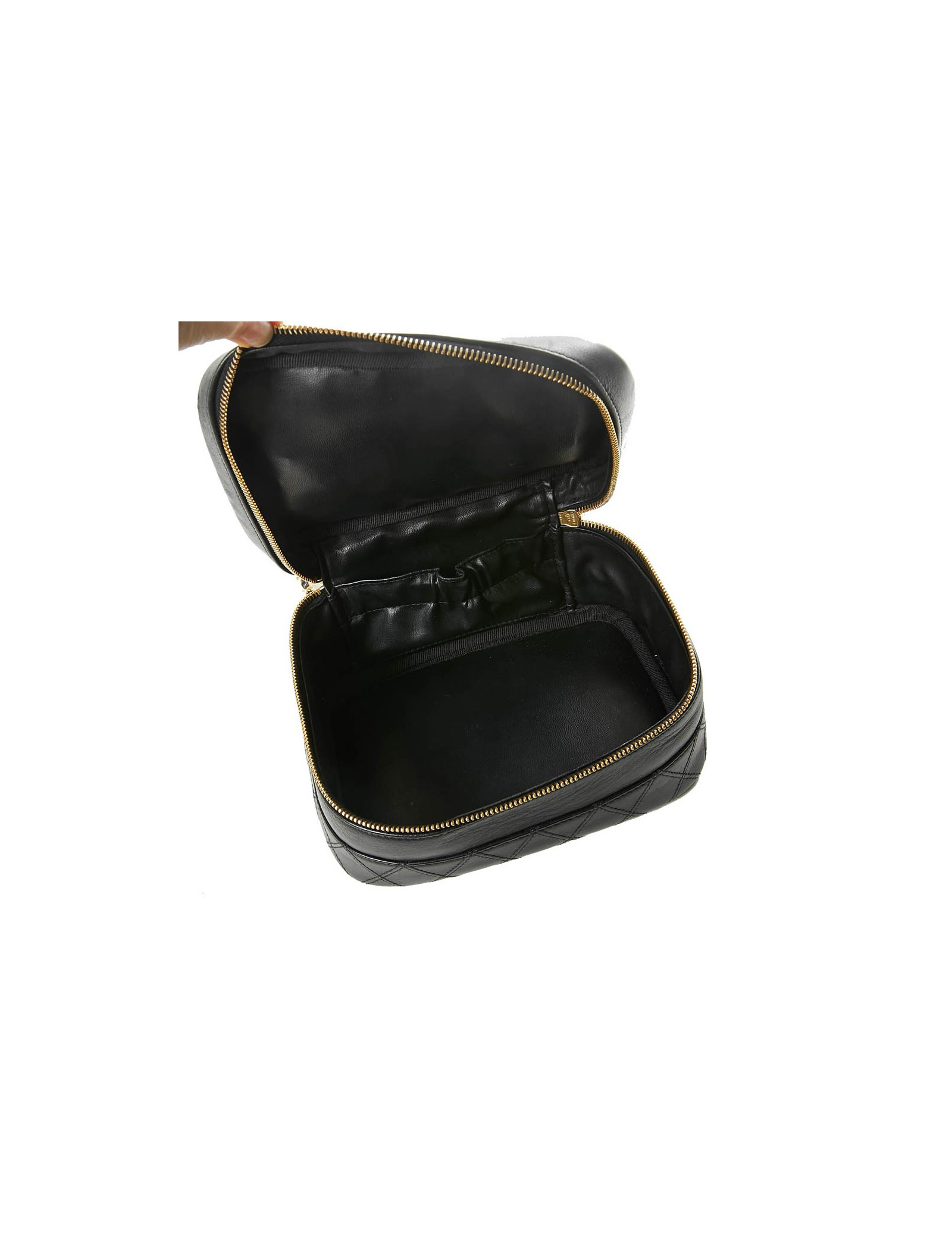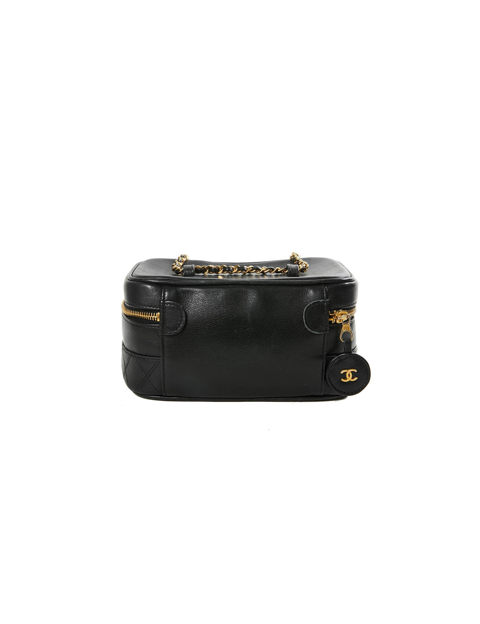 Ce sac, à l'origine servait de boite à bijoux. Avec la tendance vintage, il sera détourné comme un sac de jour. La chaîne métal doré entrelacé de cuir a été remplacée à l'identique. Il se porte à l'épaule ou croisé. C'est un cuir lisse et matelassé. Se ferme par une fermeture à glissière. Il est doublé en plastique noir avec une poche fente.