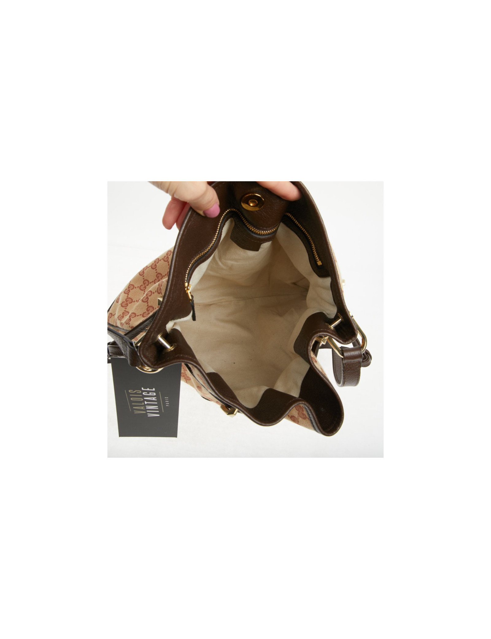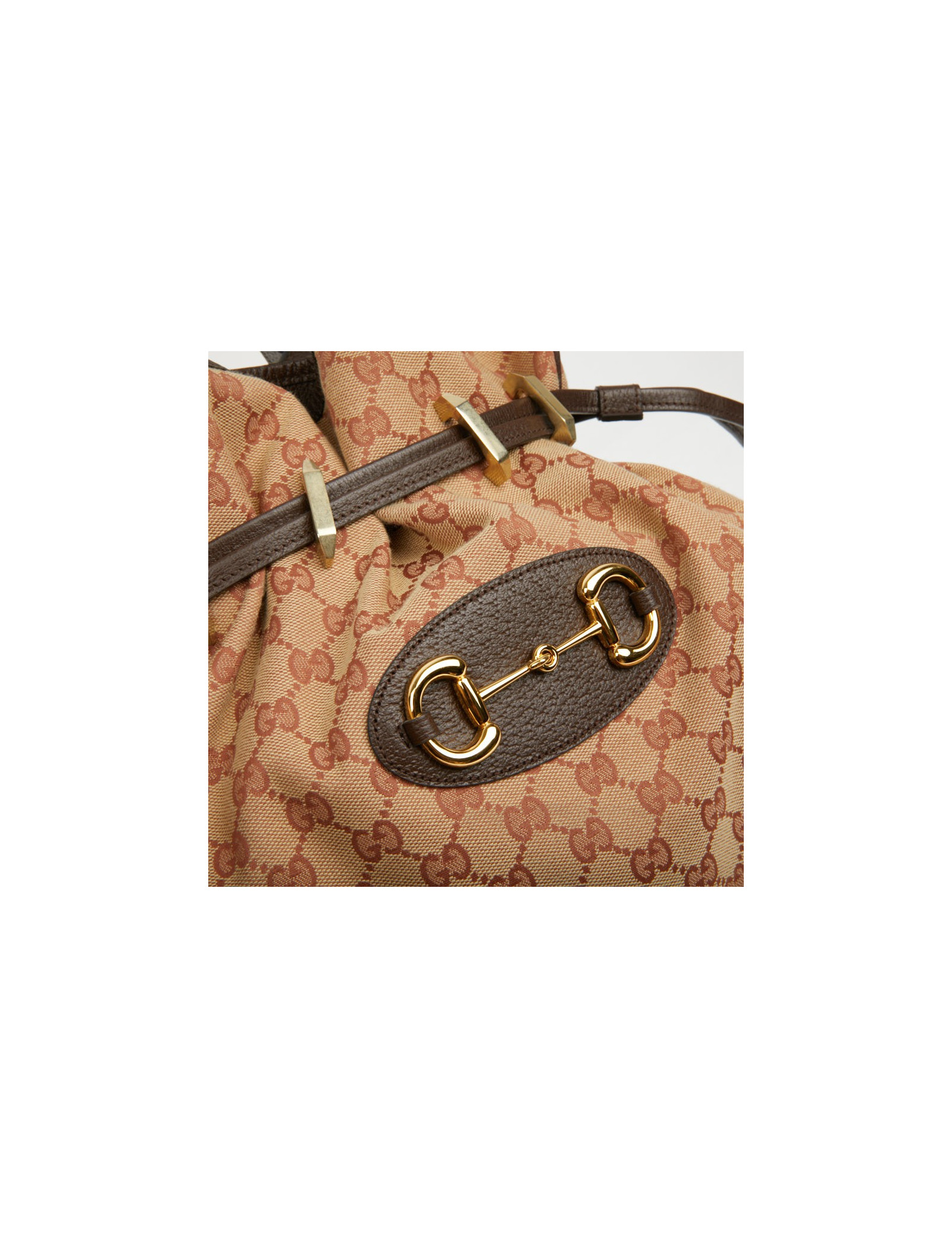 Sac Gucci Horsebit 1955 toile monogramme beige et rouge brique