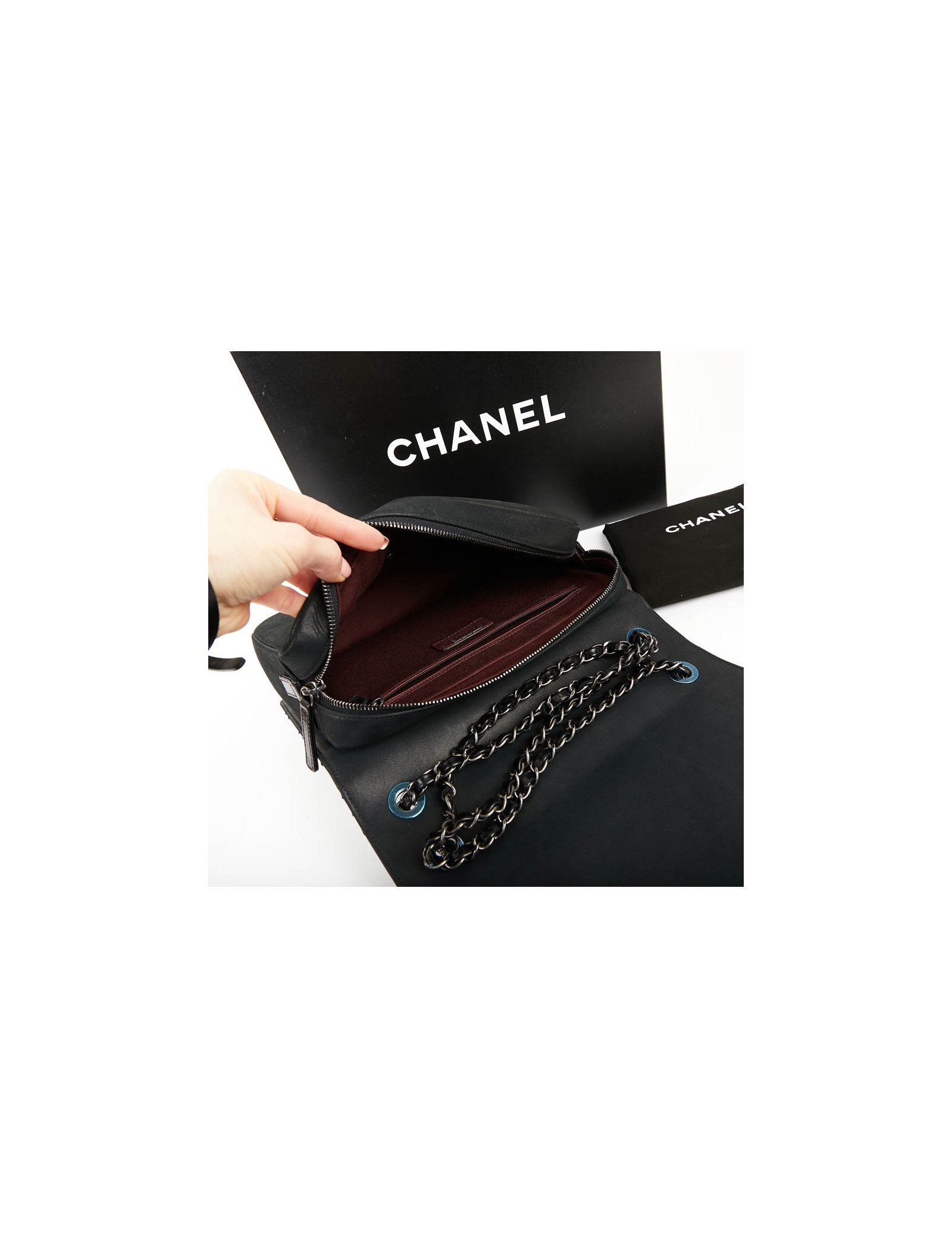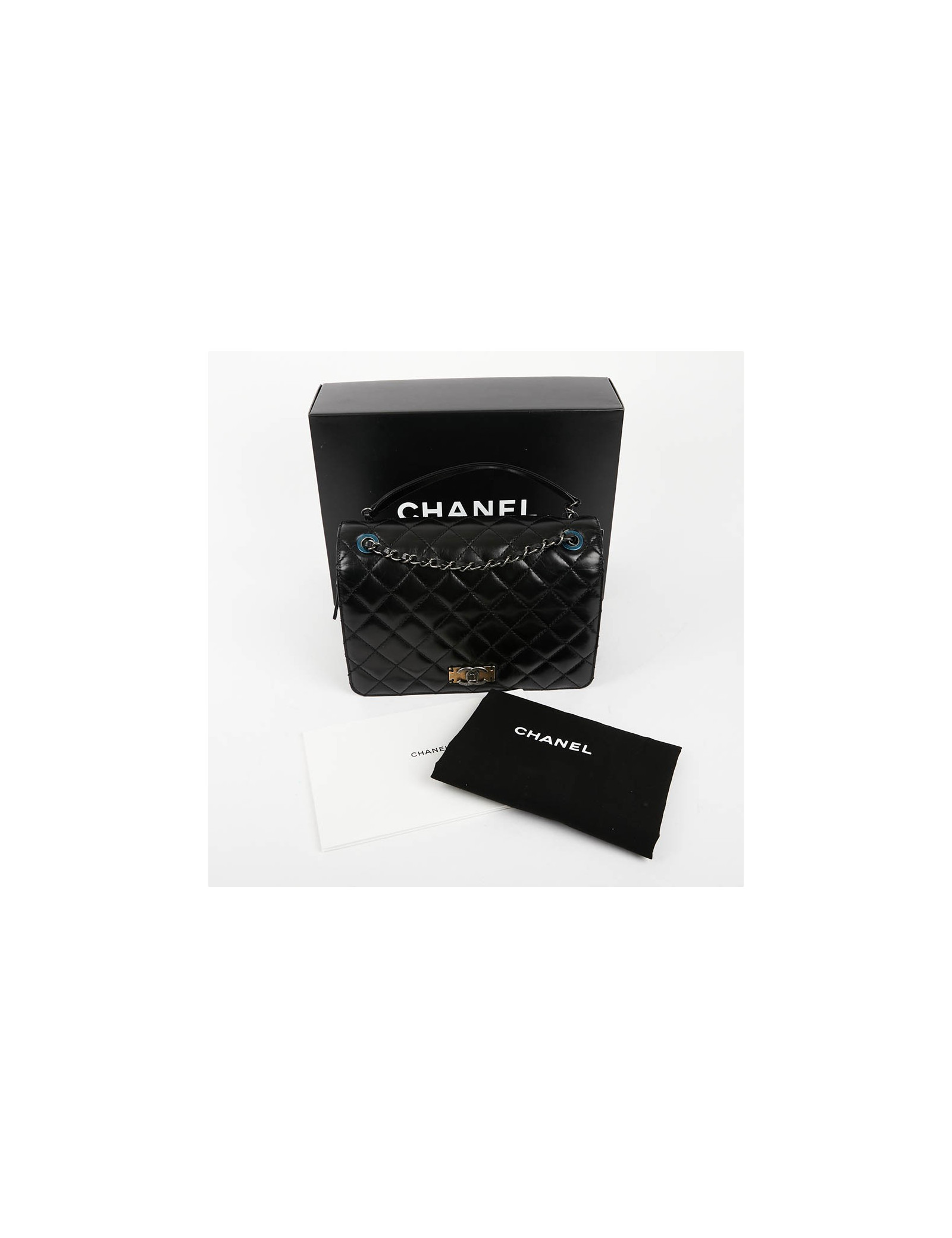 Ce sac CHANEL d'occasion n'a jamais été porté, les plastiques autour des oeillets sont présents.