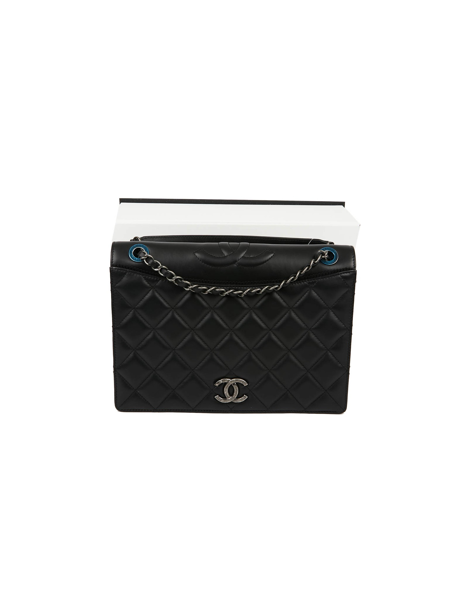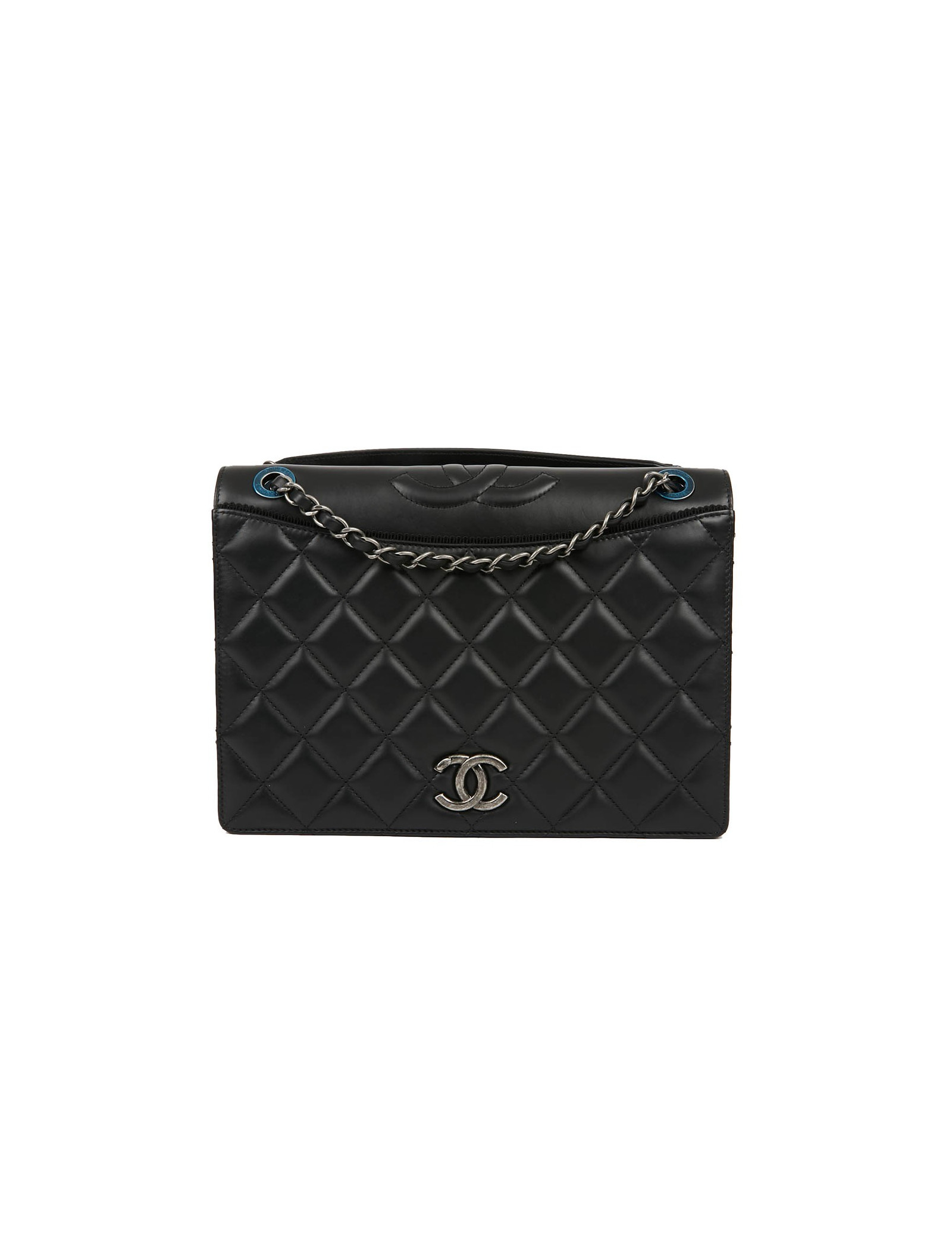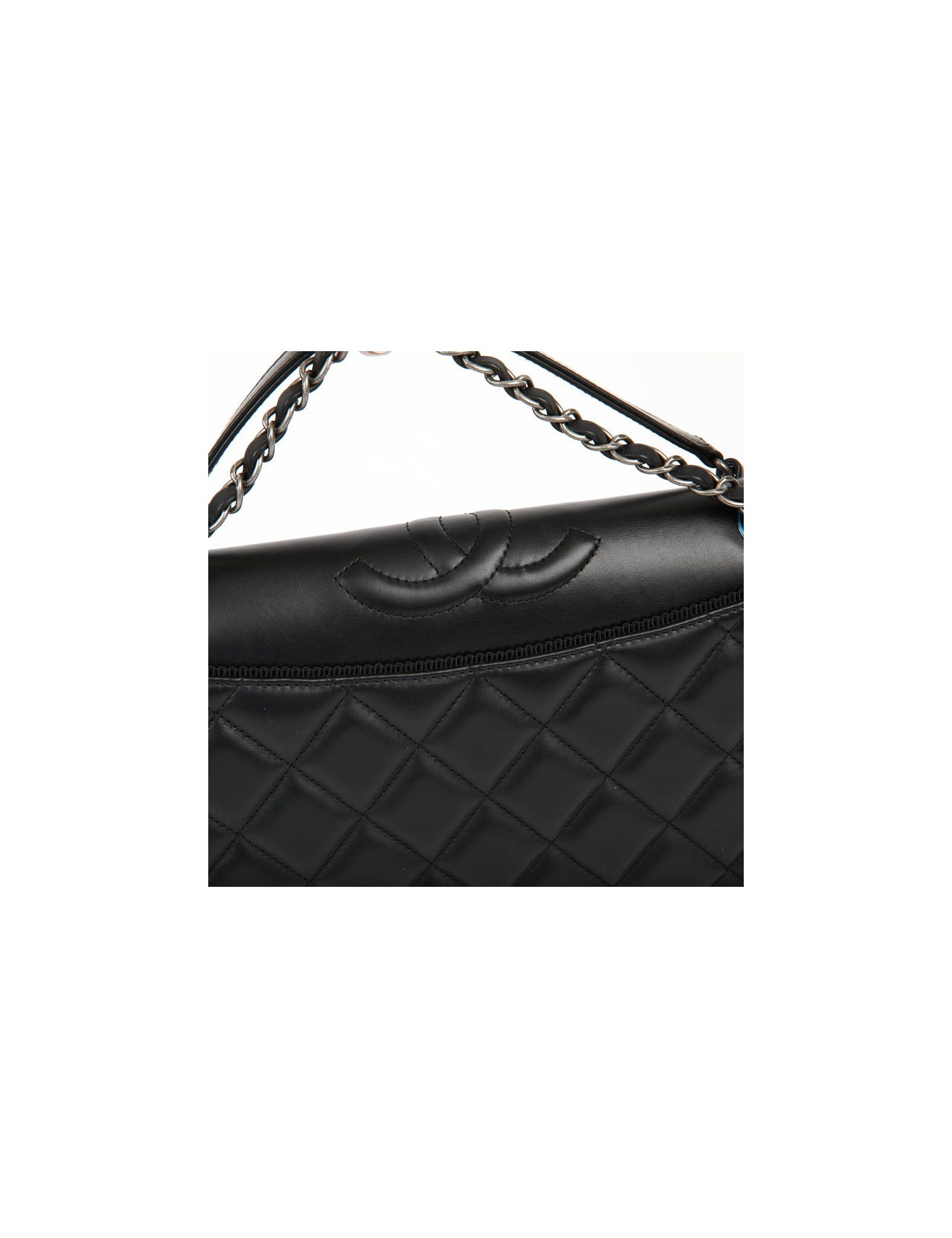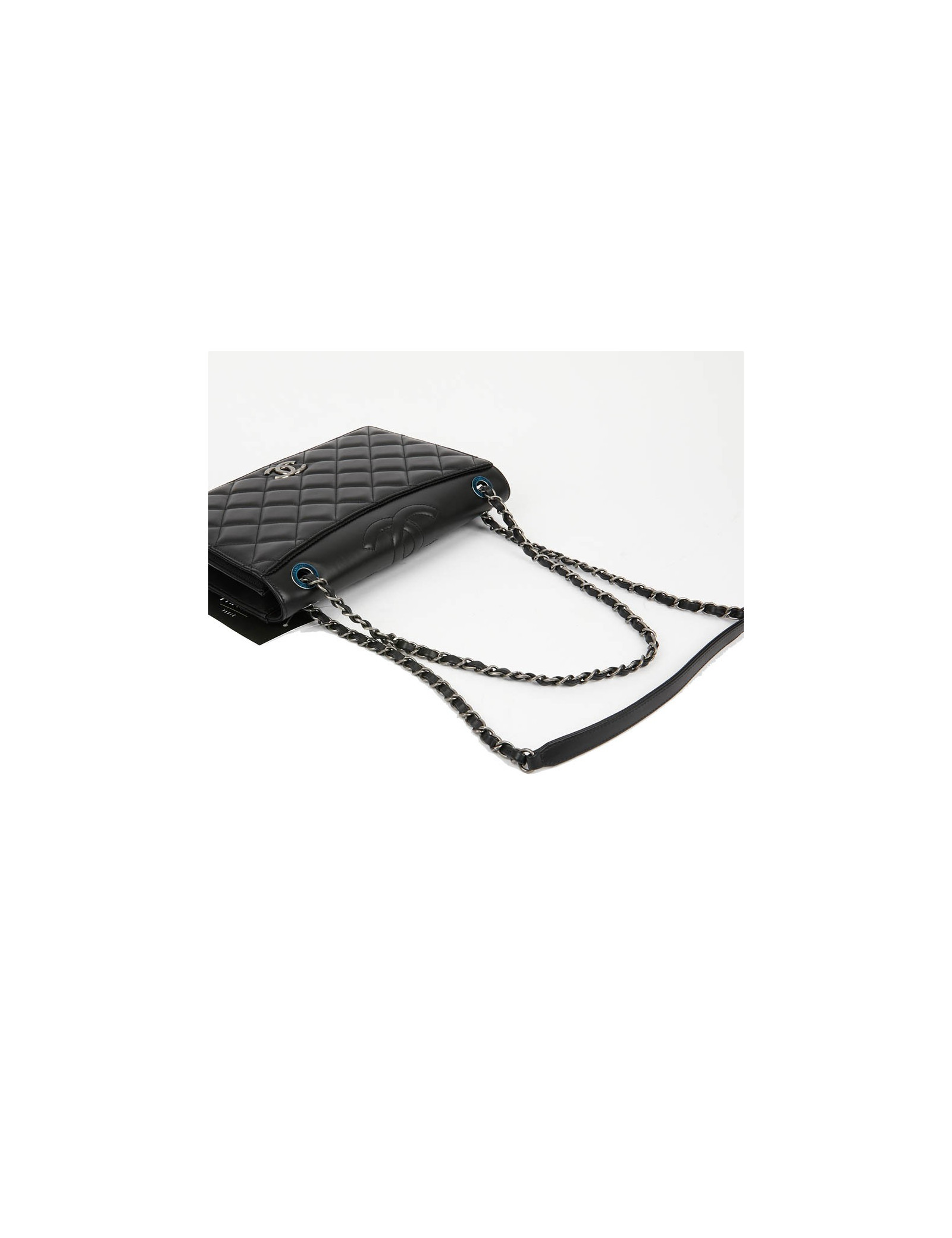 Sac embossé CHANEL cuir lisse noir