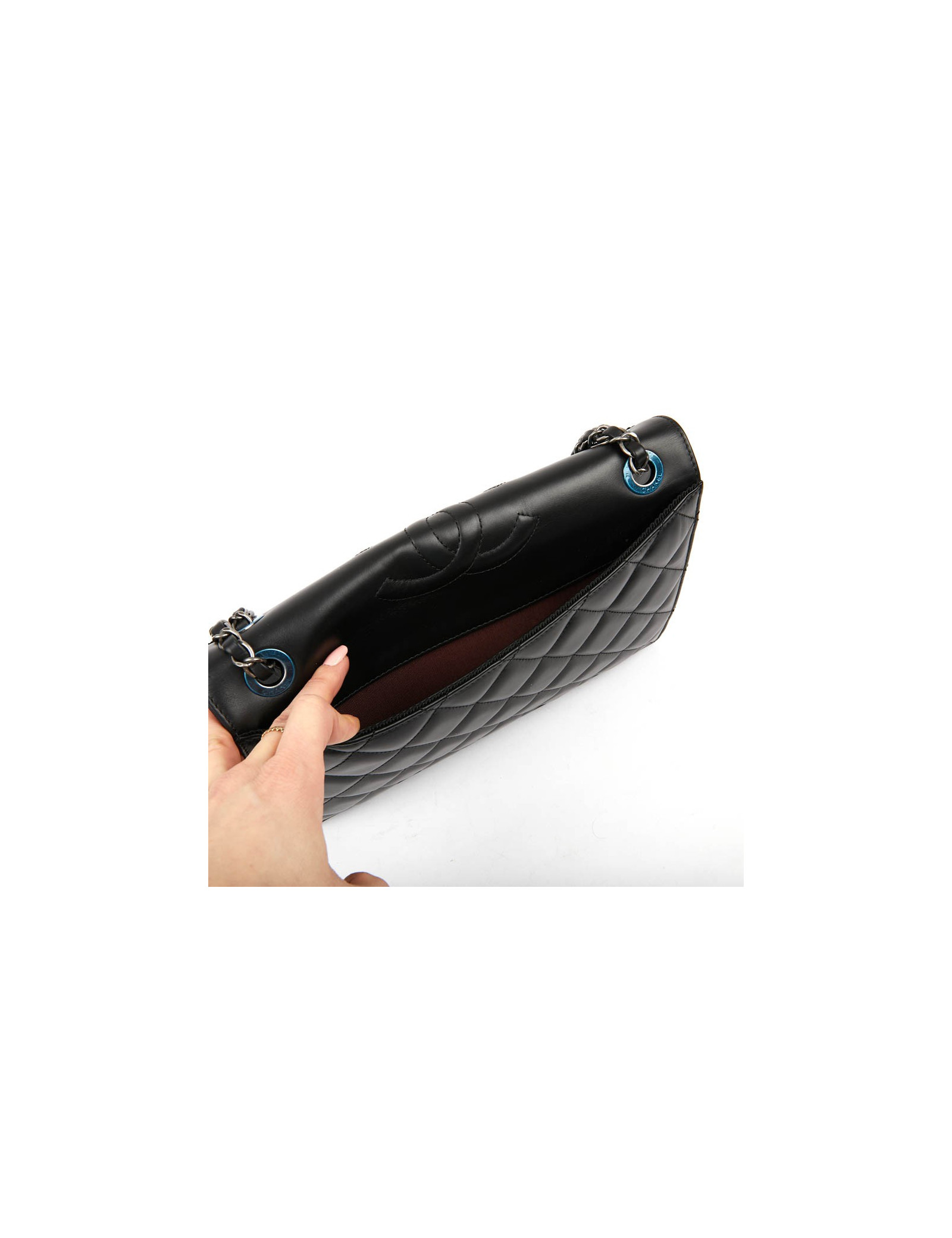 Sac en cuir d'agneau noir embossé CHANEL