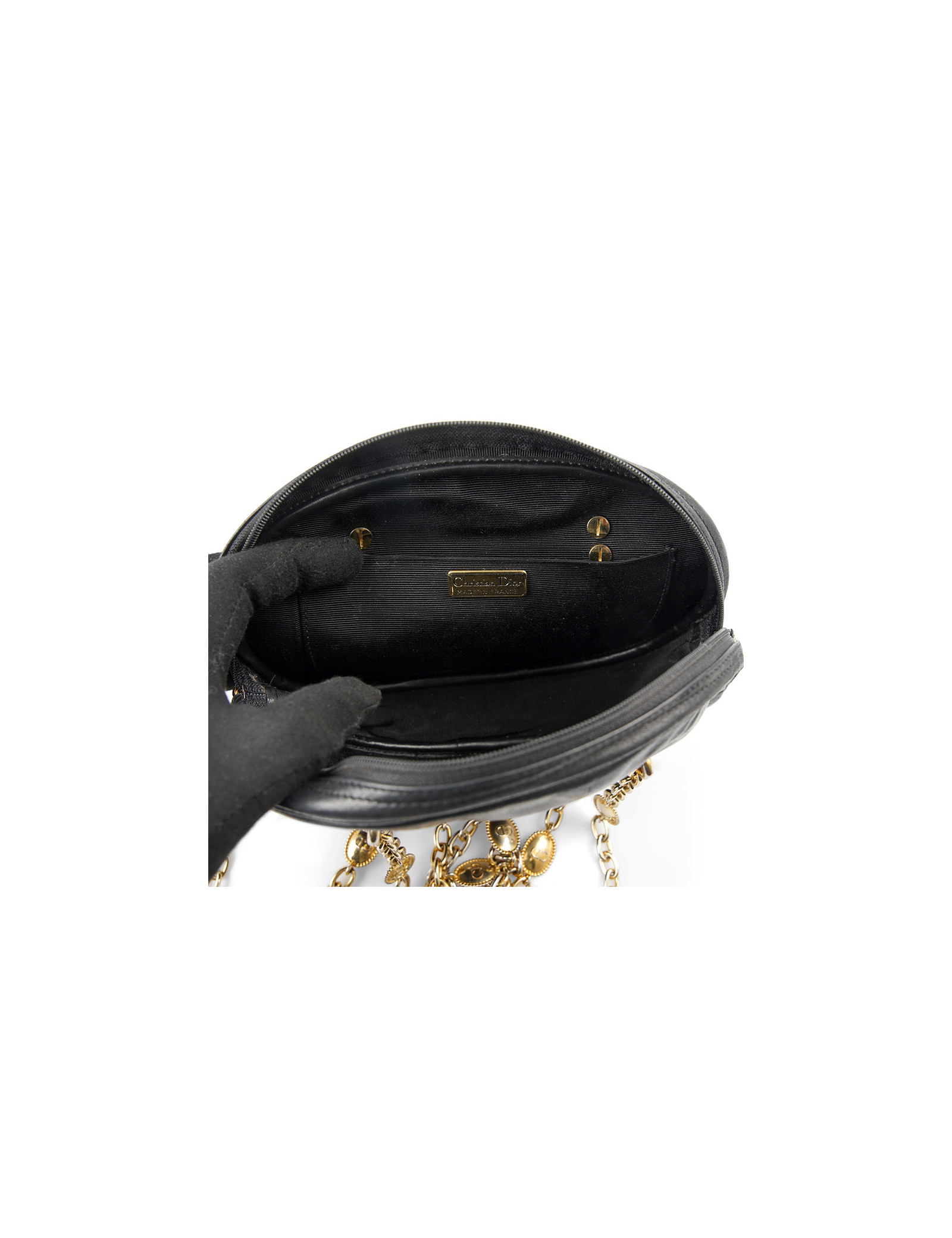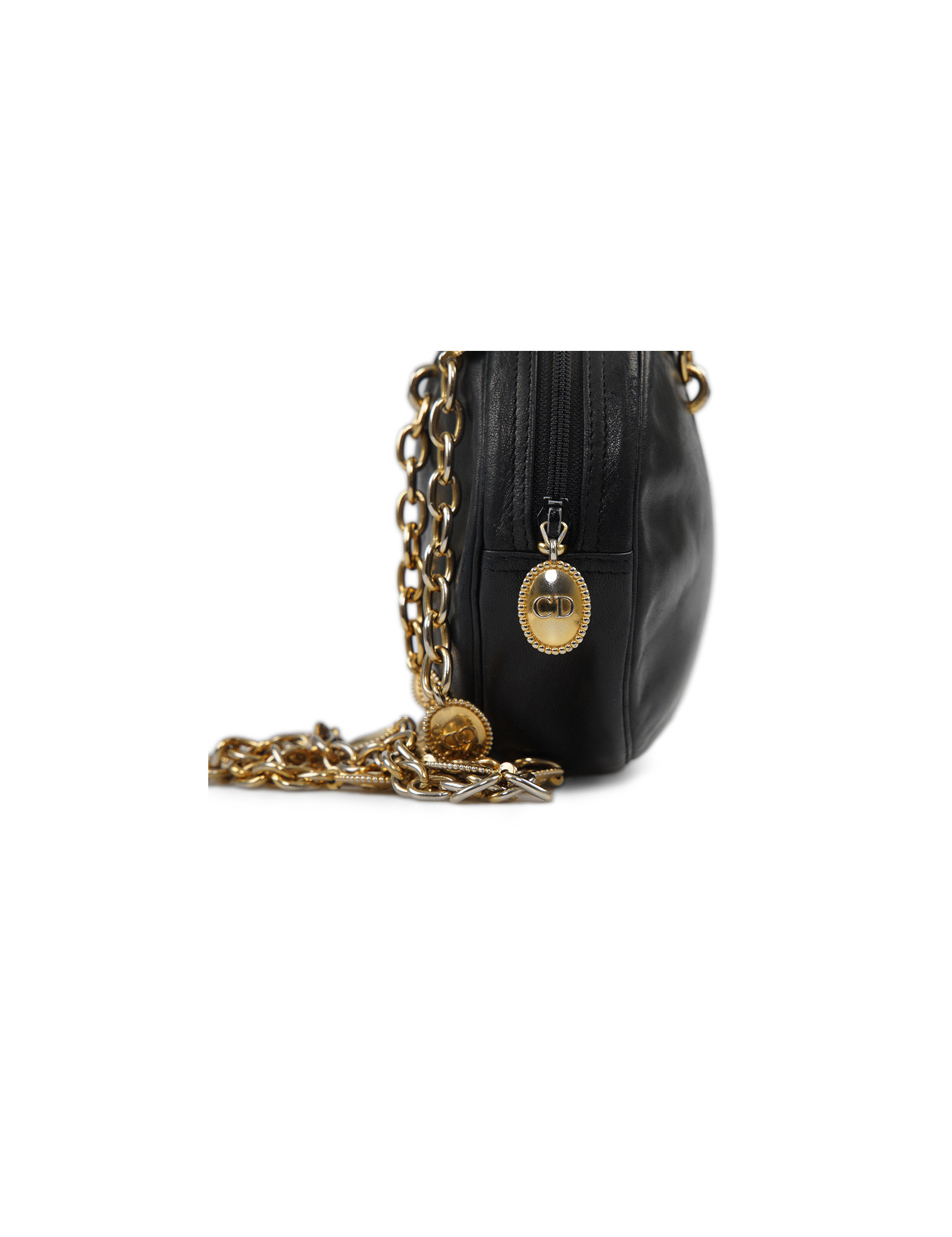 Détails : Ce sac à porter à l'épaule offre la possibilité d'être porté crossbody grâce à ses longues chaînes à maillons agrémentées de pièces CD. Il a une fermeture à glissière. Il dispose d'un espace de rangement principal unique, accompagné d'une petite poche plaquée. La bijouterie dorée présente quelques zones où elle a viré à la couleur argent. Des marques sont également visibles sur le cuir.