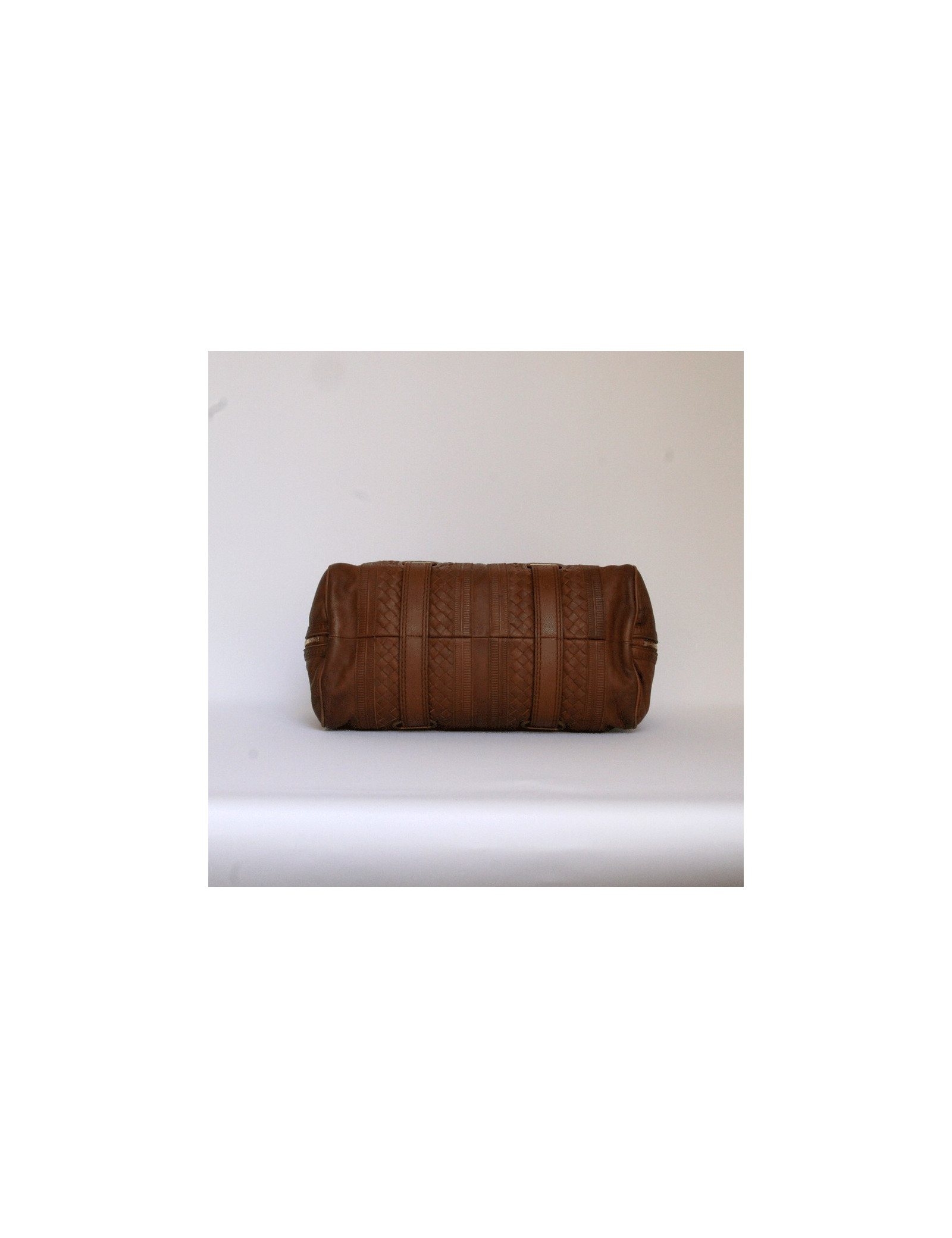 Sublime sac BOTTEGA VENETA en cuir marron, partie tressé et cuir lisse. L'intérieur est en peau retournée marron avec une grande poche zippée. Il a deux anses de 43 cm. Il peut se porter à la main et à l'épaule. Il est en très bon état.