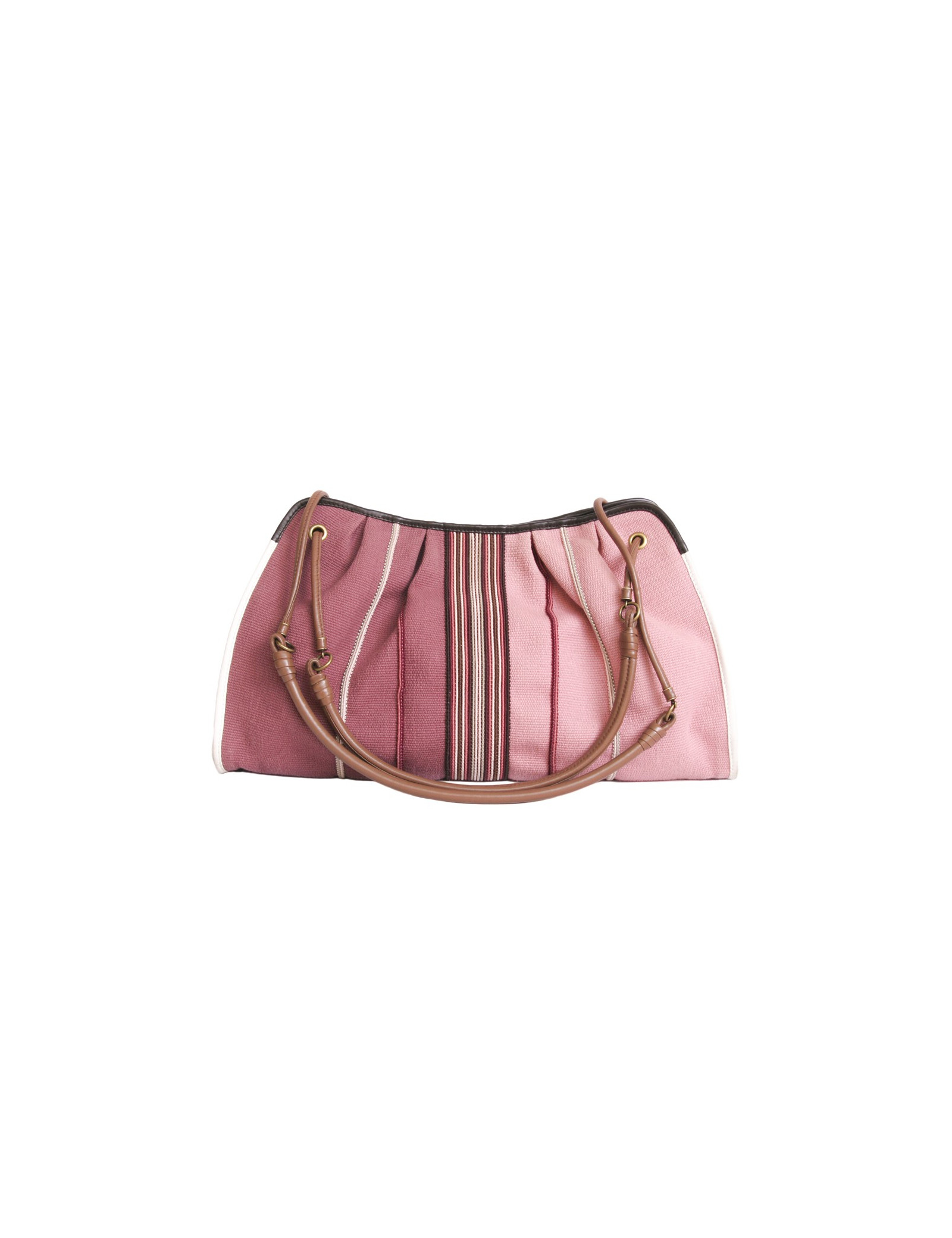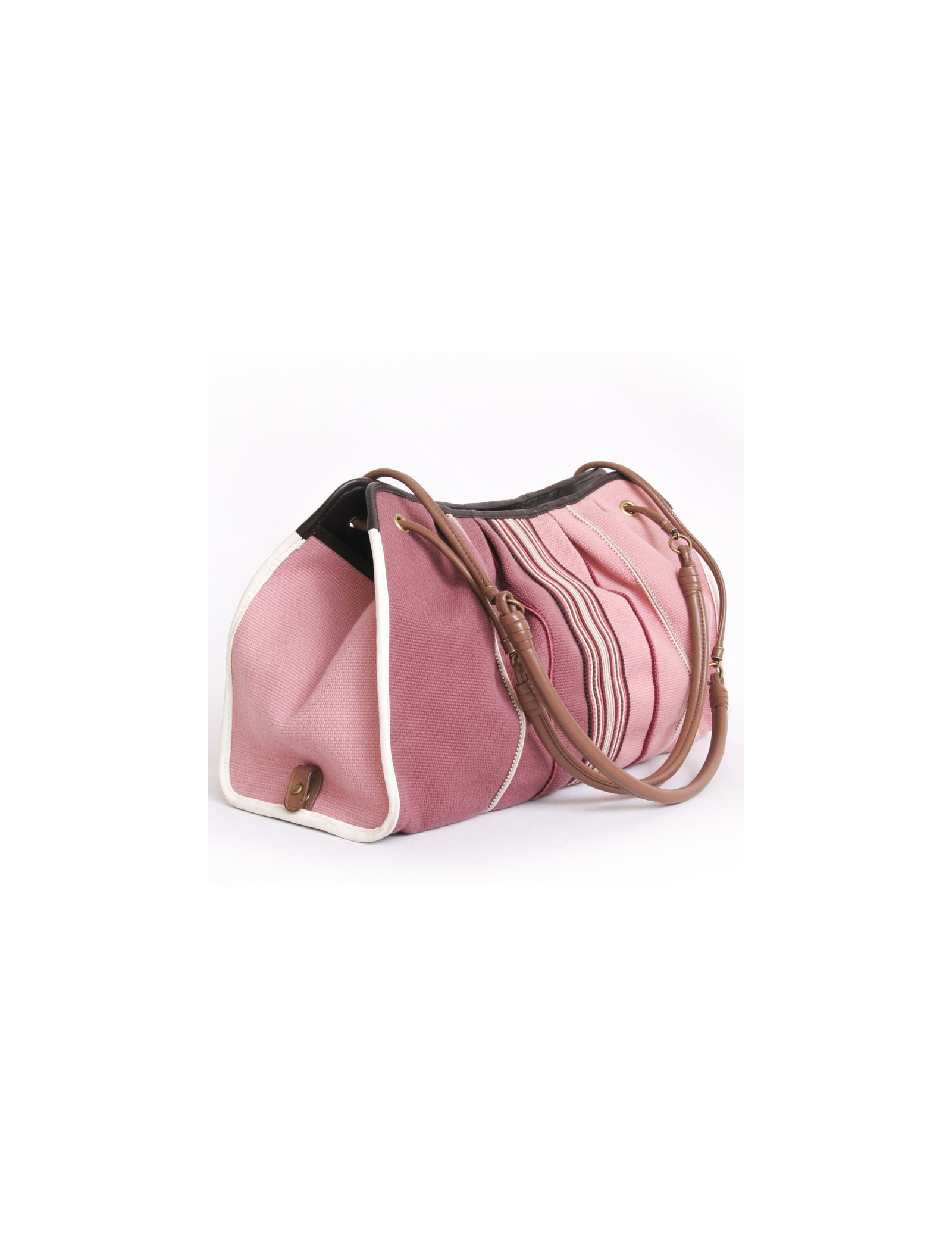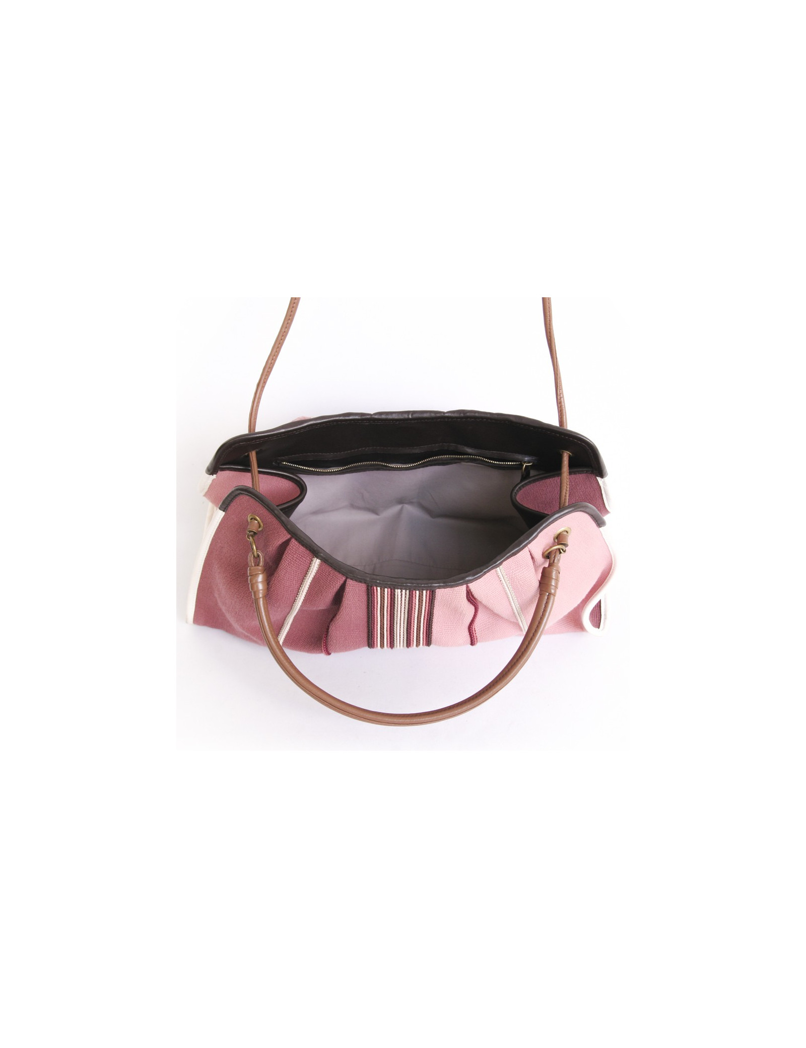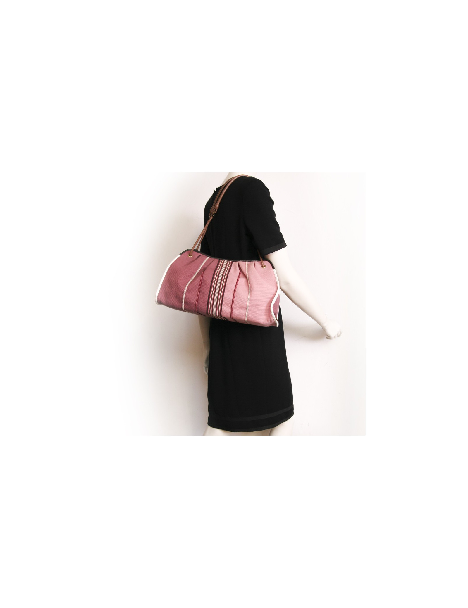 Sac cabas Bottega Veneta en toile dégradée de vieux rose. La bijouterie est en métal doré. Il se porte à l'épaule à l'aide de deux anses en cuir marron. Fermeture aimantée. L'intérieur est en toile de couleur vieux rose avec une poche pour smartphone ainsi qu'une poche zippée. En très bon état.