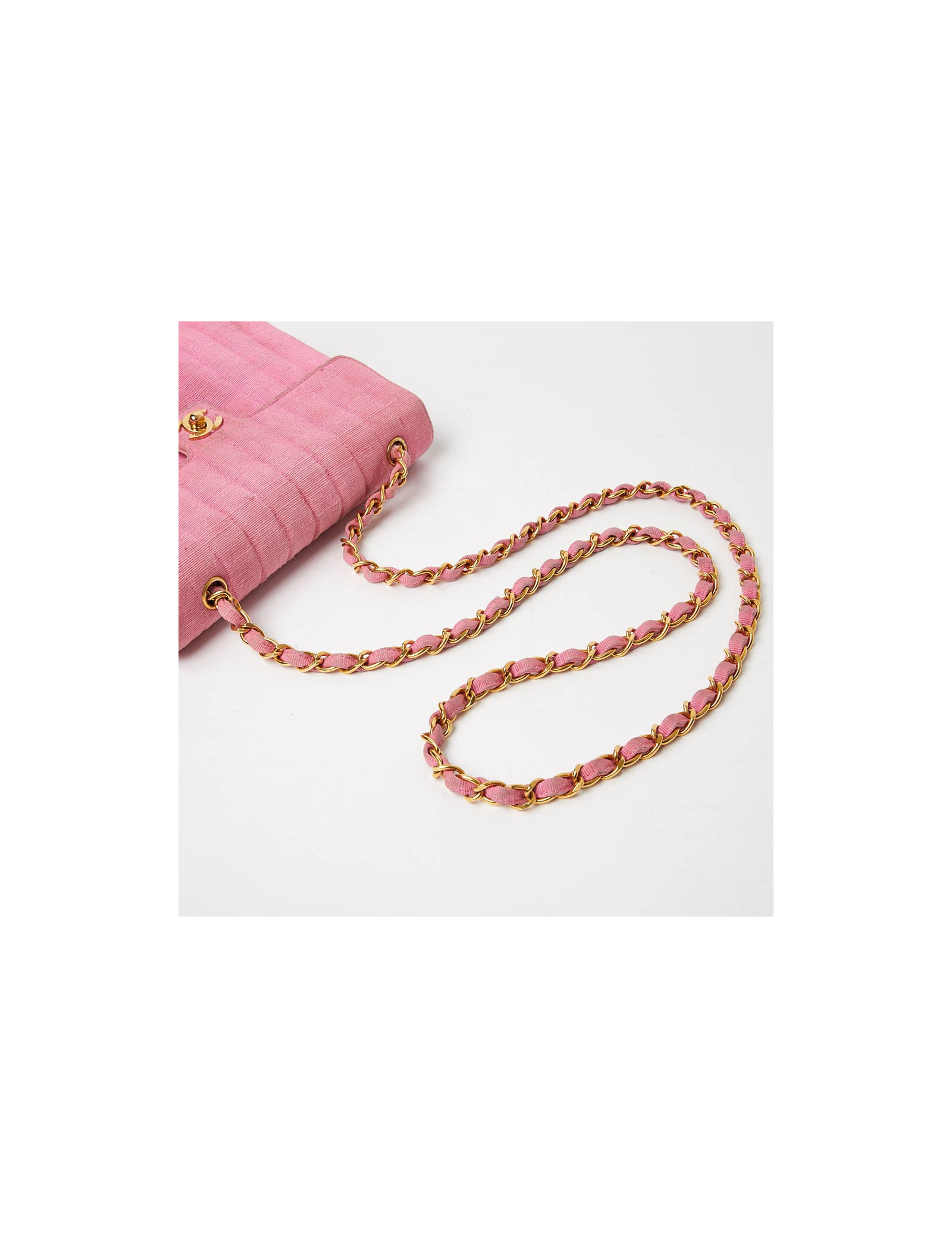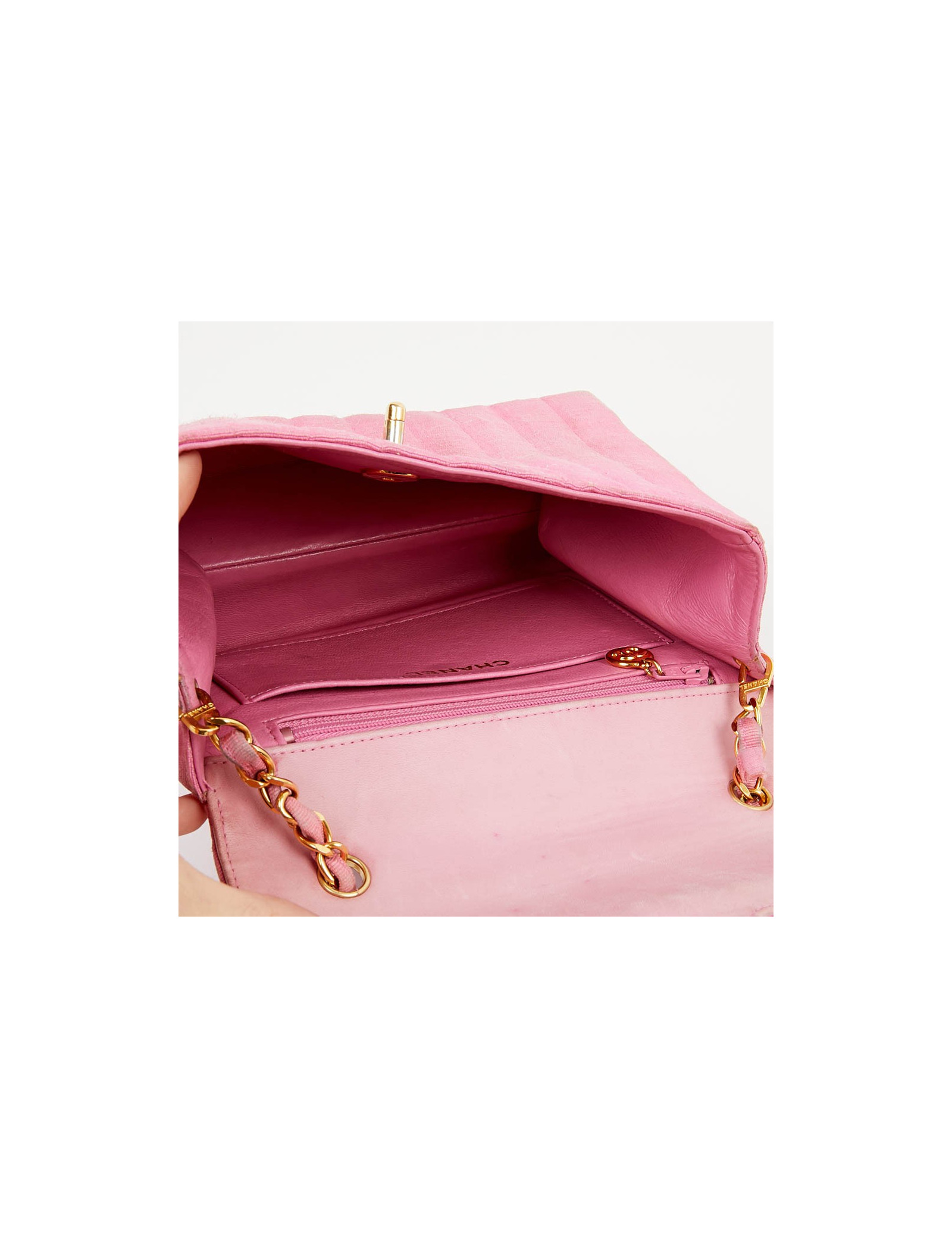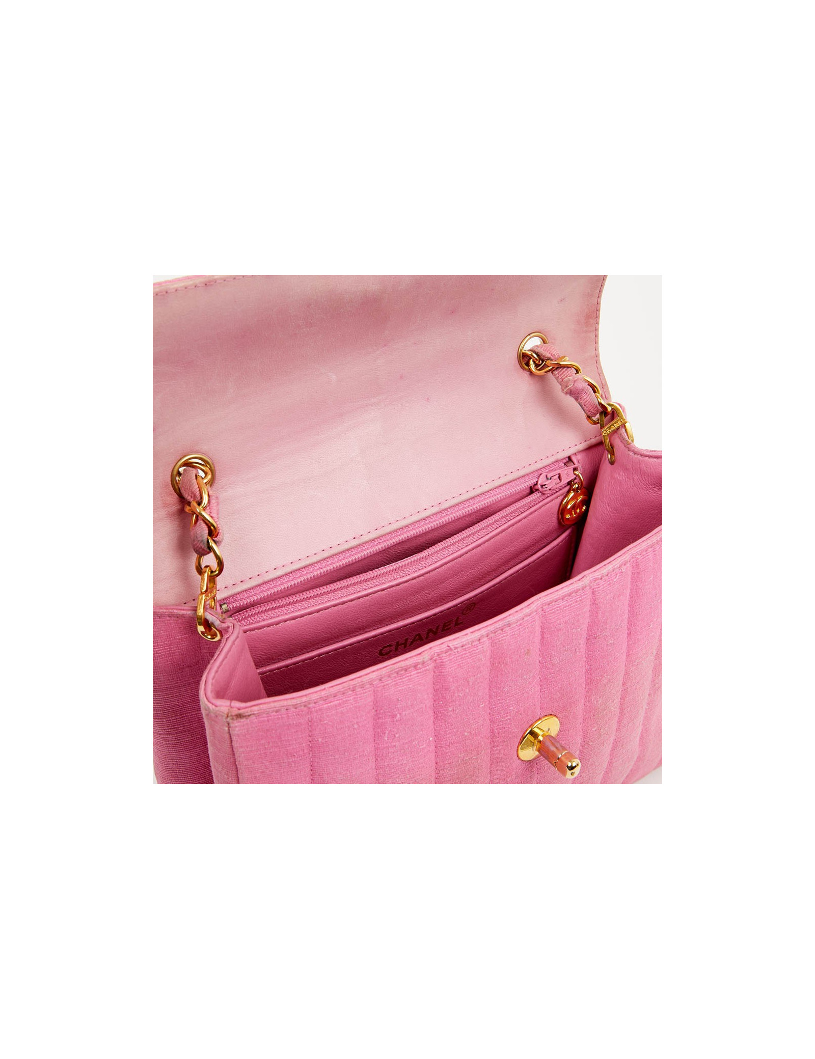 Sac rose CHANEL années 90, en détail