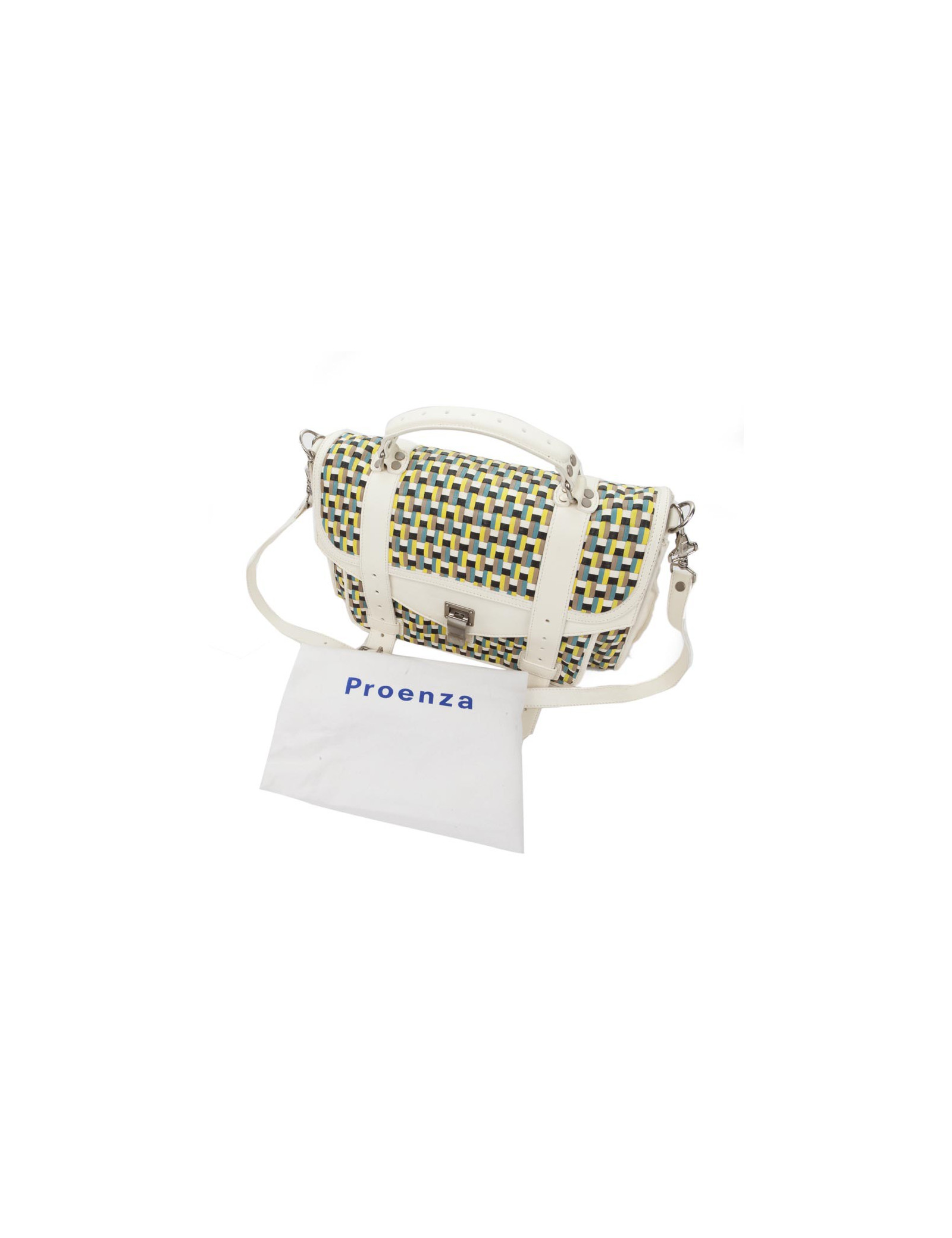 Sac Proenza Schouler en cuir tressé multicolore avec poches à soufflets.. Etat neuf.
