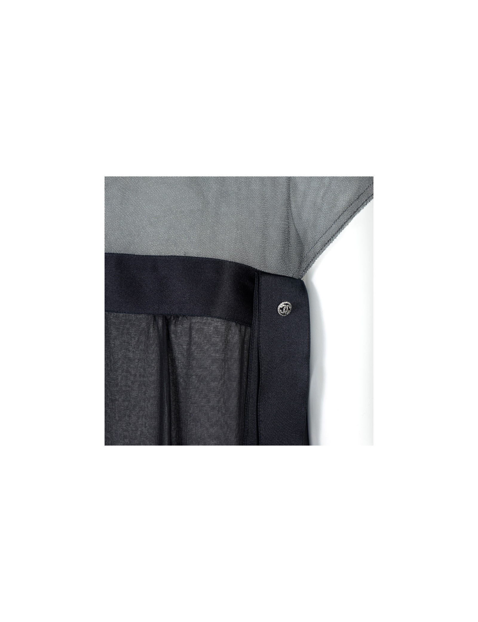 Elle dispose de deux doublures en soie également. La première de couleur blanche et la deuxième en dégradé de gris afin d'apercevoir ces couleurs à travers le premier voile noire du dessus. Voir photos.