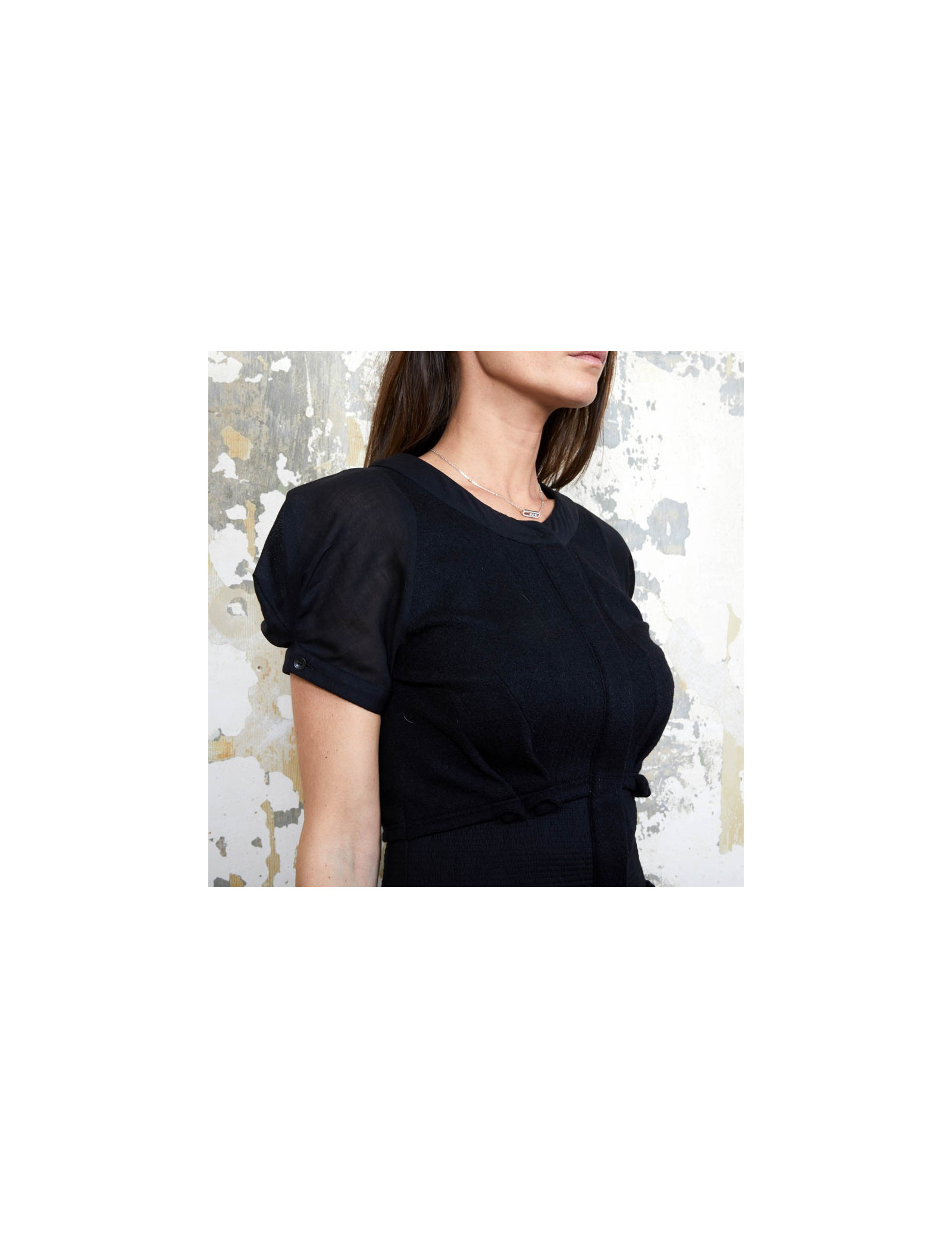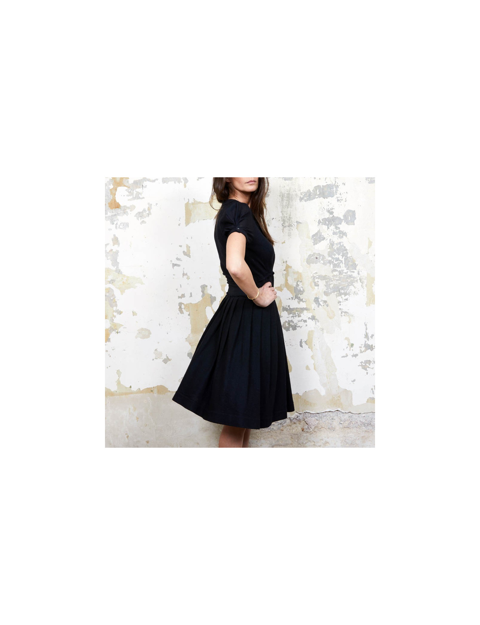 Dimensions à plat : Largeur des épaules 36 cm, sous les aisselles 42 cm, hauteur totale 103 cm, largeur à la taille 35 cm, ampleur du bas 80cm.