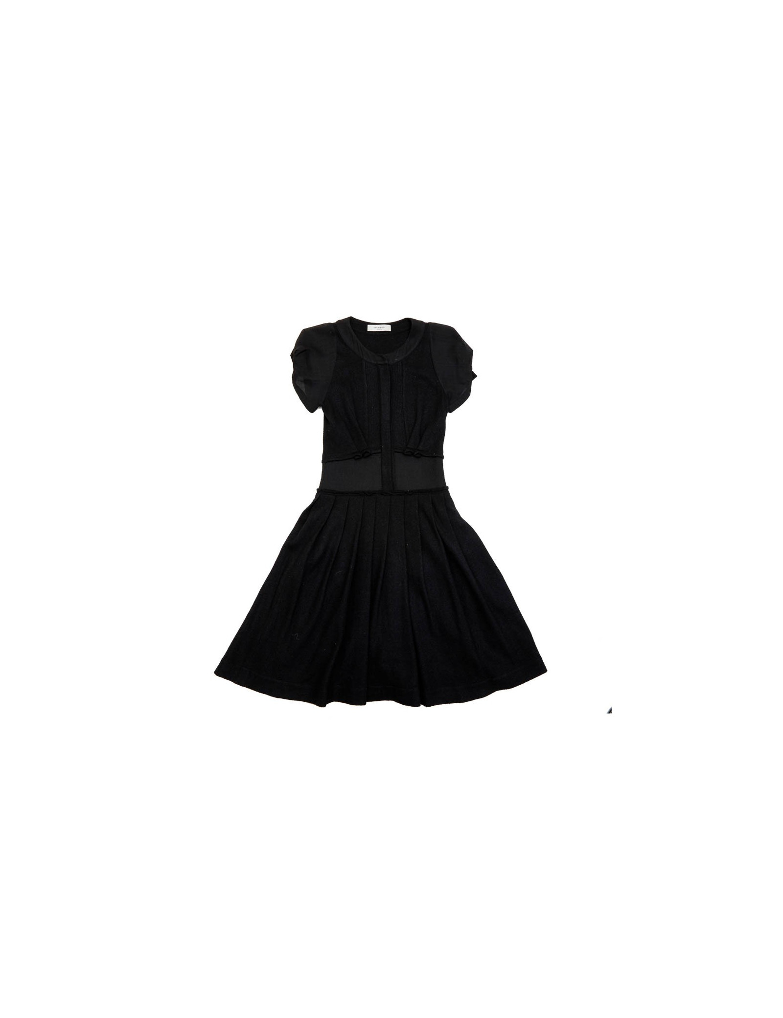 Robe à manches courtes fermées par un bouton, Viktor & Rolf Taille 40IT/36 FR cintrée à la taille puis plissée et évasée. 100% Laine. Elle est doublée. Elle a sur le côté une longue fermeture éclair de 38 cm. Made in Italy. En très bon état.