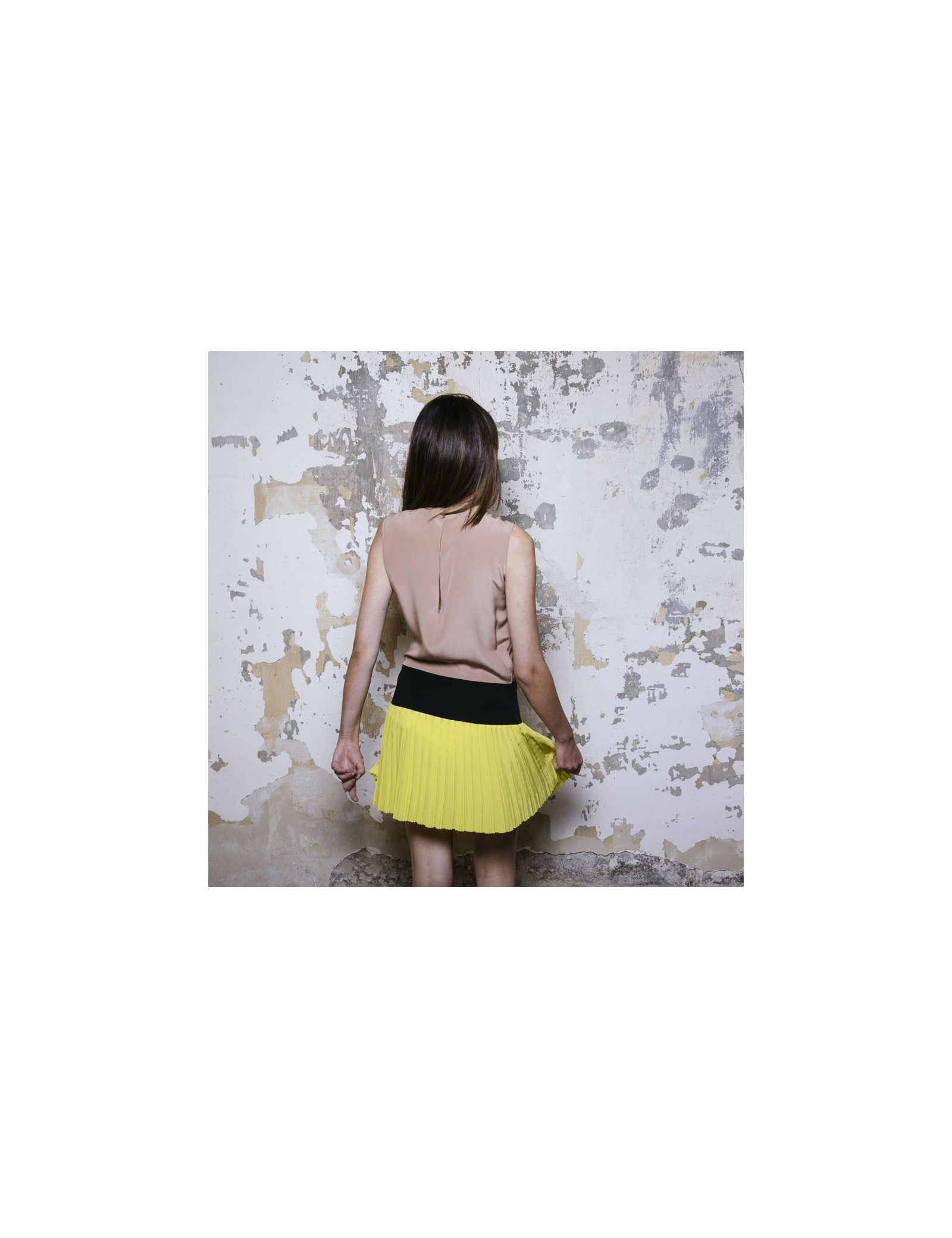 Dimensions à plat : largeur sous les aisselles 47 cm, hauteur totale 87 cm, largeur taille 40 cm (bande noire), ampleur du bas 59 cm, longueur fermeture zippée 32 cm