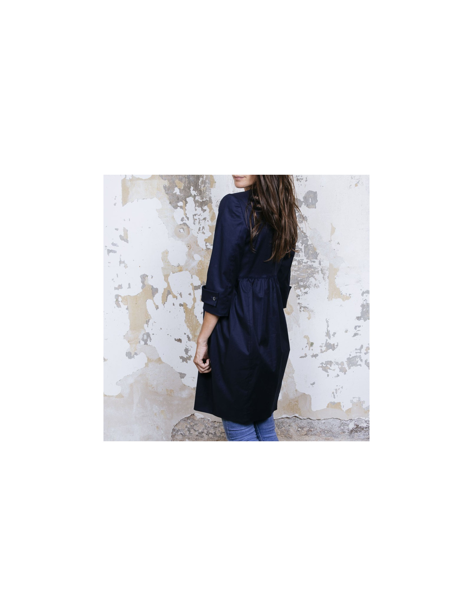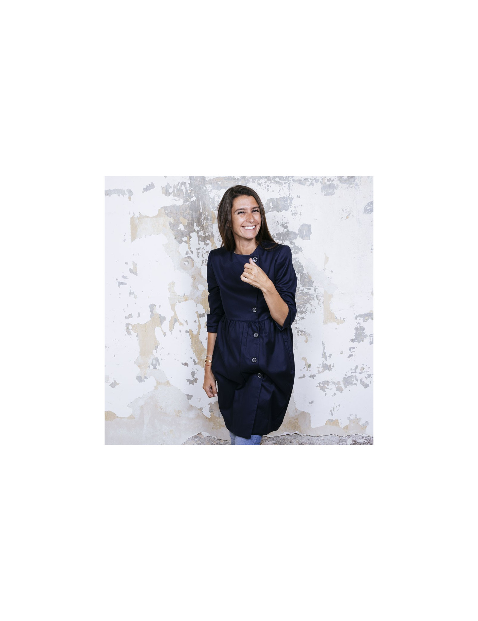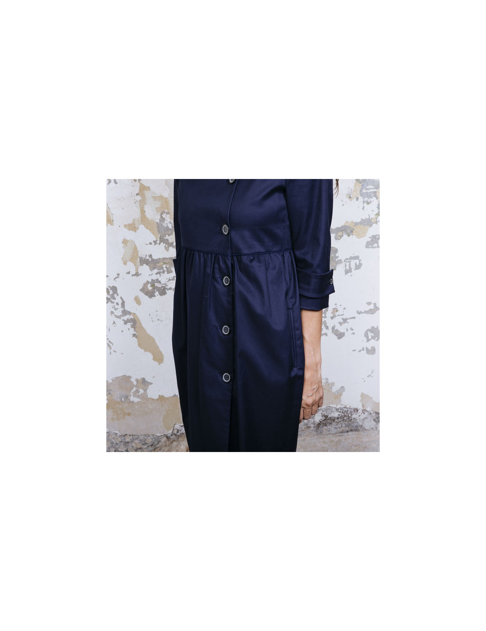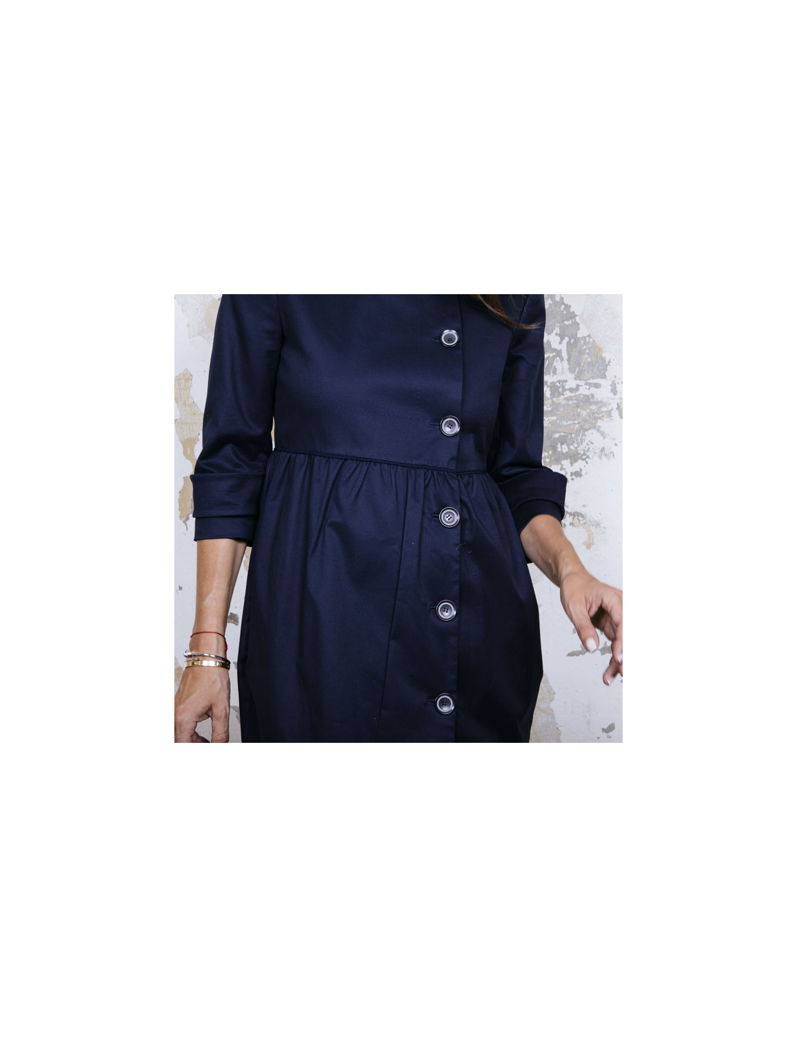Robe manteau Stella Mc Cartney en coton bleu marine, boutonné sur l'avant.