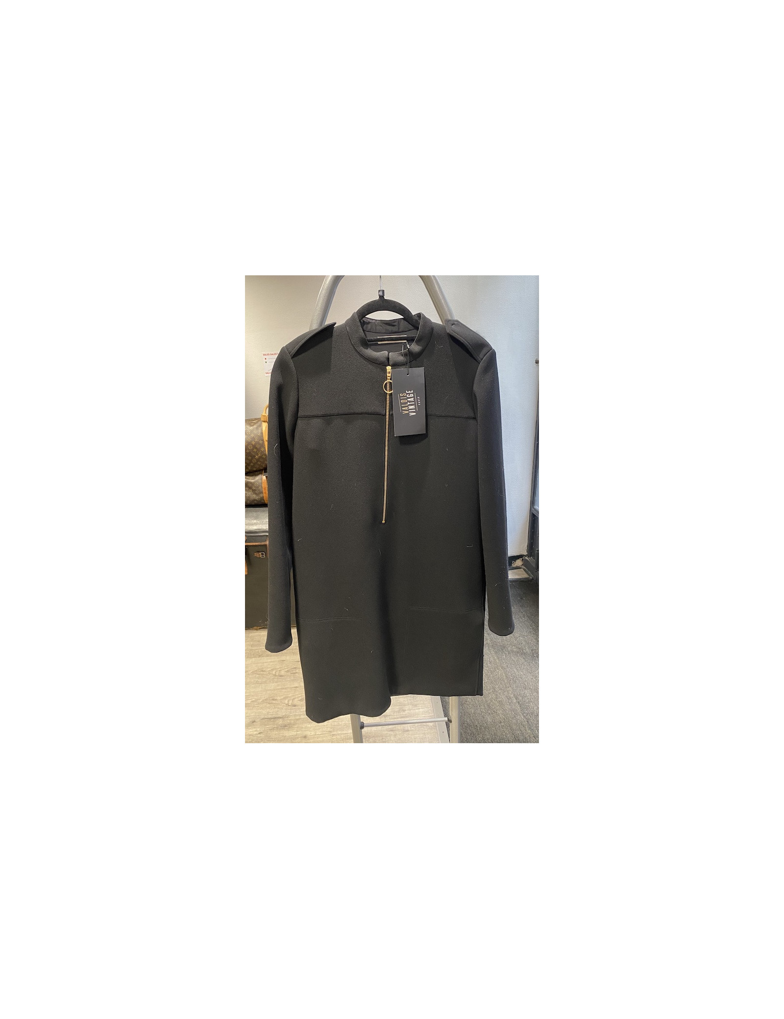 Derniers articles en stock ROBES Robe Manteau ALAIA T 38 fr en laine noire ajourée ALAIA 20266 1 700,00 € Superbe robe manteau ALAIA en laine ajourée noire, sans manches à grand col châle, il se boutonne croisé sur le coté à l'aide de 2 boutons dont 1 est invisible à l'intérieur. Dimensions à plat : largeur épaules tombantes 46 cm, poitrine 40 cm, taille 34 cm, ampleur du bas à l'arrière 201 cm, hauteur totale 99cm. Ajouter au panier