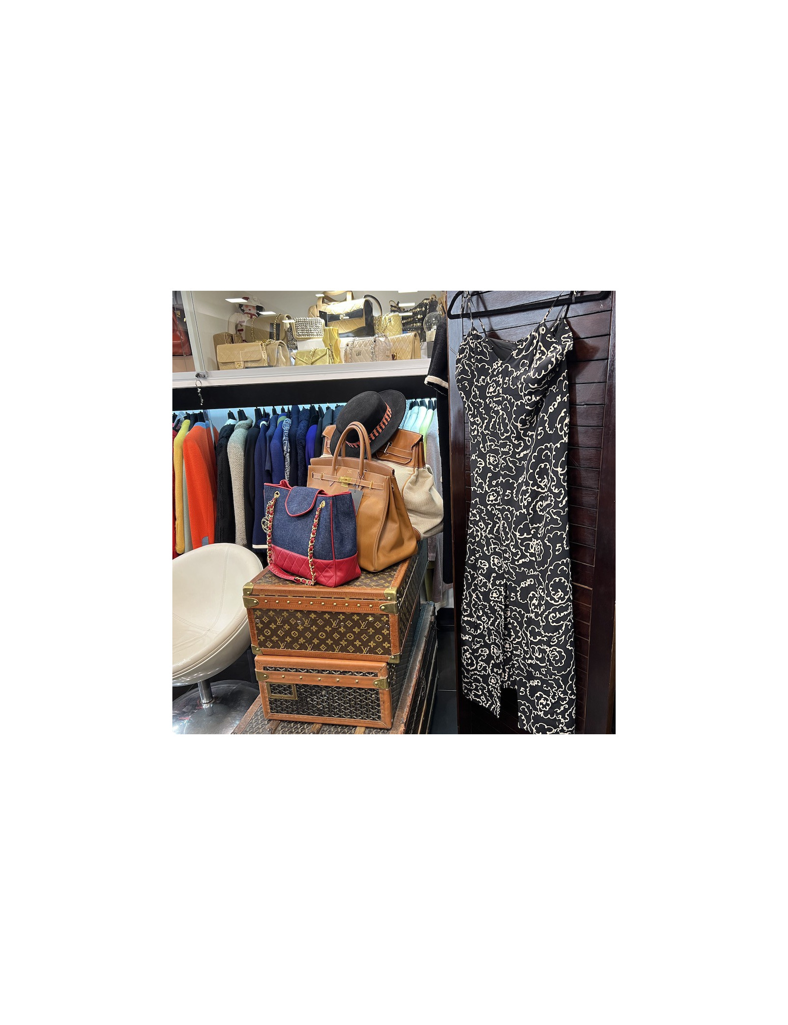 Derniers articles en stock ROBES Robe pull CHANEL T38 laine noire et blanche imprimé géométrique CHANEL 25132 2 300,00 € Robe pull Chanel Robe pull Chanel taille 38, en laine, mohair et angora, noire et blanche. Imprimés géométriques. Col roulé et manches bouffantes en mohair et angora blanc. Signature Chanel en émail blanc Made in France Très bon état d'usage Dimensions à plat : Longueur totale 94 cm, largeur d'épaules 42 cm, largeur poitrine 46 cm, longueur manches 58... Ajouter au panier