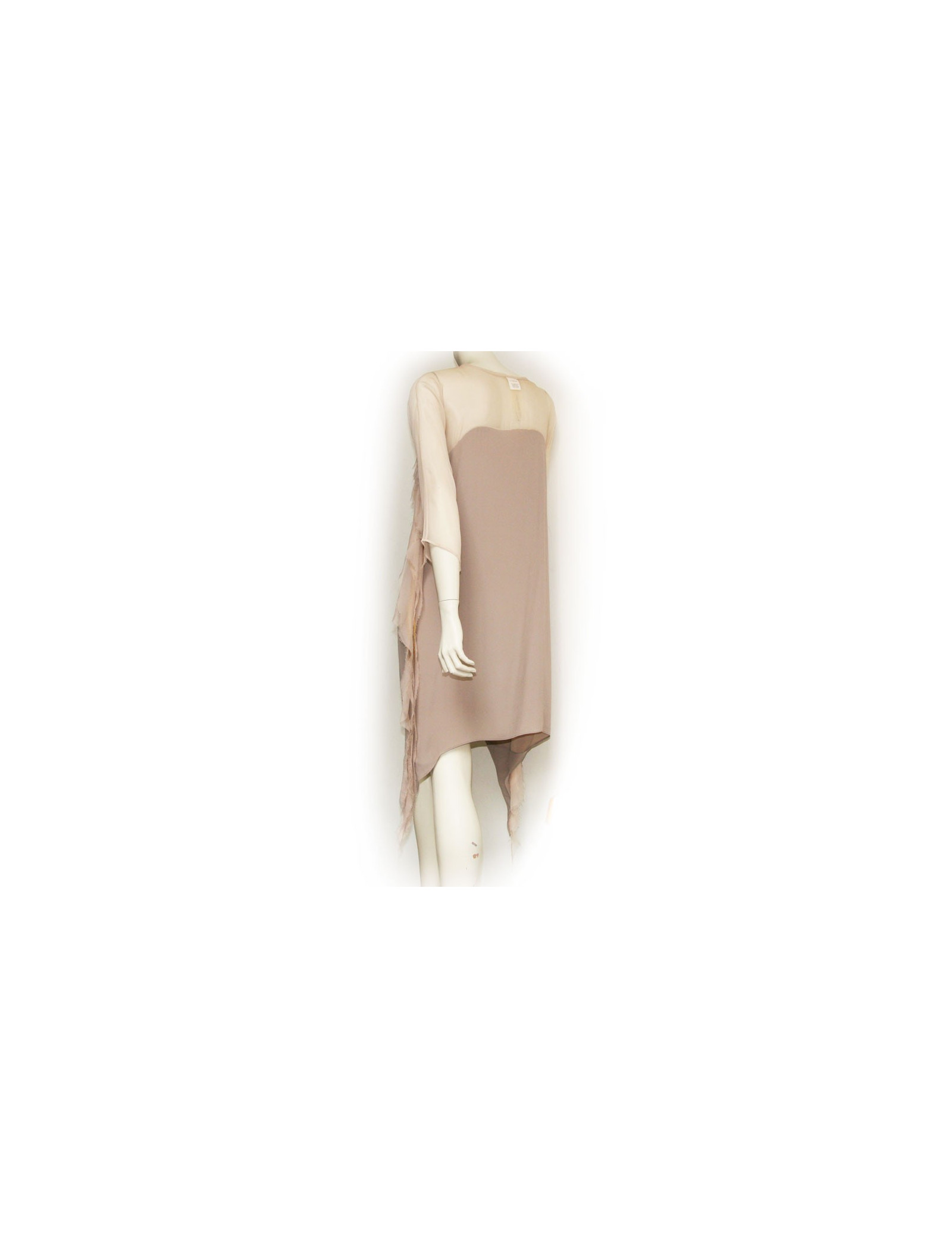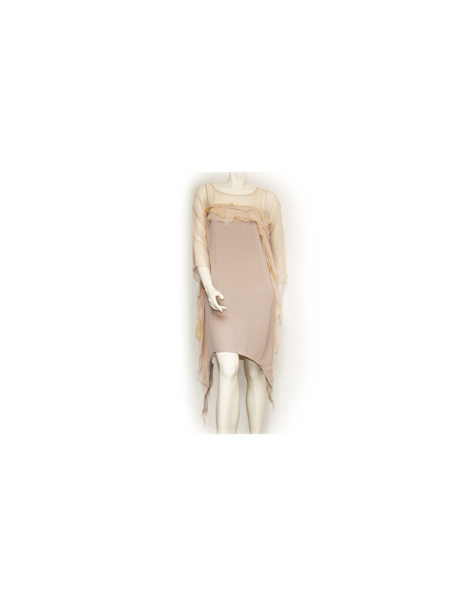 Robe 100% soie gris clair Anne Valerie Hash Taille M. Très fluide et facile à porter. Elle vous sera très agrèable à porter cet été. Le haut de la robe est transparente.