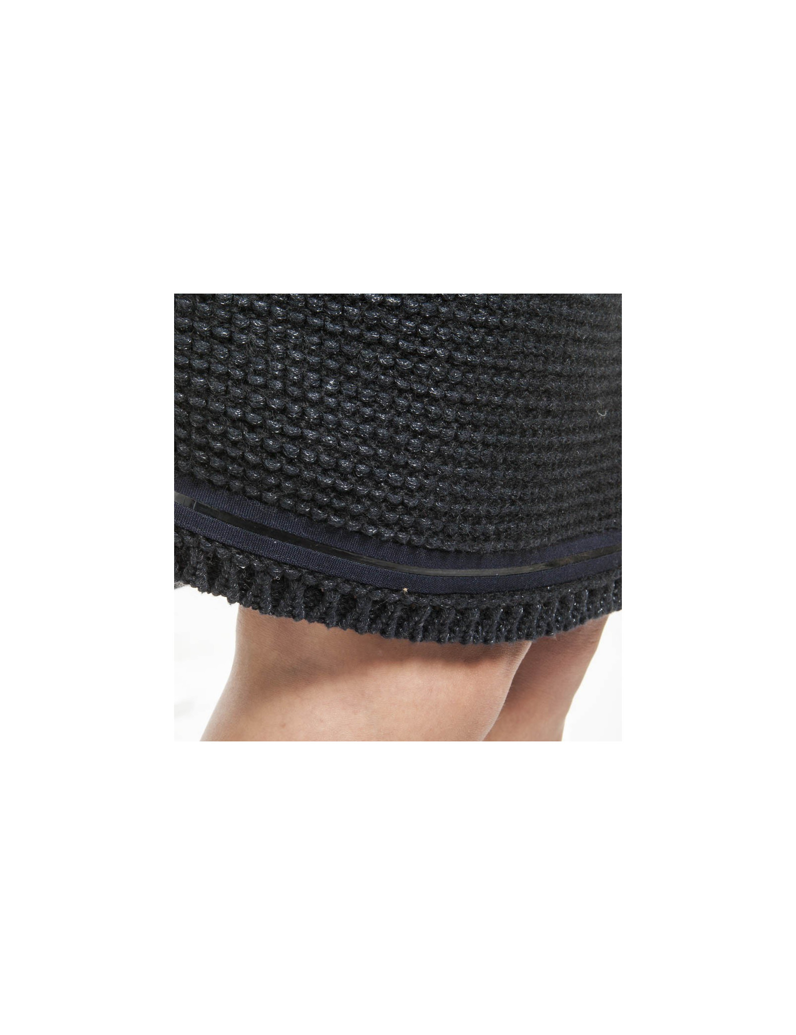 Elégante robe CHANEL en tricot bleu marine et noir sans manche gansée d'un ruban de gros grain bleu marine et
