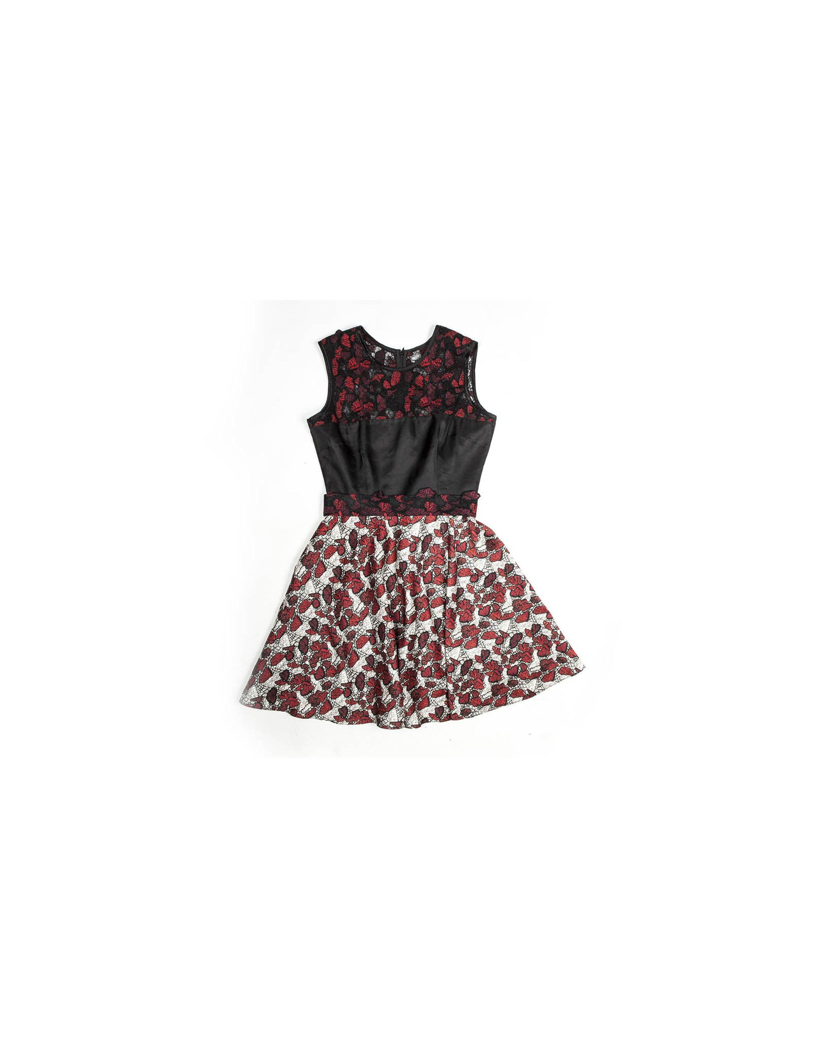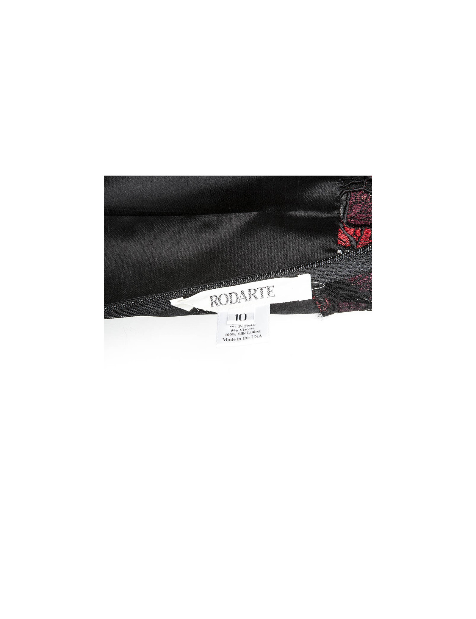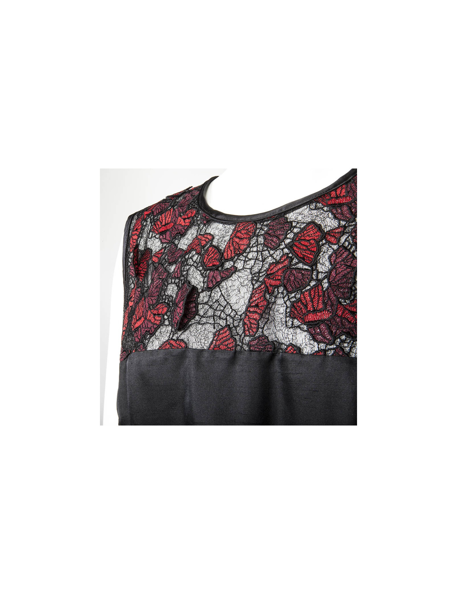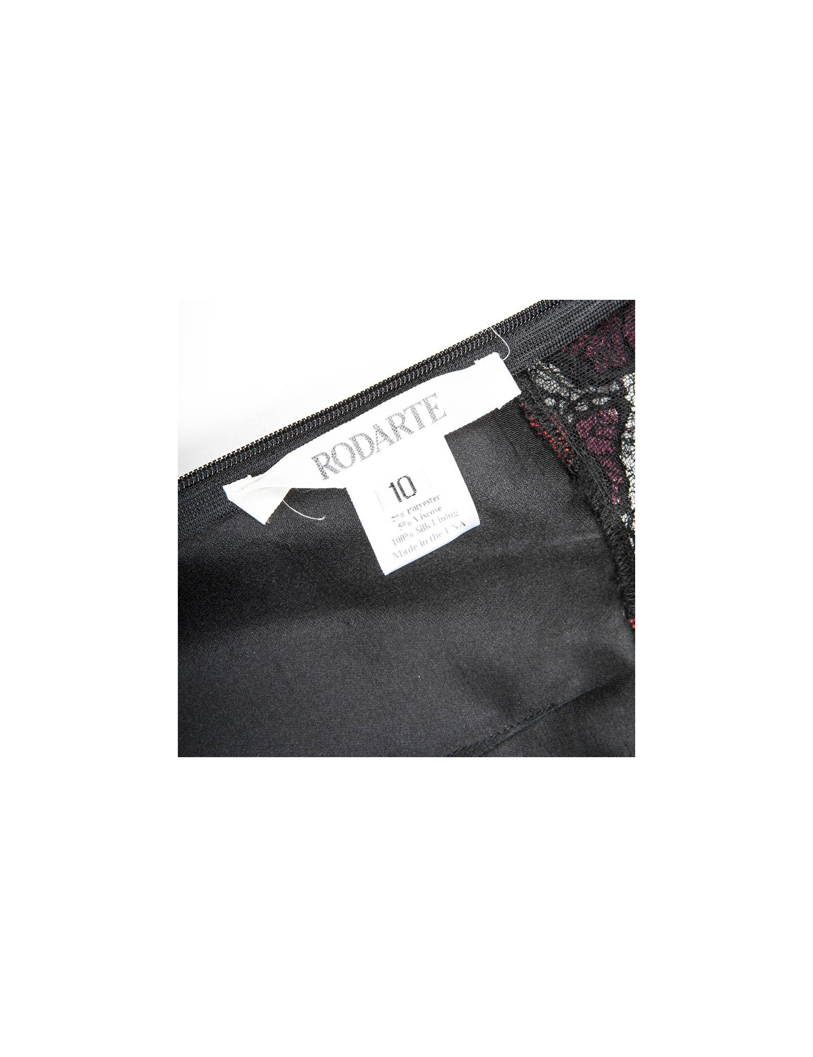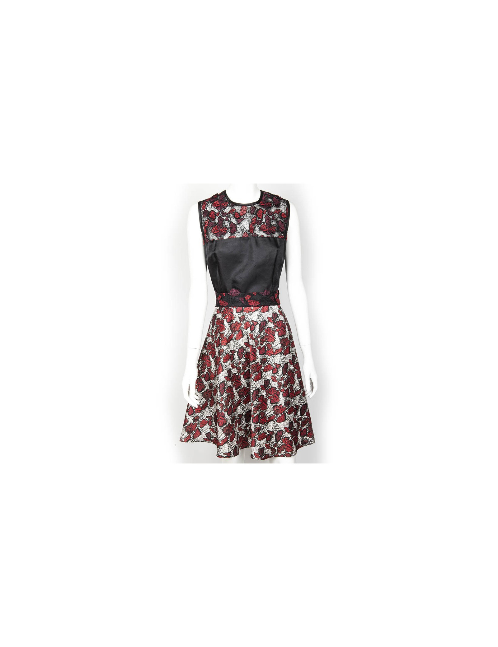 Robe Rodarte. Décolleté en dentelle rouge et noir et le reste de la robe en satin. Ceinture afin de marquer la taille. Fermeture zippée. Taille 10 équivaut à un 40. En très bon état.