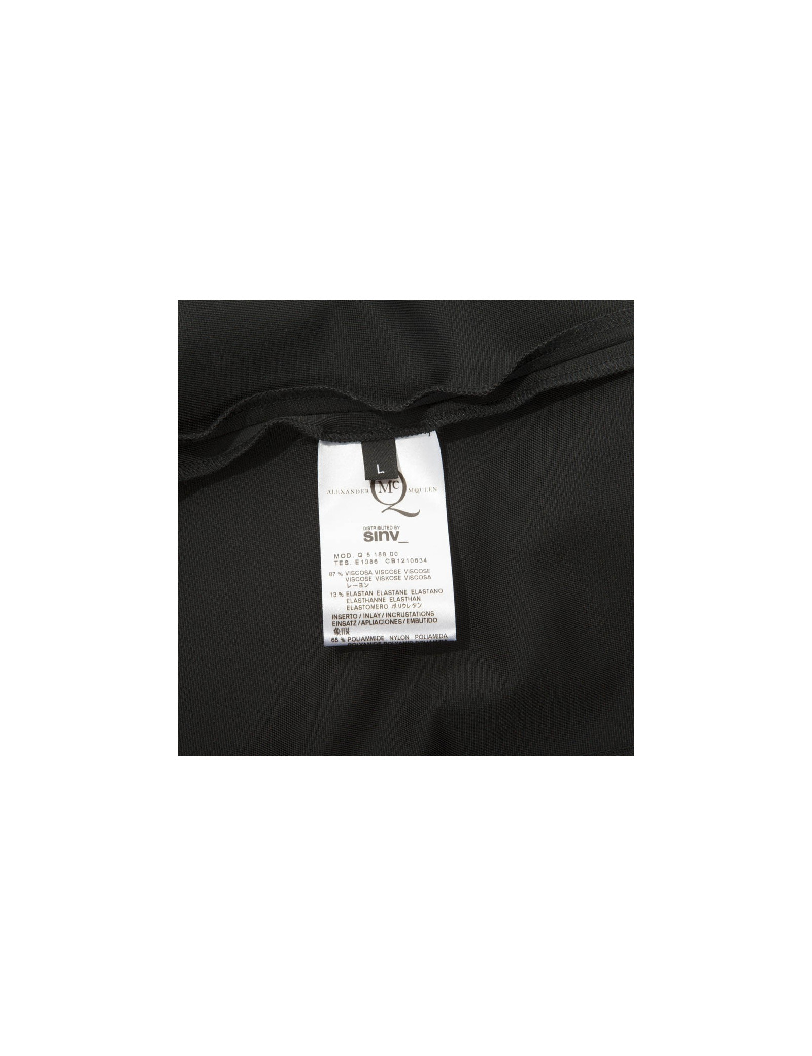 Robe en viscose noire à bretelles Alexander Mc Queen taille L correspond à une taille 38/40 fr. Décolleté lacé, surpiqûres apparentes, robe tube cintrée à la taille avec fermeture zippée sur le côté gauche.