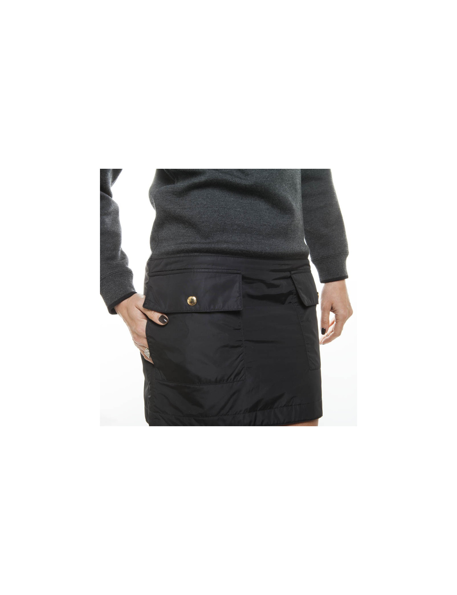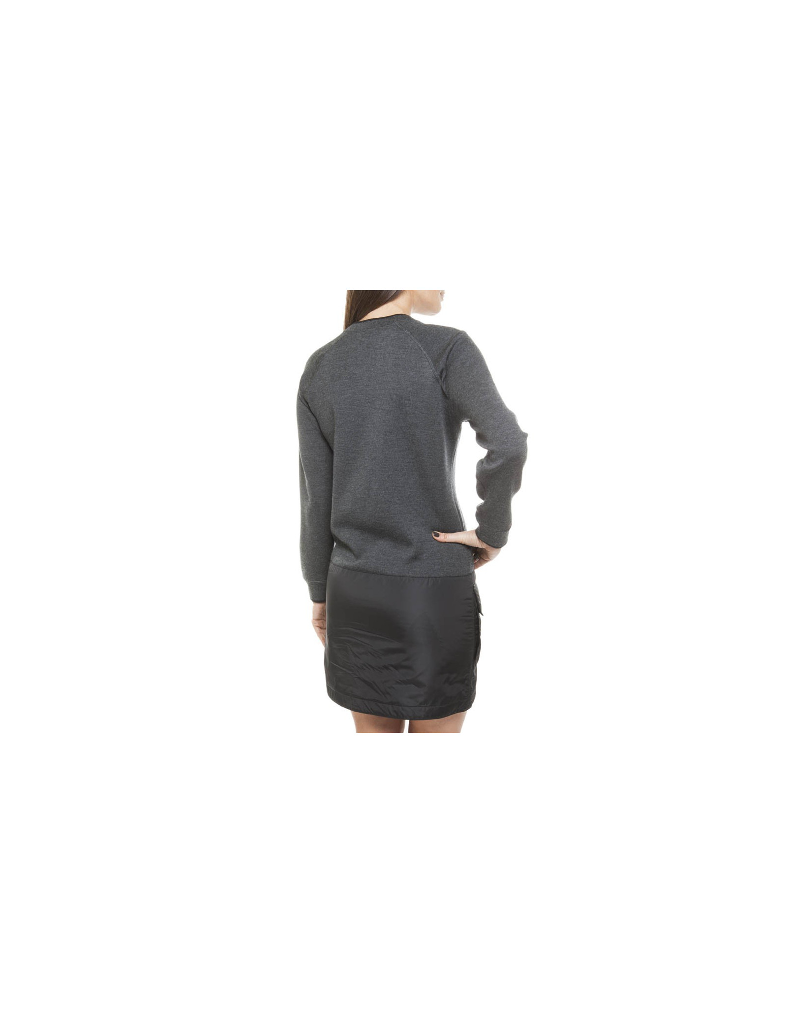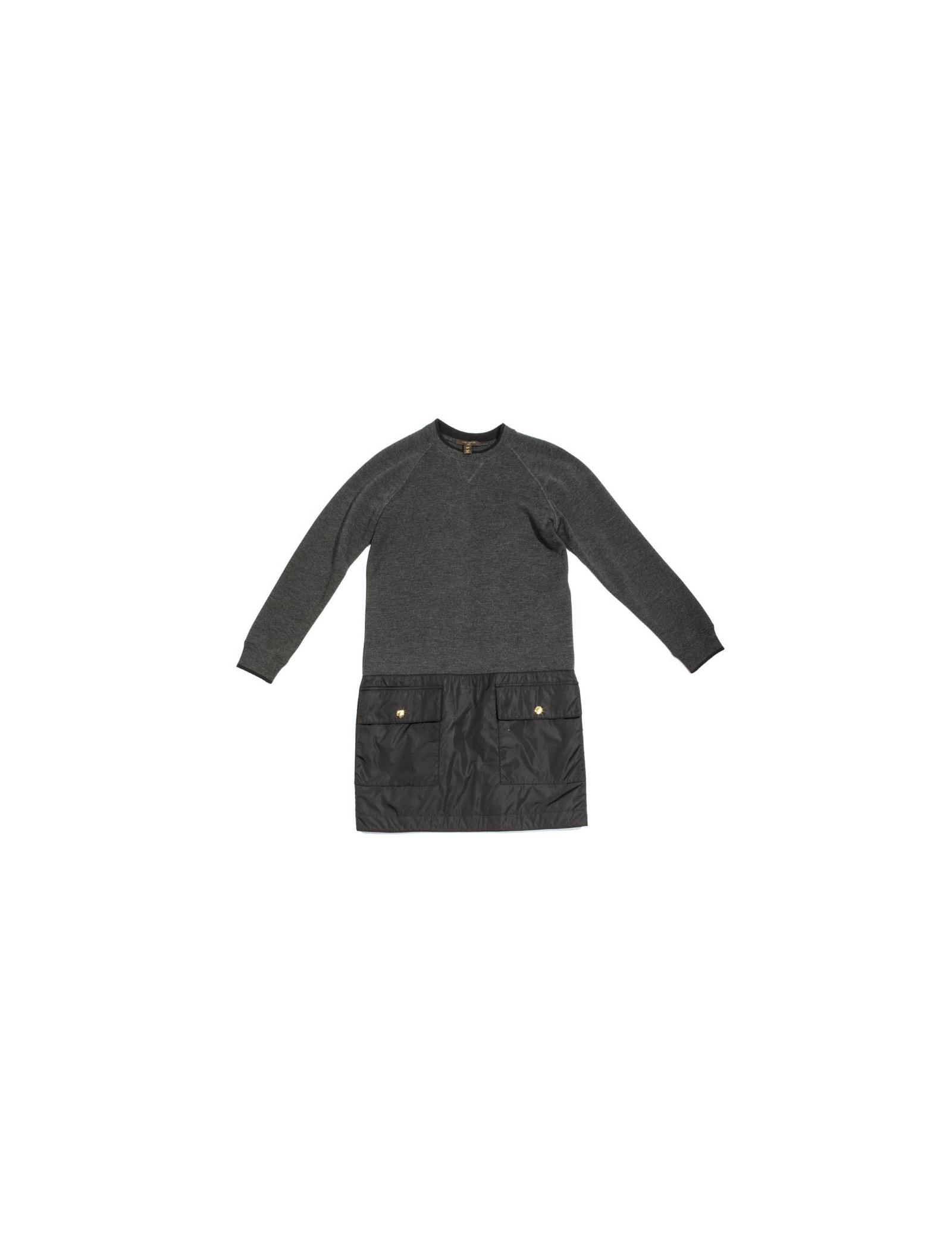 Robe jumper gris chiné en Laine et soie (voir étiquette) Louis Vuitton taille 34/36 FR, Coupe droite, partie inférieure en polyamide imperméable, composée de deux poches à pression dorées siglées "Louis Vuitton".