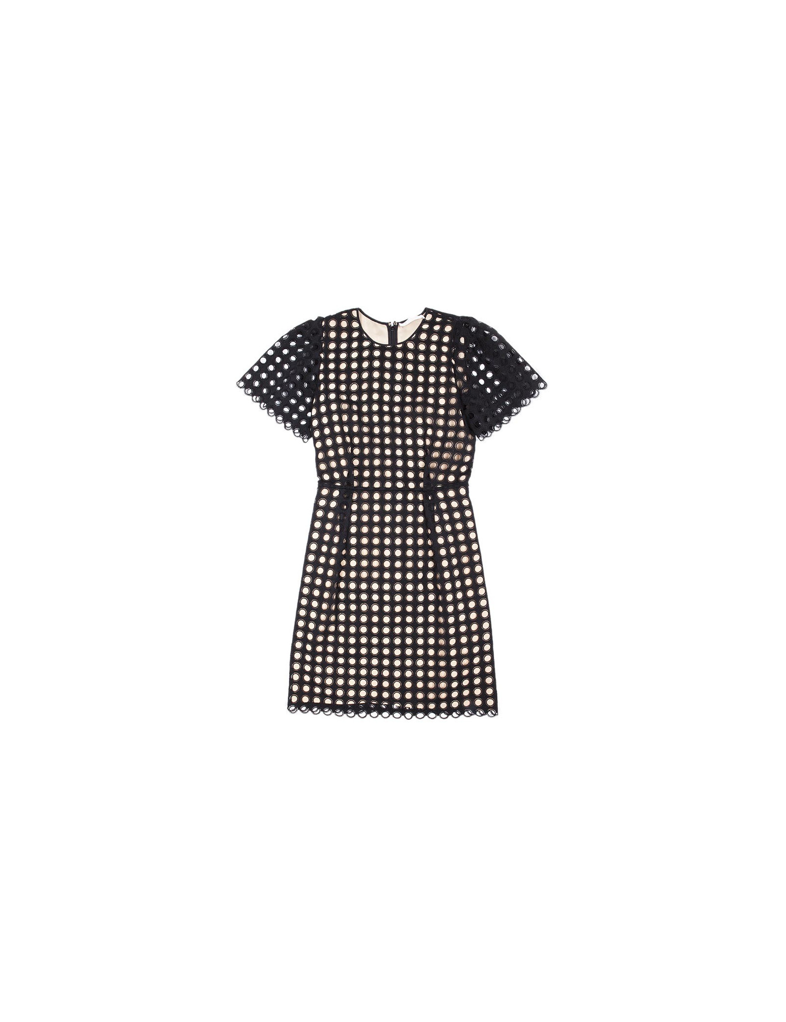 Robe fourreau à manches courte en coton noire et beige Chloé taille 34. Doublée de soie beige, la robe est discrètement zippée au dos. La partie supérieure est en coton et polyester. Très bon état