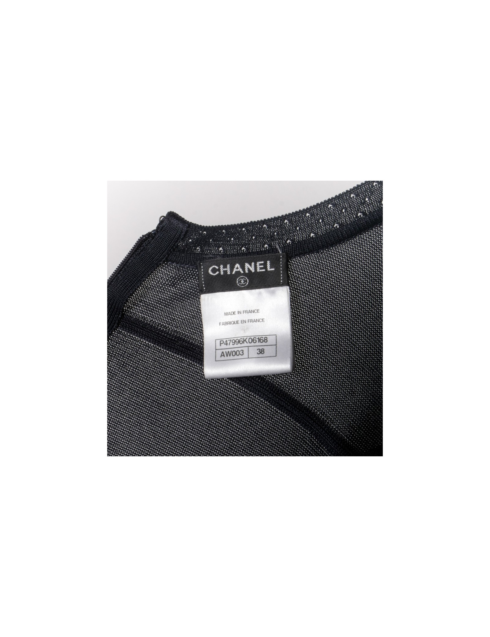 Robe Chanel en maille bleue marine se porte avec son fond de robe de la même couleur.