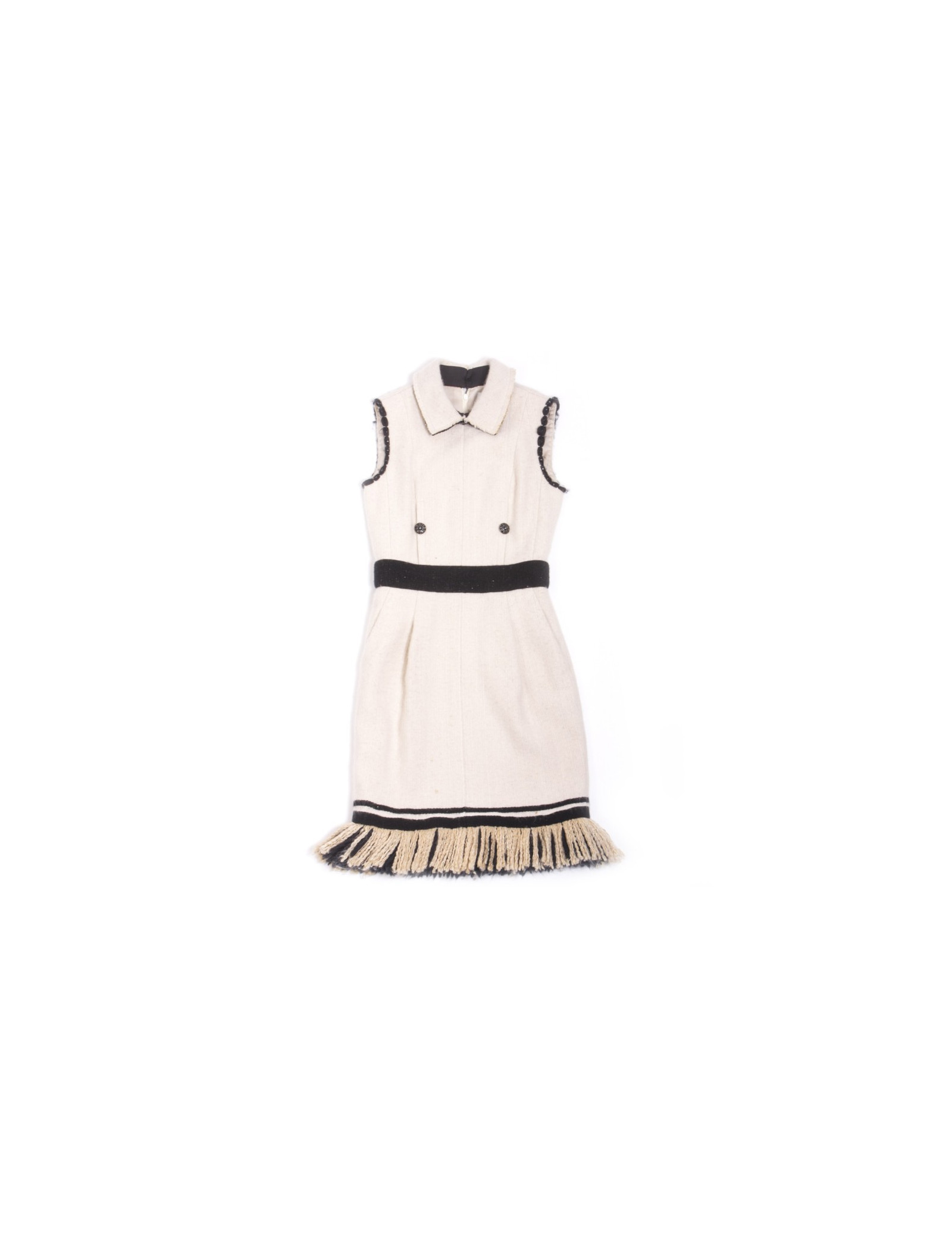 Superbe robe d'hiver Chanel en cachemire et soie blanc cassé sans manches.