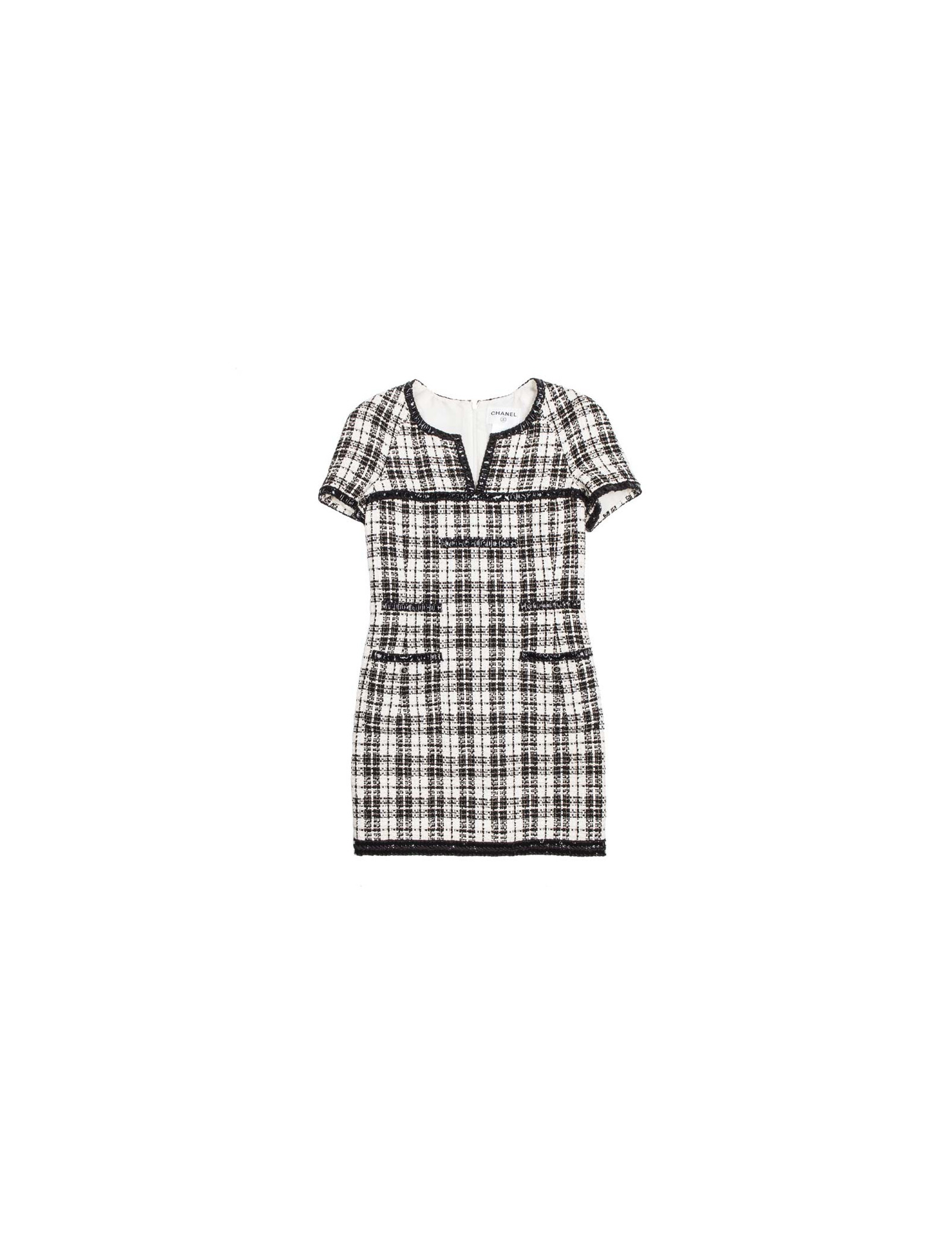 Robe Chanel en tweed noir et blanc T 38 en très bon état . Collection Printemps/été 2007