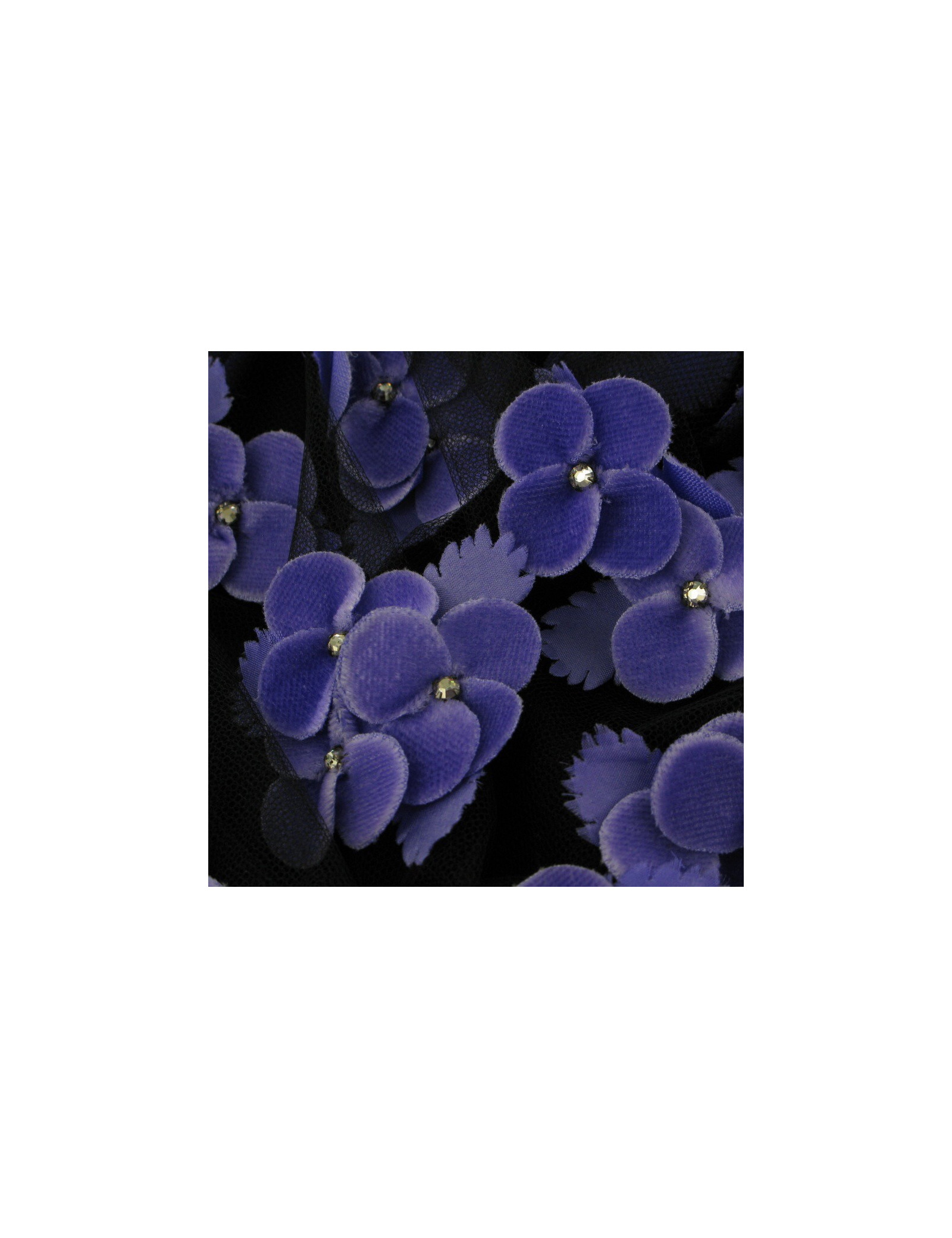 Sublime robe bustier en tulle noir ornées de fleurs strassées en velours parme CHRISTIAN DIOR