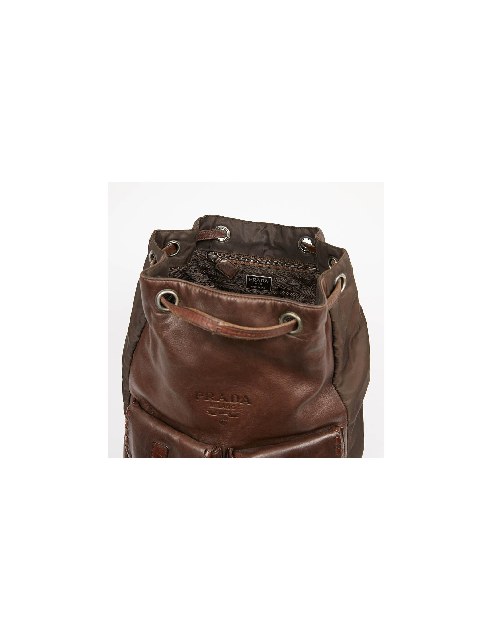 Sac à dos PRADA marron, en détail