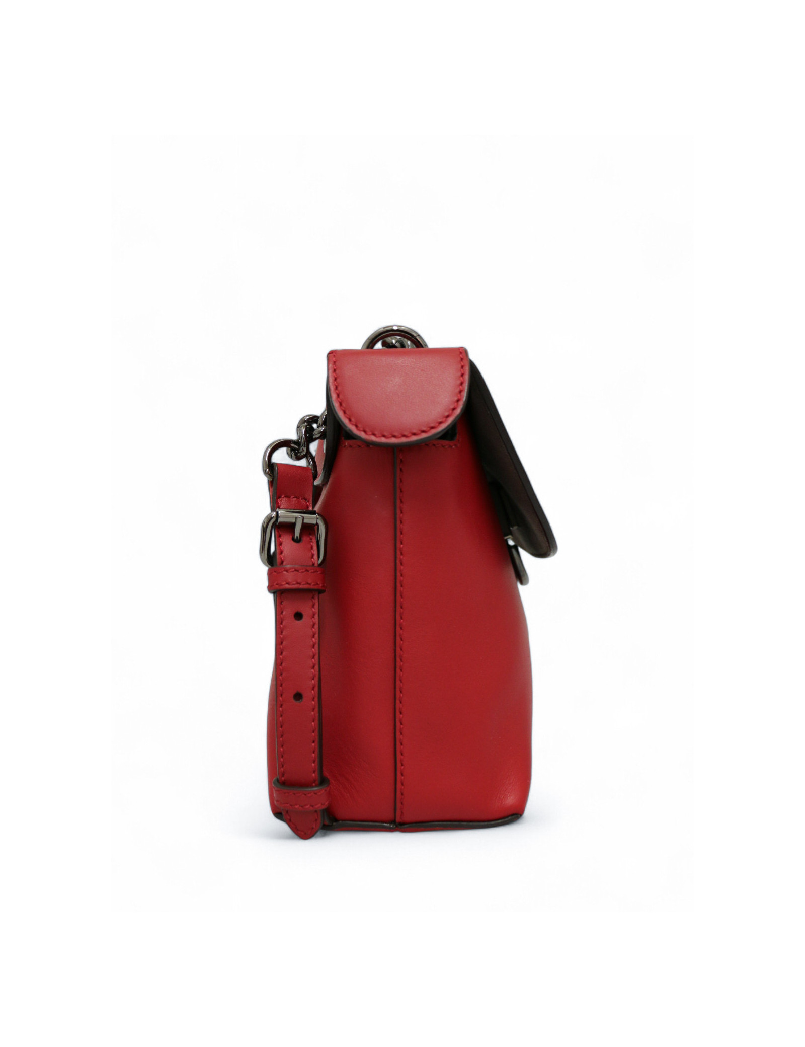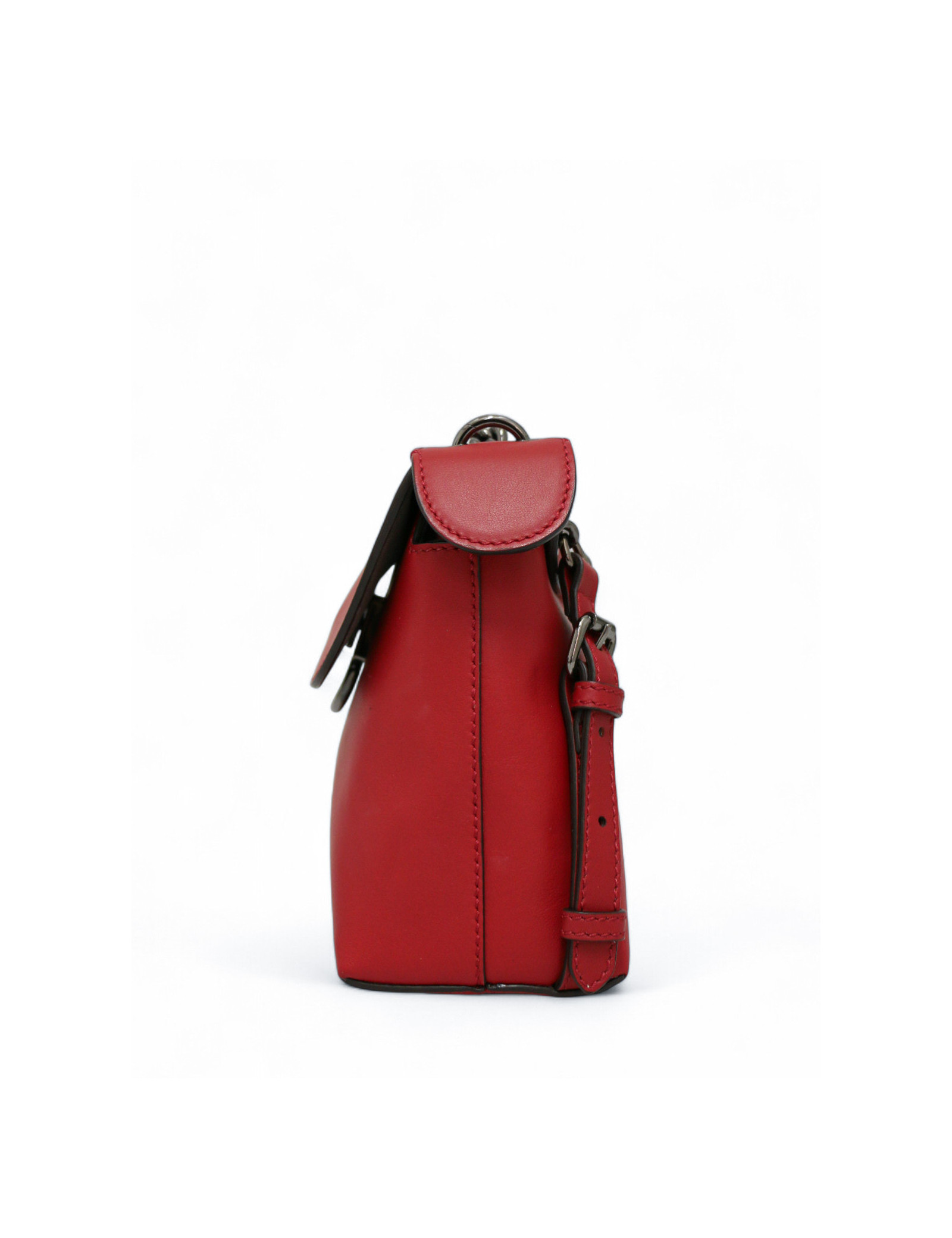 Détails : petit sac compact en cuir rouge doté d’un unique compartiment de rangement dissimulé sous un rabat. Il s’ouvre à l’aide d’un fermoir poussoir inversé et dispose d’une poche plaquée à l’intérieur. Ce sac allie praticité et élégance : son format permet d’emporter facilement tous vos essentiels du quotidien et sa fermeture assure une bonne sécurité. Grâce à ses bretelles ajustables, vous pouvez le porter aussi bien en sac à dos qu’en bandoulière, selon vos envies. Aucune usure n'est visible.