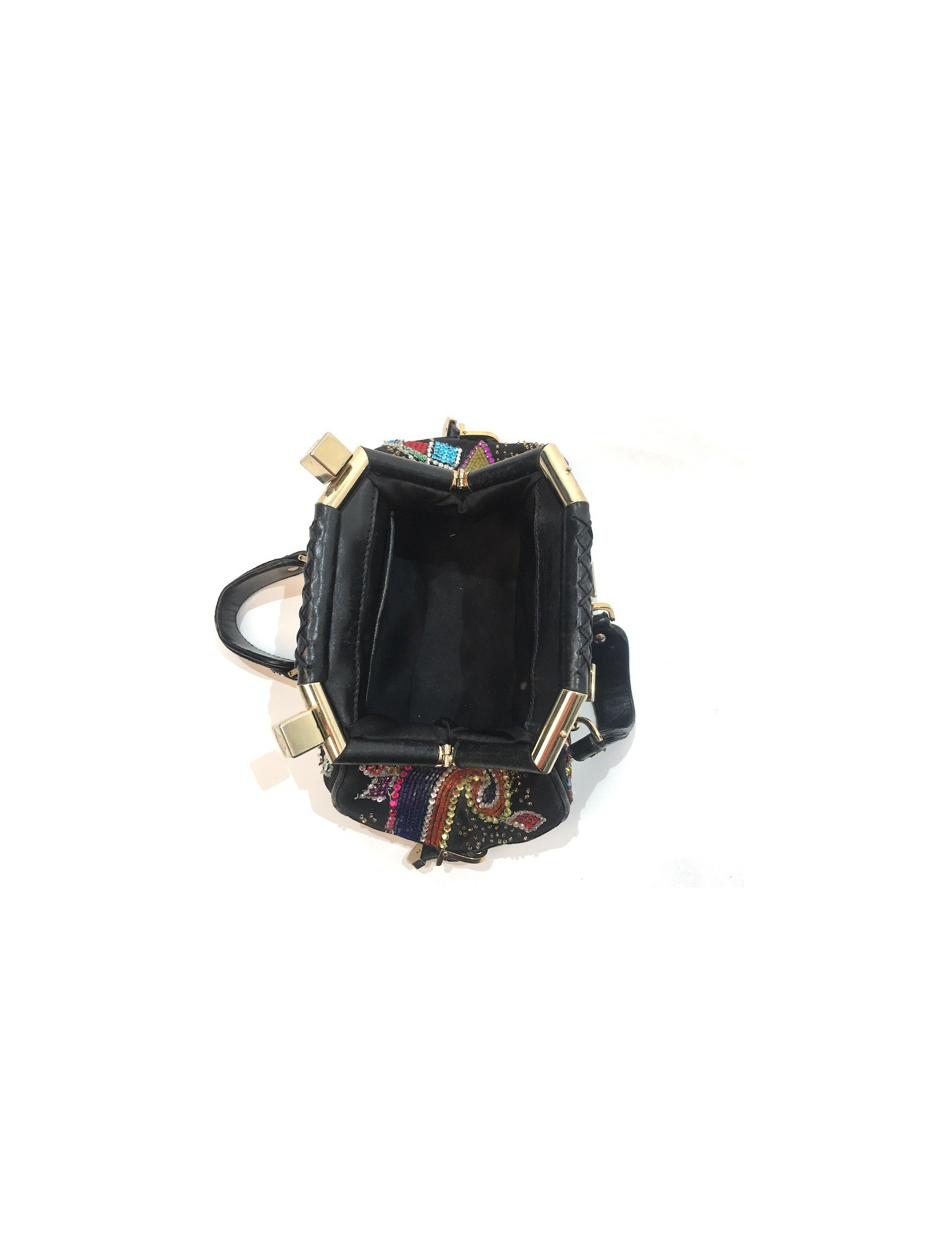 Sac de fabrication italienne avec les mesures suivantes : longueur 22 cm, hauteur 12 cm et profondeur 11 cm. Le sac est bon état, traces d'usure sur les dorures, manque perles et strass sous le sac.