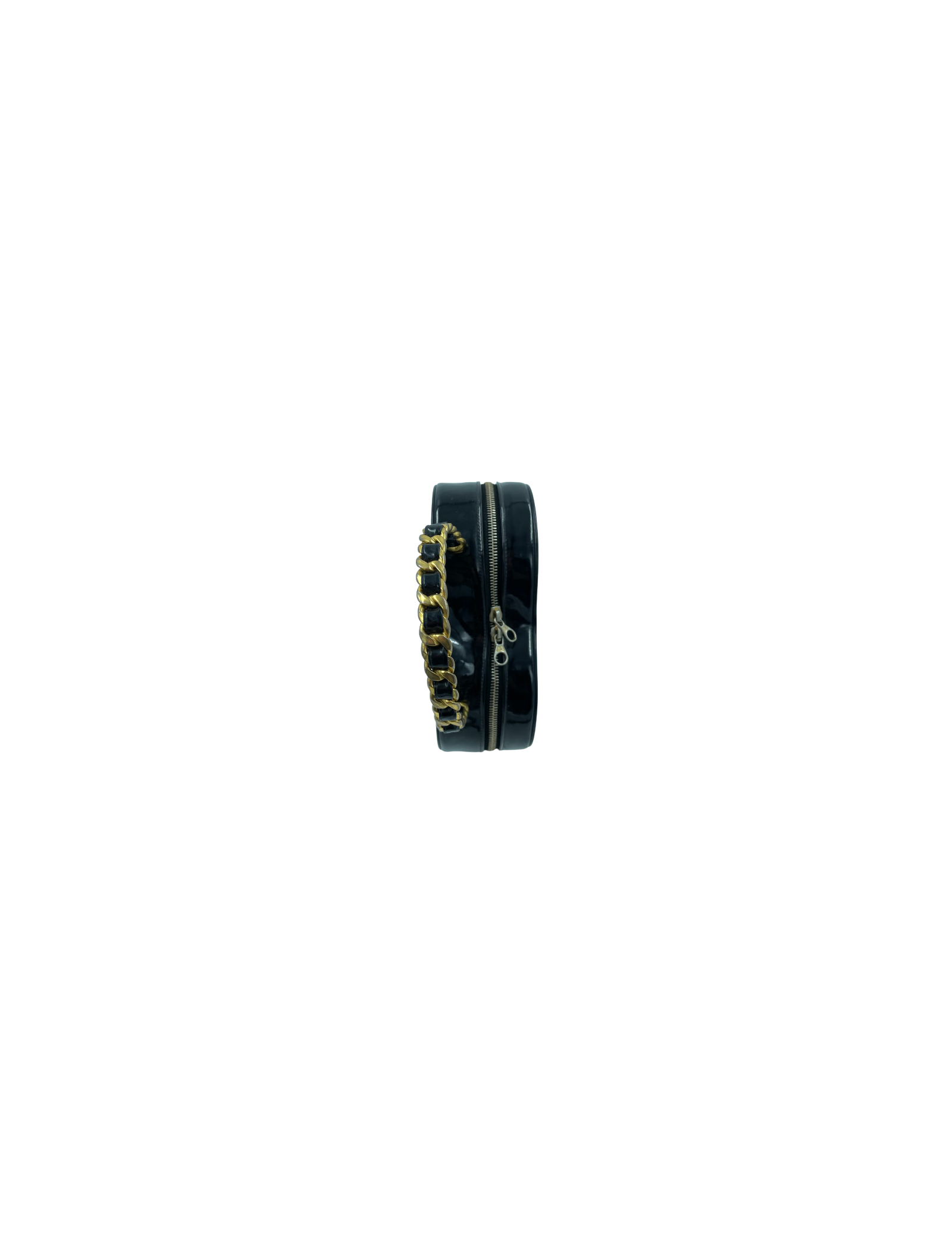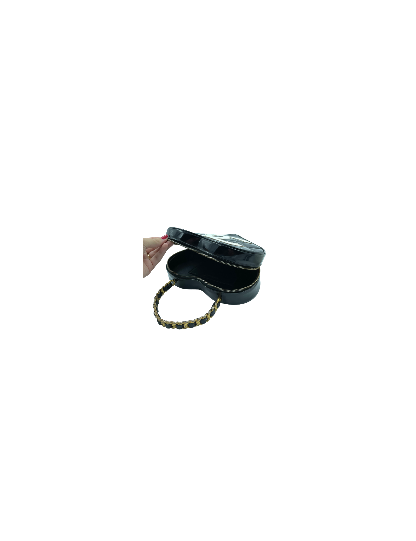 Il est en cuir verni noir et blanc et sa poignée en métal est entrelacé de cuir. Il a de petites traces sur le cuir (voir photos), raison pour laquelle nous le plaçons dans la catégorie bon état. Il a sa carte d'authenticité. Il se porte à la main.