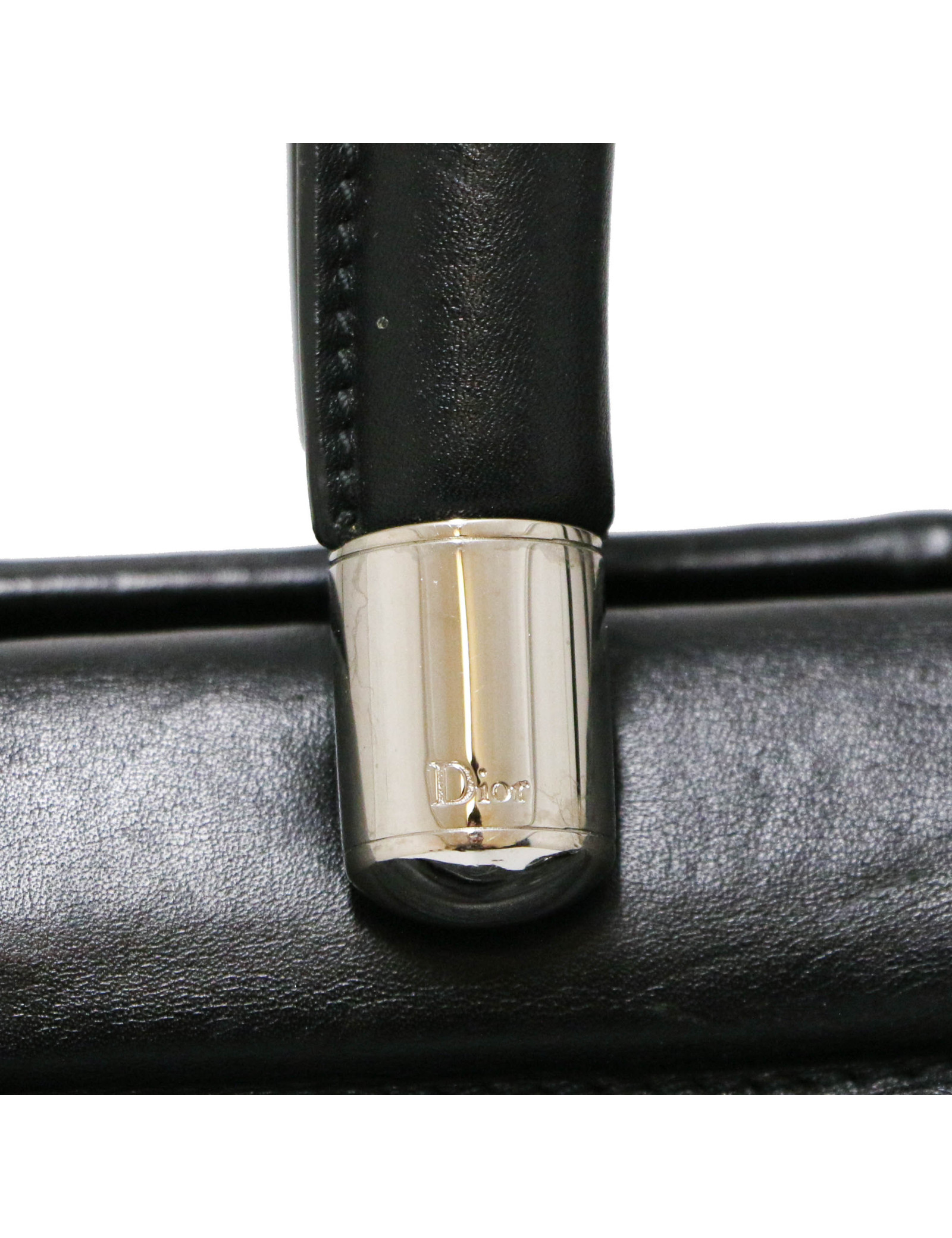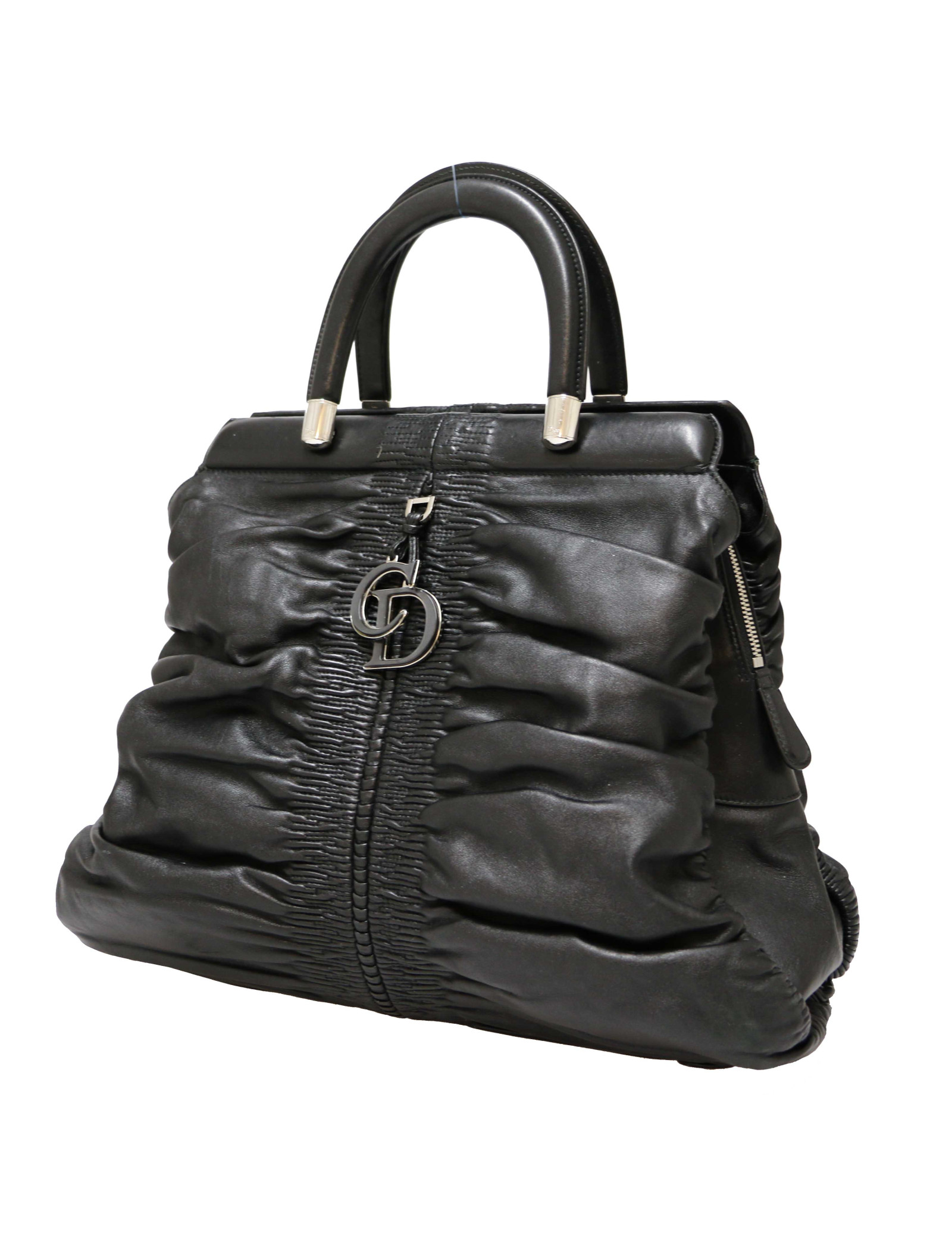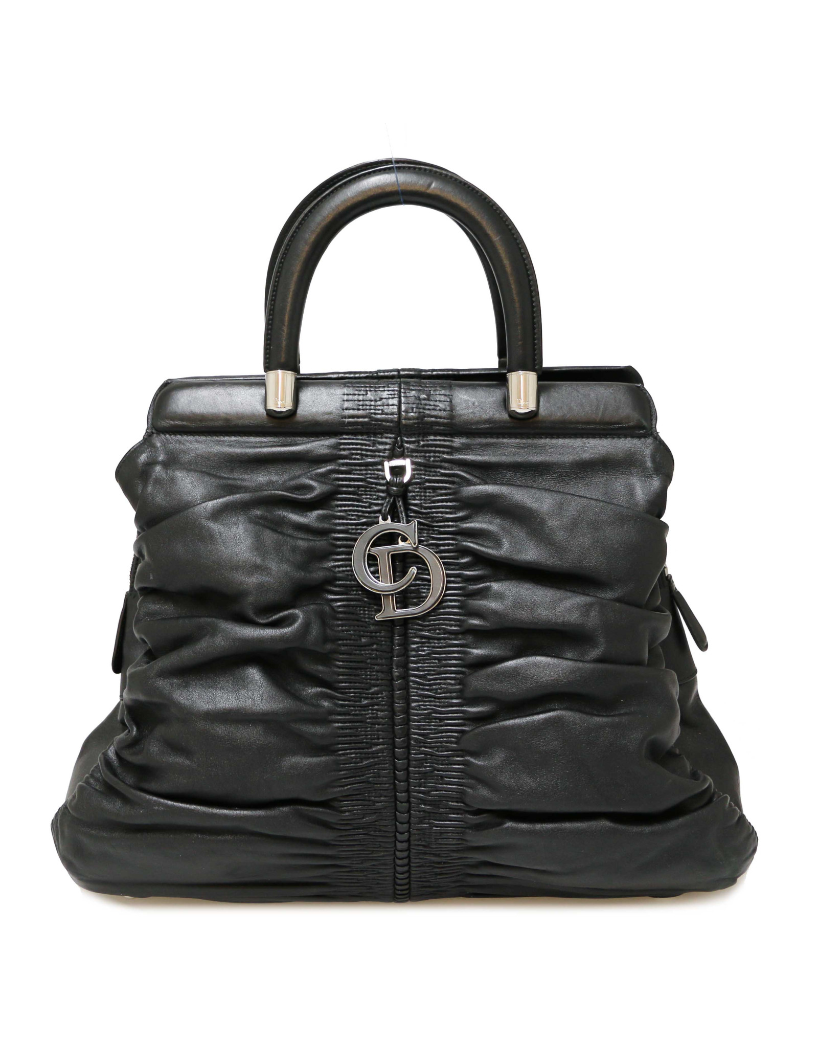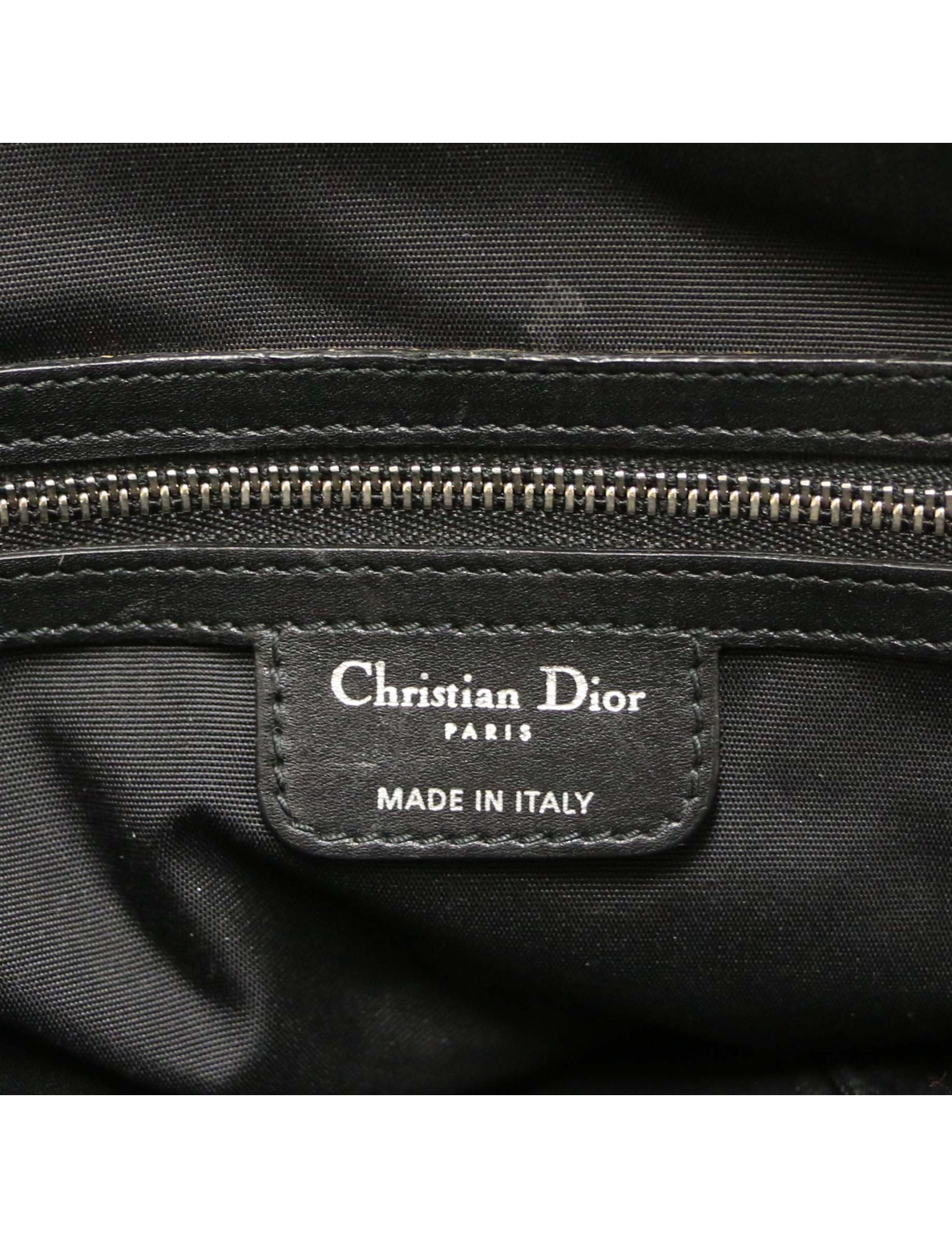 Détails : trois compartiments de rangement dont un avec fermeture à glissière, cuir effet froissé, pendants lettres C.D. sur l'avant du sac, anses rigides
