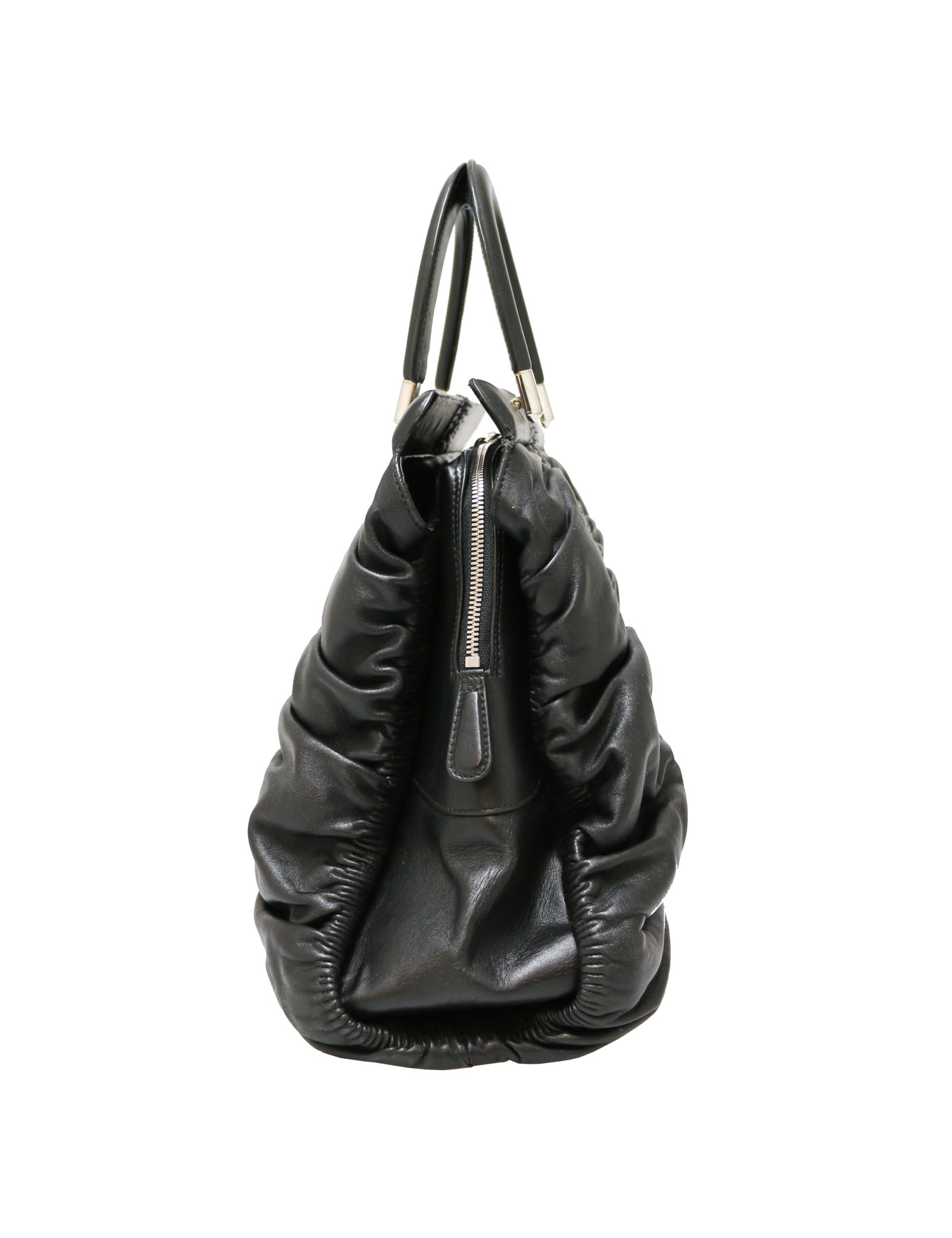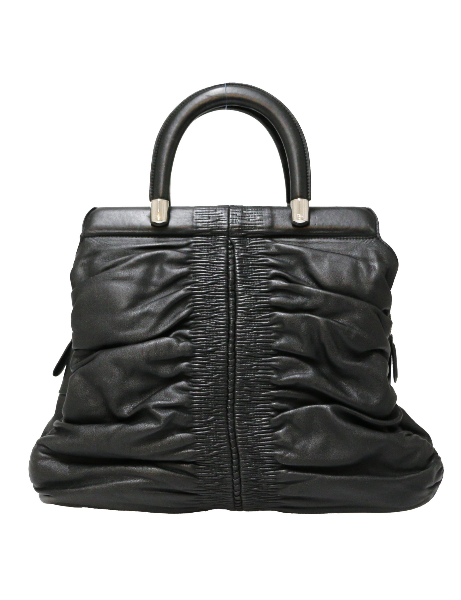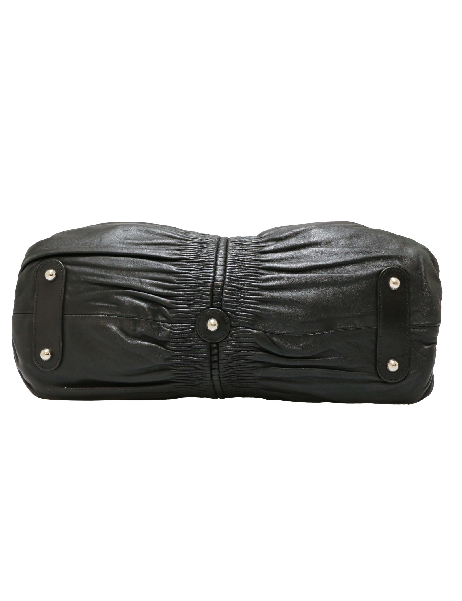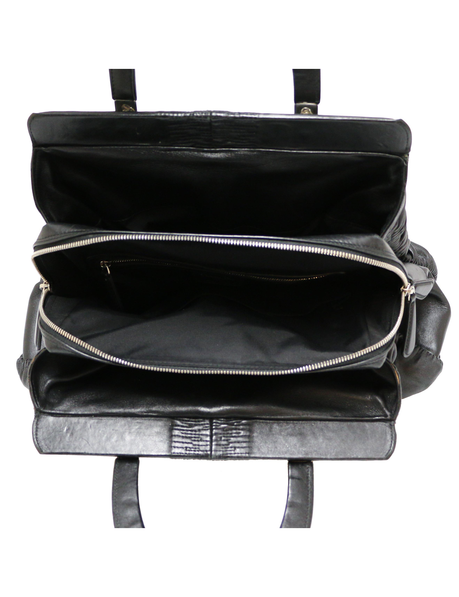 Détails : trois compartiments de rangement dont un avec fermeture à glissière, cuir effet froissé, pendants lettres C.D. sur l'avant du sac, anses rigides