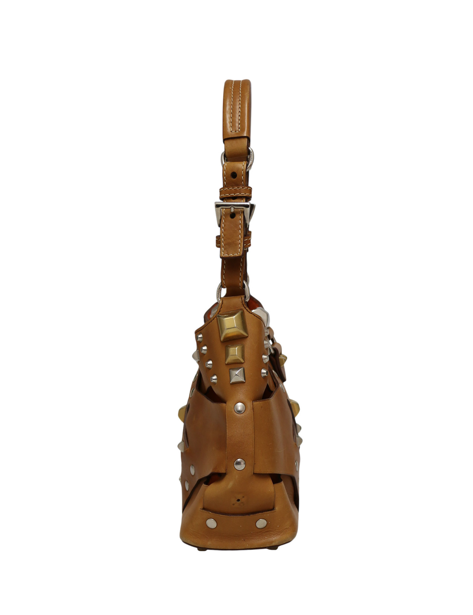 Petit sac Prada Hobo cuir marron clous