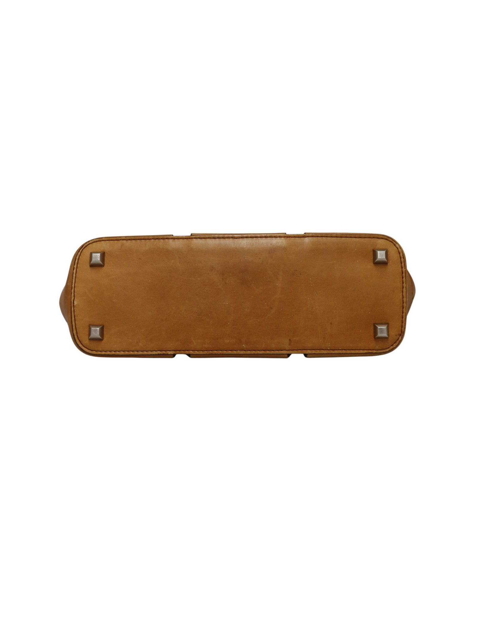 En très bon état général, le cuir est légèrement patiné. Il manque un clou de chaque côté du sac.