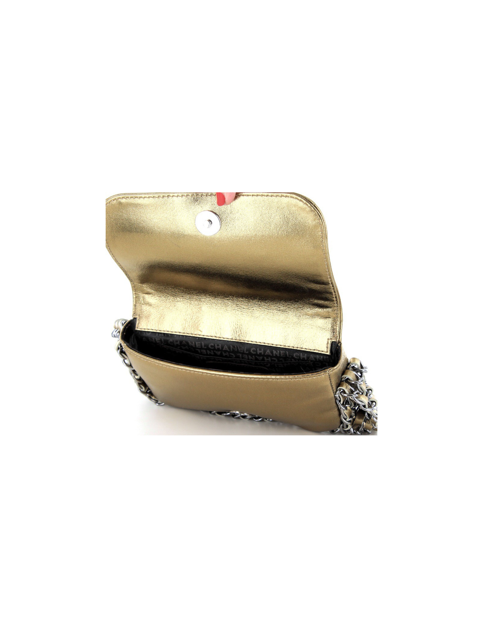 Pour le Soir, sac bijou CHANEL en cuir doré très élégant - détails :