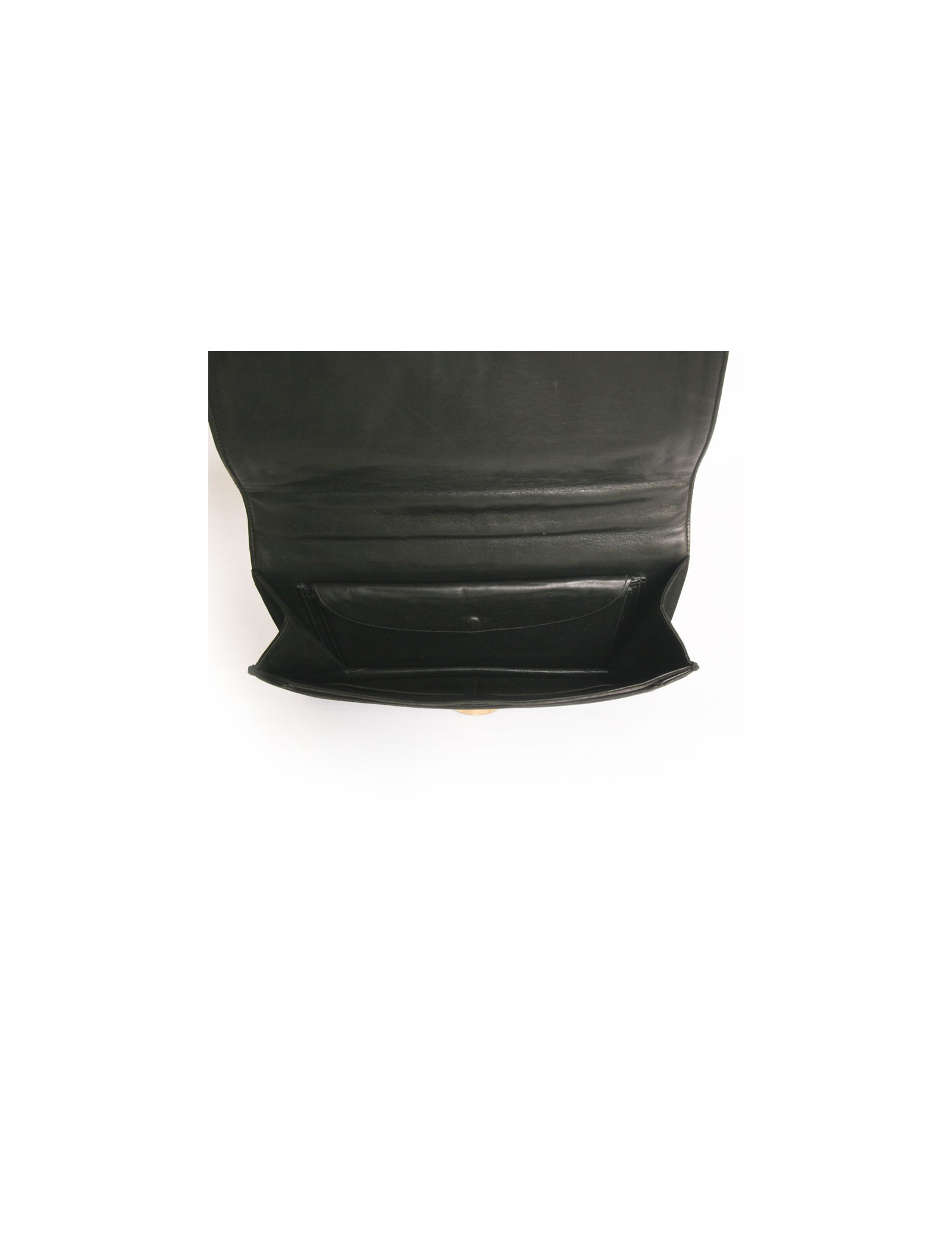 Le fermoir représente un fer à cheval en laiton doré. L'intérieur est en cuir noir avec 4 poches dont une fermée par une pression. Etat vintage. Pièce rare.