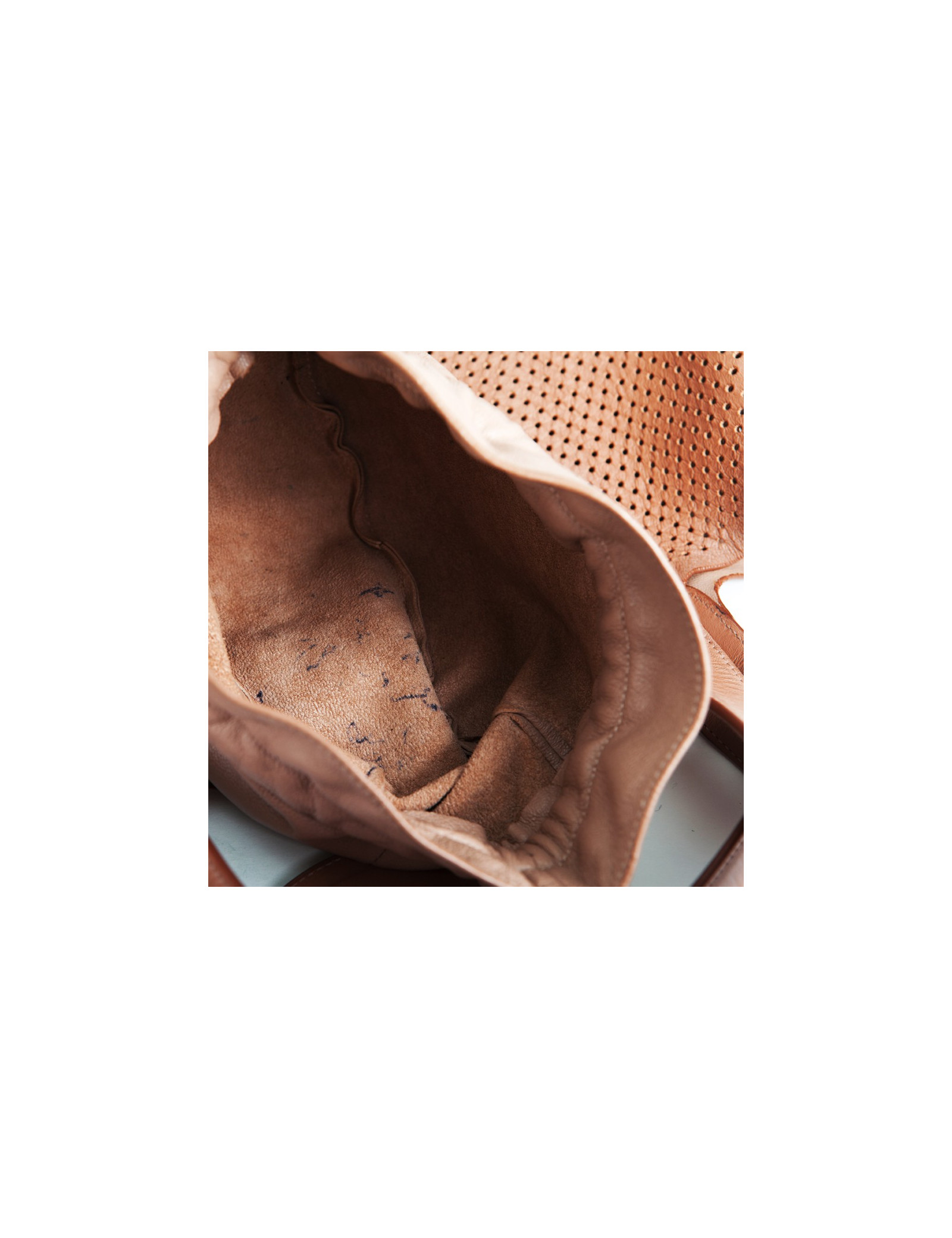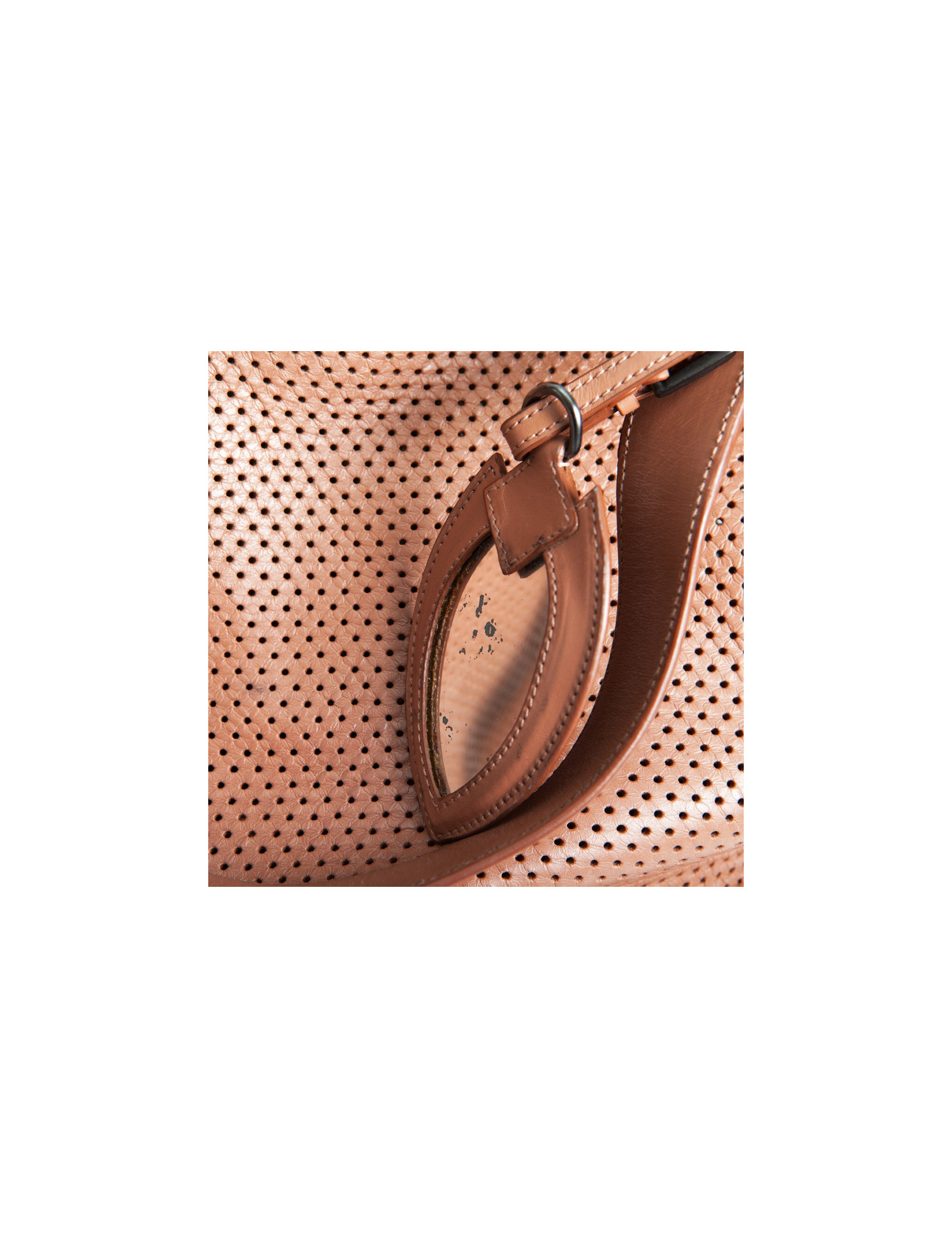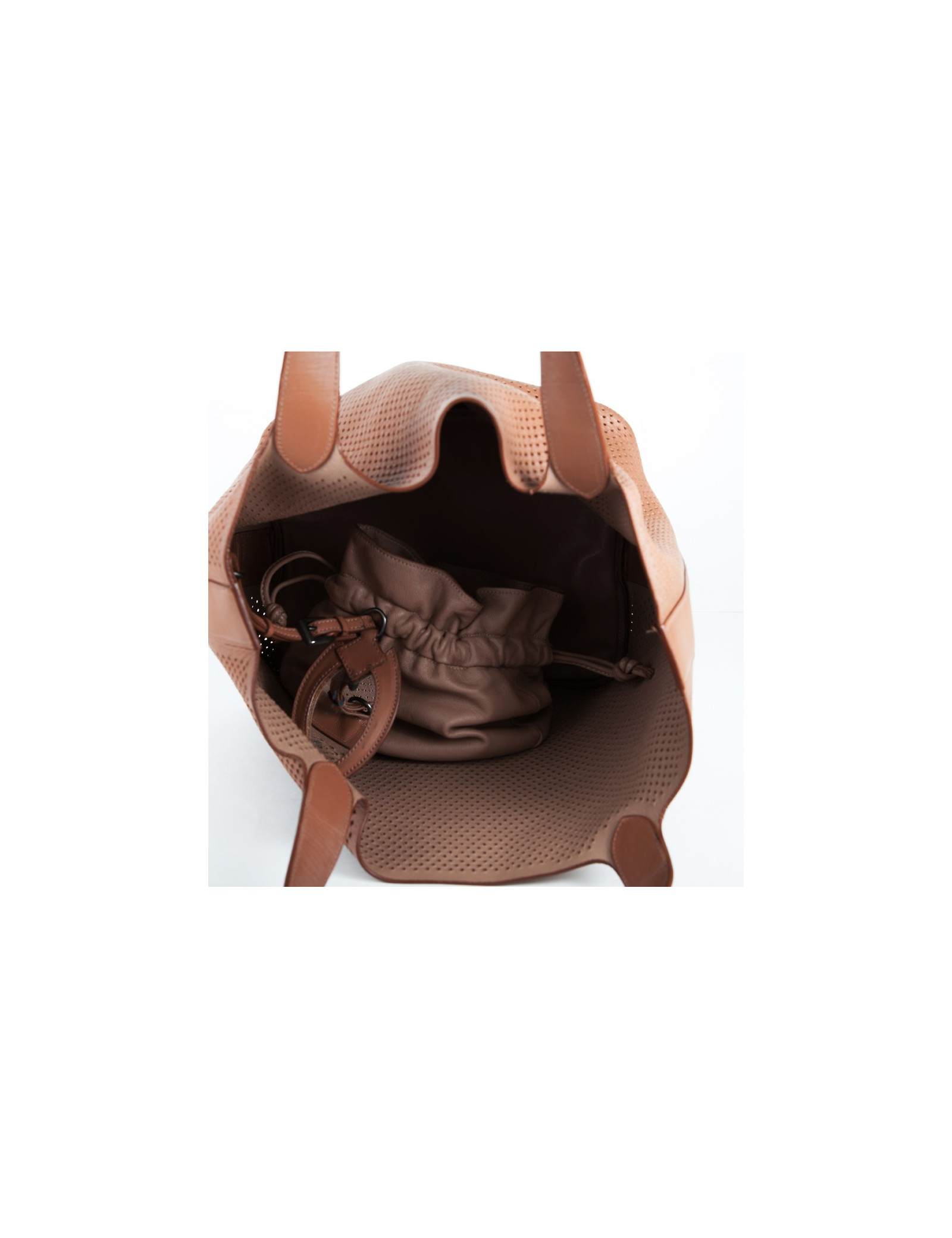 Très belle pièce. Sac Alaia, perforé, en cuir lisse gold. Il a une pochette en cuir souple qui se ferme comme une bourse .
