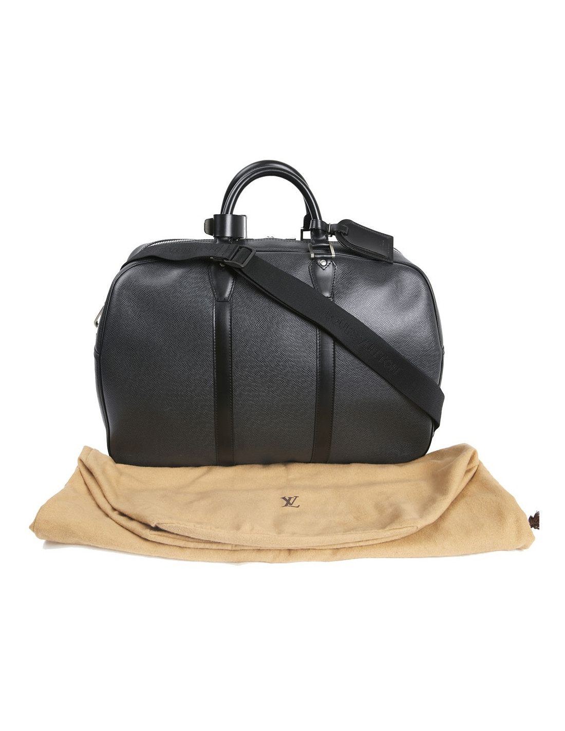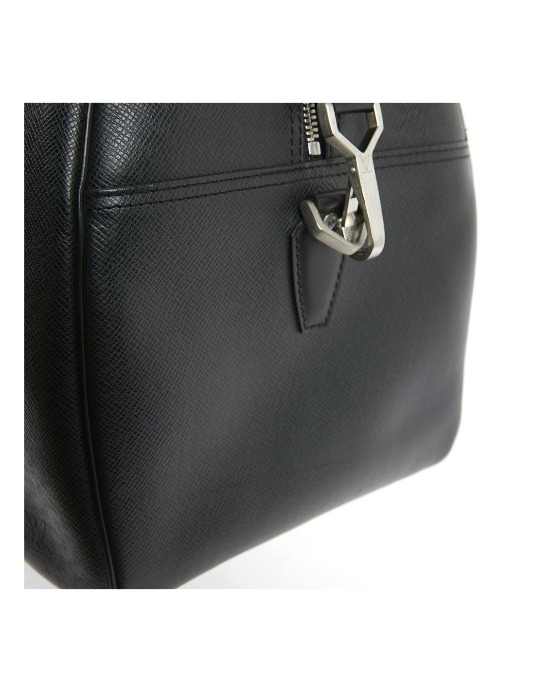 Ce grand sac de week end de la Maison Louis Vuitton appartient à la collection Kendall. Il est en cuir Taïga noir. Il est doublé de suede grise. La bijouterie est métal argent vieilli brossé, fermeture par une fermeture à glissière. Il est en très bon état. Il peut être porté main ou épaule avec sa bandoulière amovible.