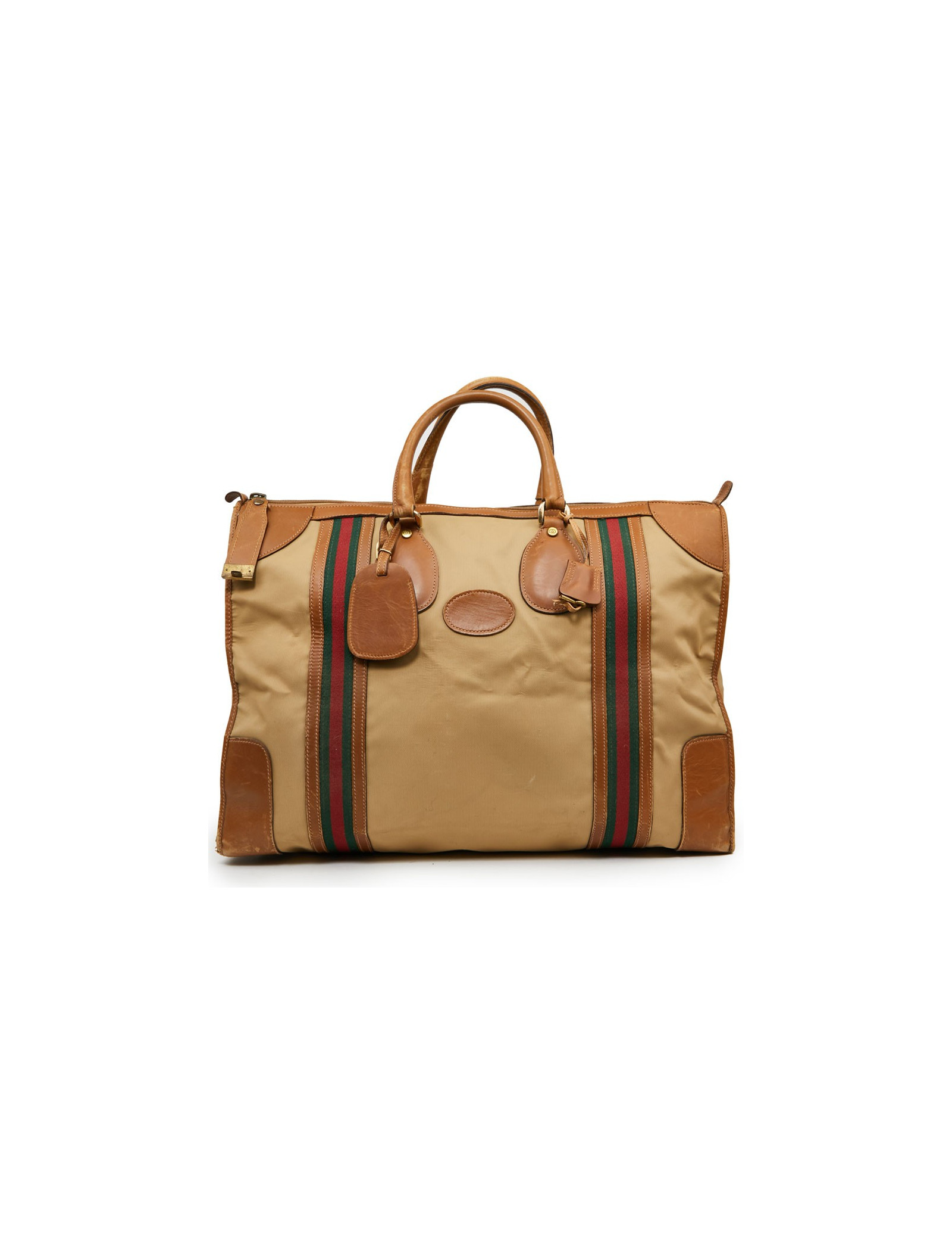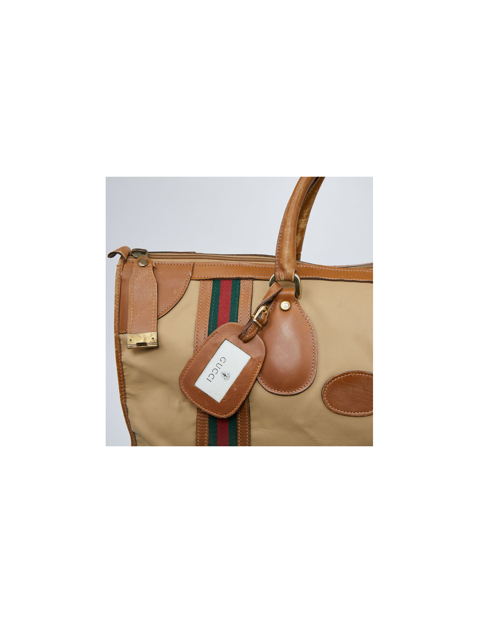 VINTAGE Sac Weekender GUCCI en toile beige et bande web VINTAGE - détails :