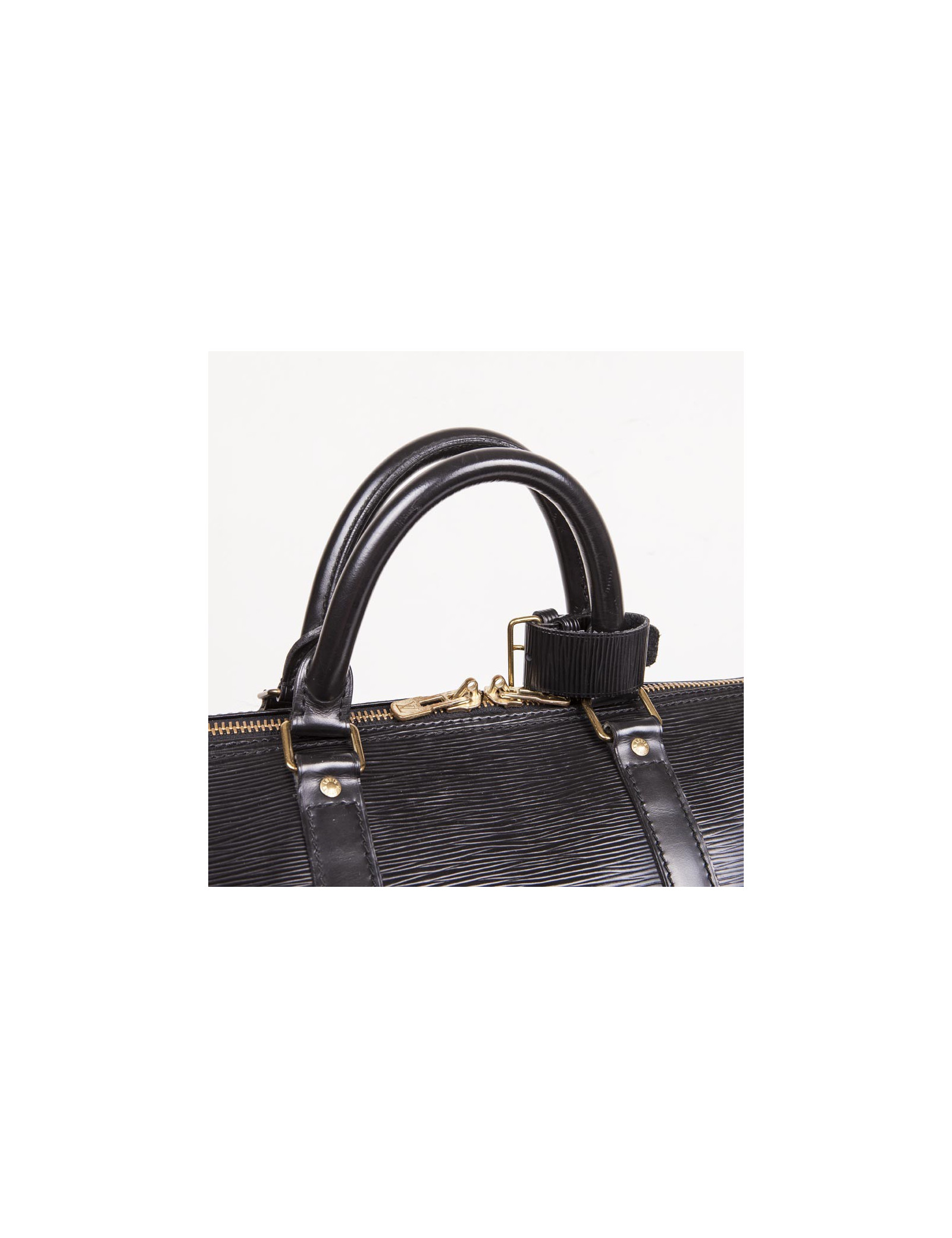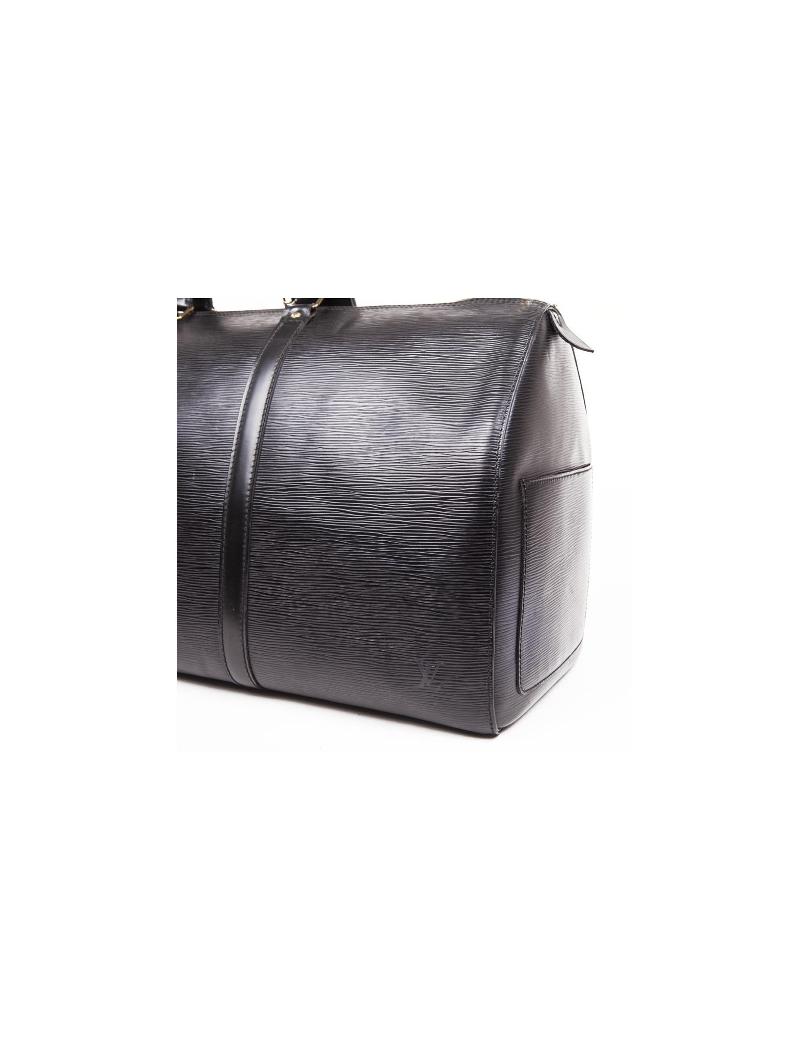 Idéal sac de voyage. Sac Keepall LOUIS VUITTON en cuir épi noir. Il a une bijouterie en laiton doré avec zip double curseur. Il est porté main avec eux anses et a une poche extérieure plate. Il n'est pas doublé. Il a une boucle afin de retenir les anses.Numéro de série V.I. 0990.