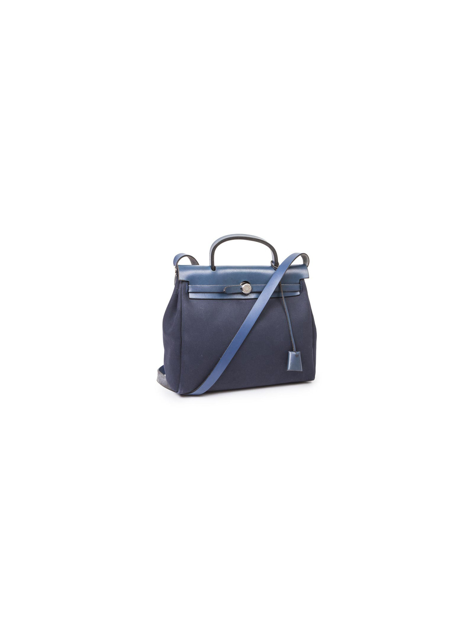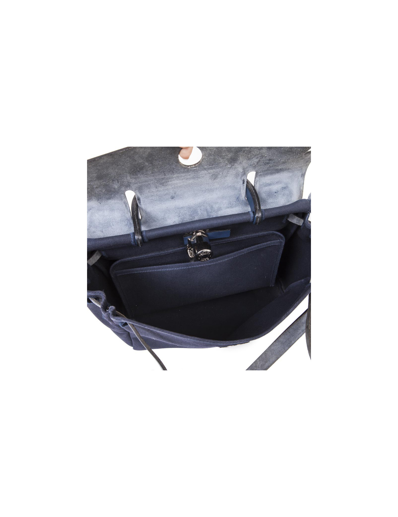 Sac Herbag HERMES en toile et cuir bleu nuit